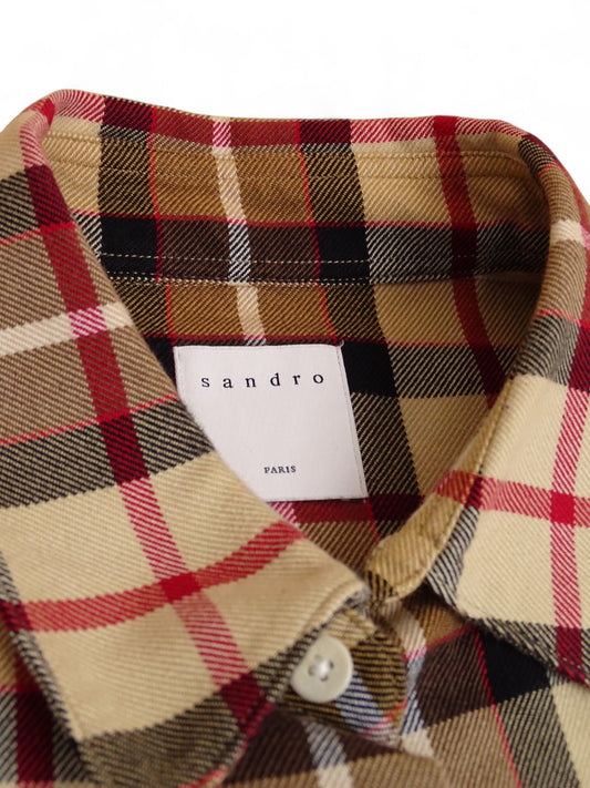 Sandro Chemise Tartan Écossais Beige Épais XS Homme