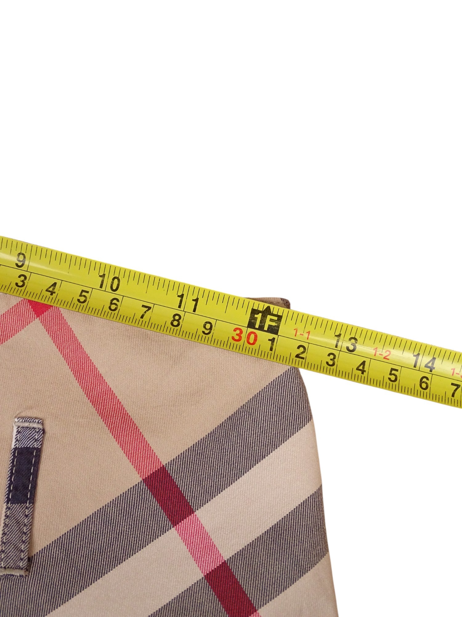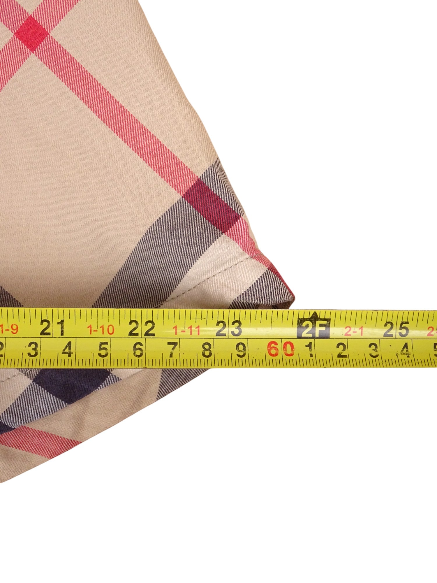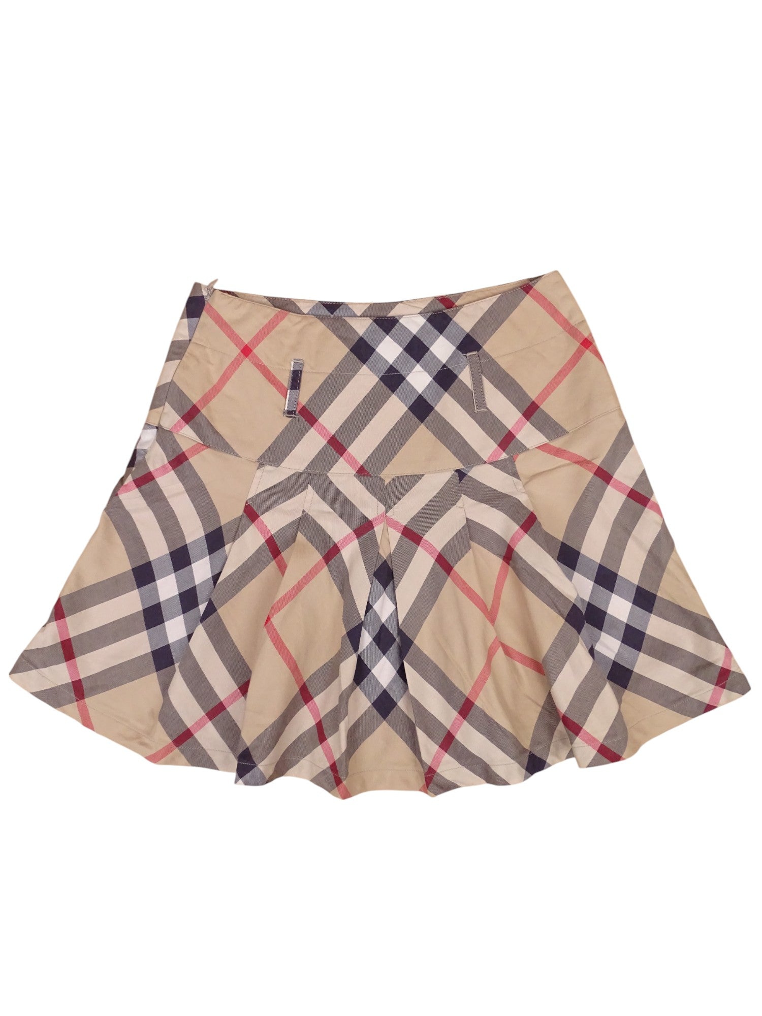Mini jupe emblématique de la marque Burberry avec le motif à carreaux beige caractéristique. La jupe est en taille XS Femme, correspondant à une taille 12 ans fille, parfaite pour une personne avec une très petite morphologie. Elle est en très bon état et ne présente aucun défaut.