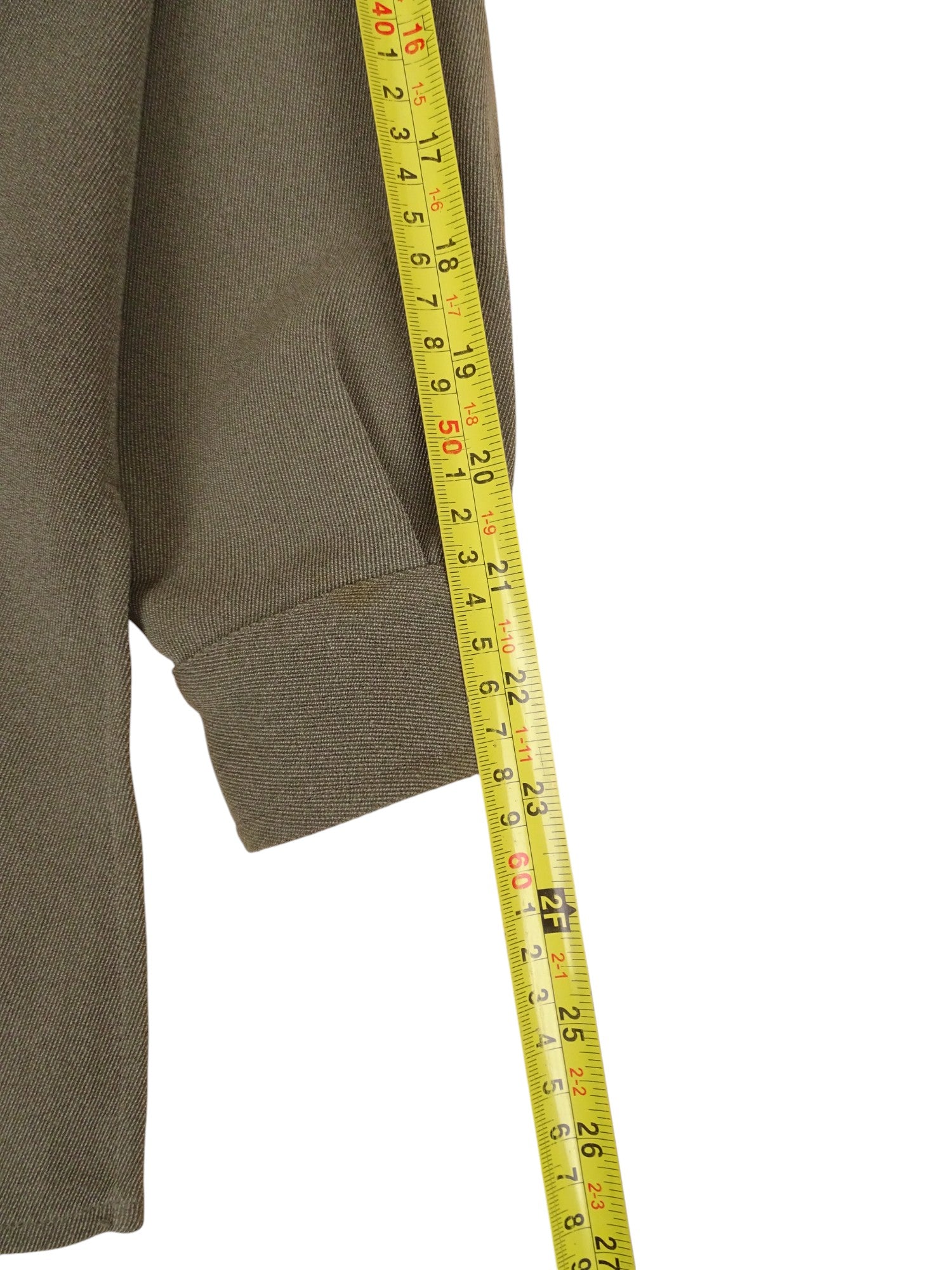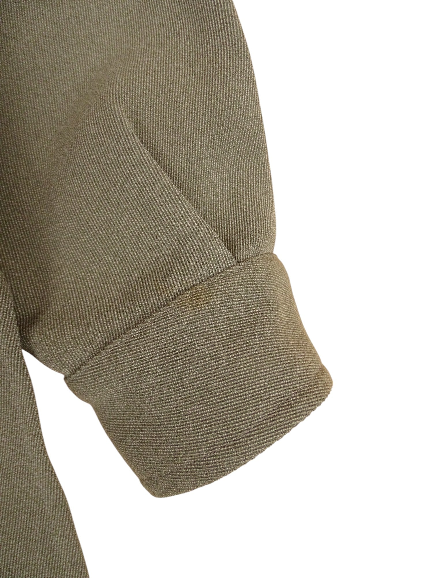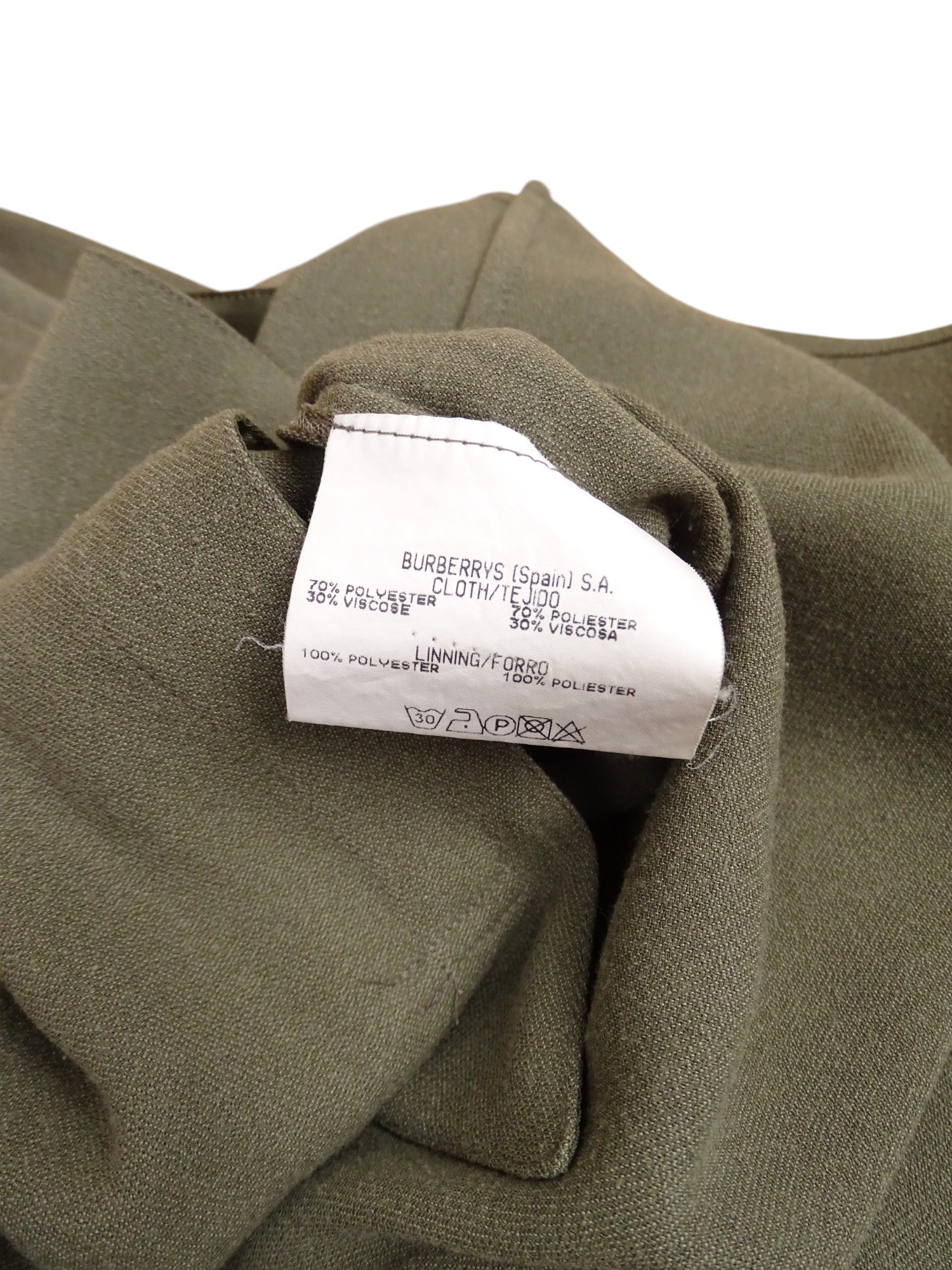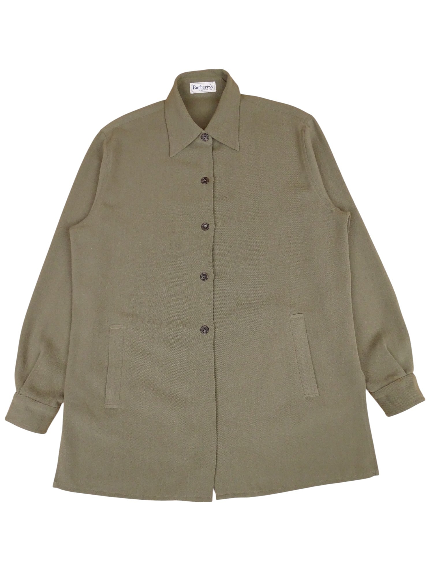 Chemise longue Burberry pour femme, de couleur kaki, en taille L. La chemise est confectionnée dans un tissu assez épais, parfait pour la mi-saison. Elle présente une petite tache discrète sur la manche, mais reste globalement en bon état. Une pièce casual chic au style intemporel.