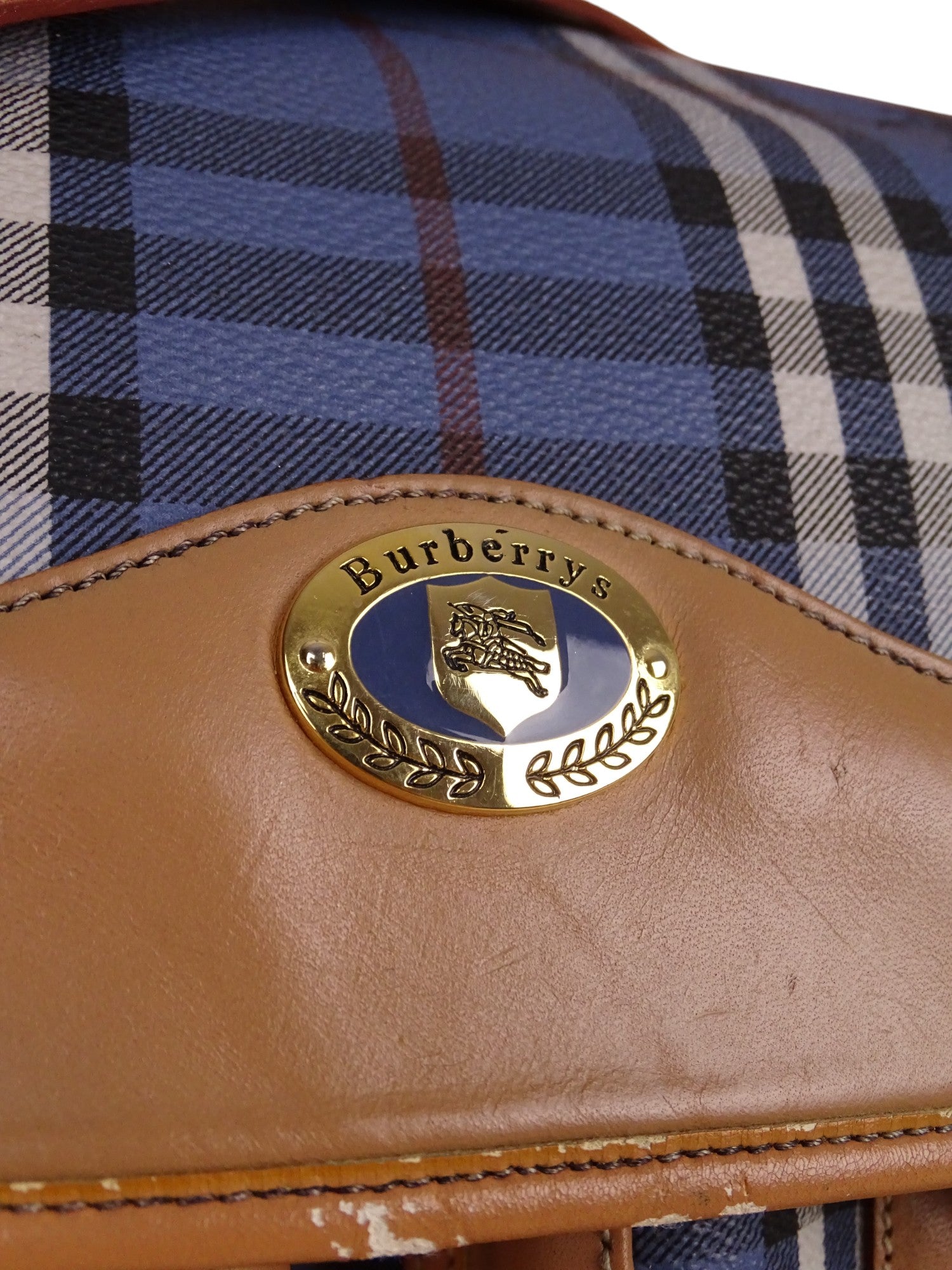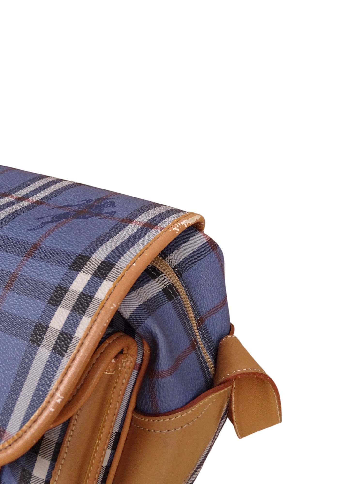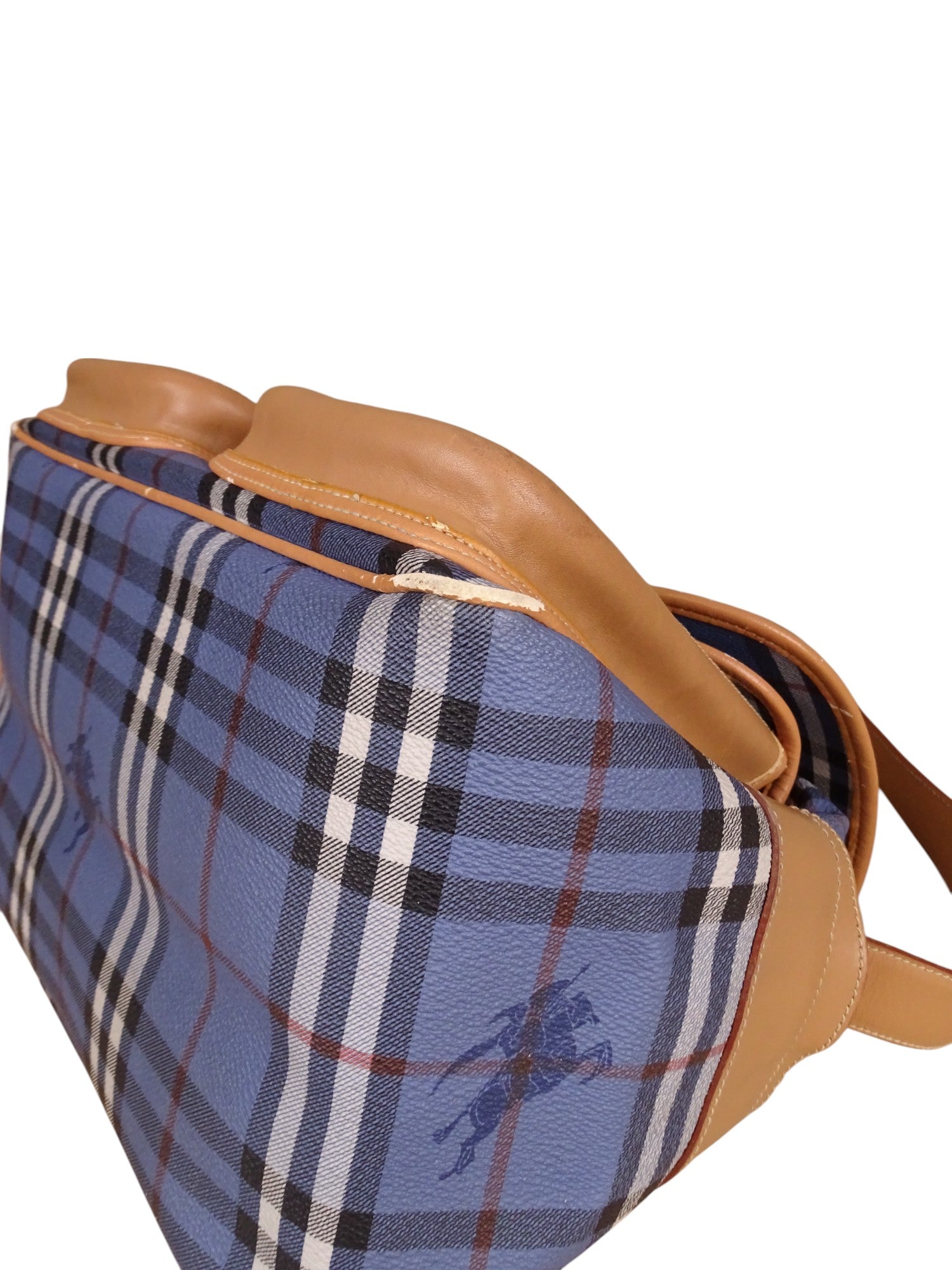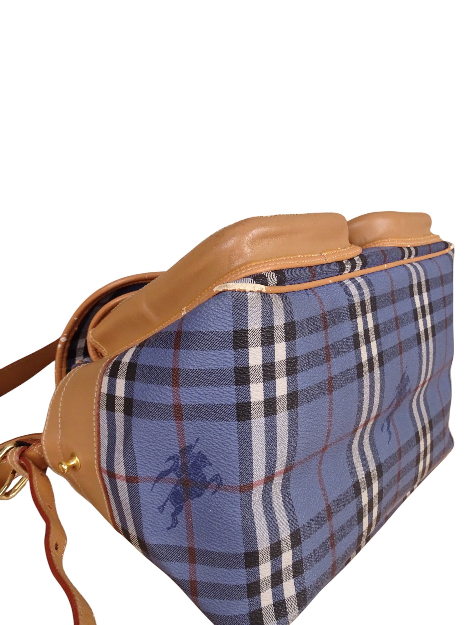 Sacoche Burberry Voyage Nova Check Cuir PVC Bleu Doré Vintage 70/80'