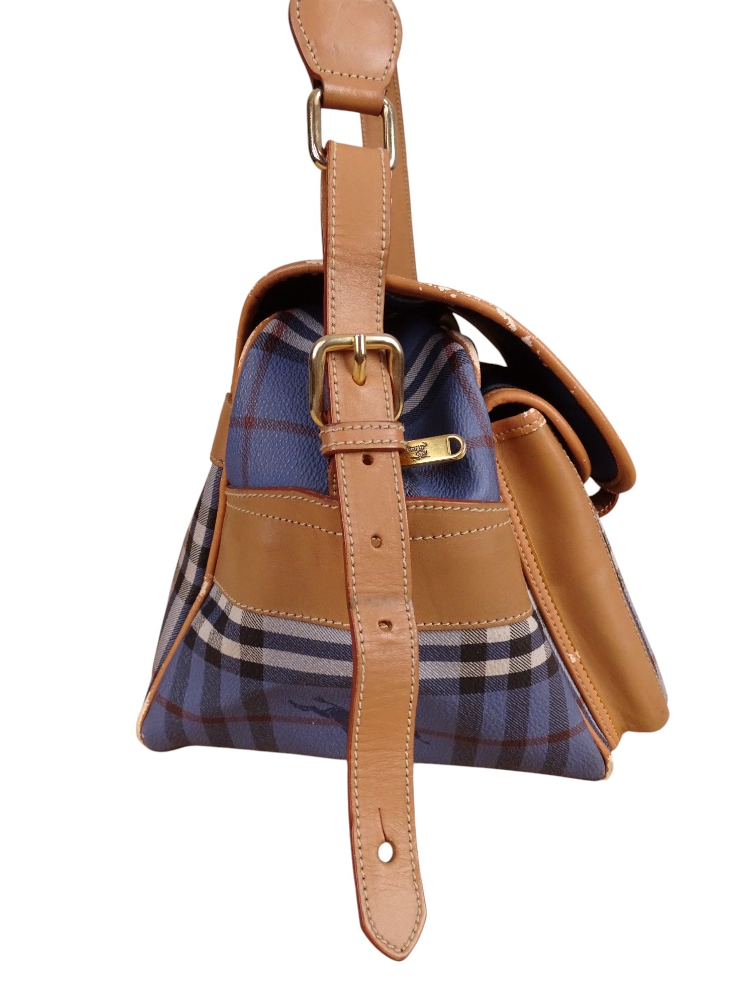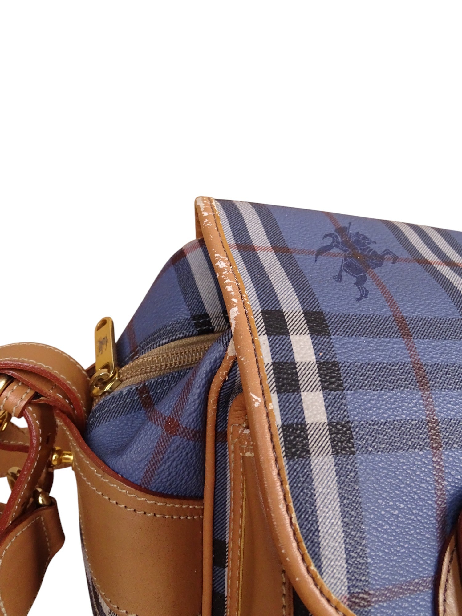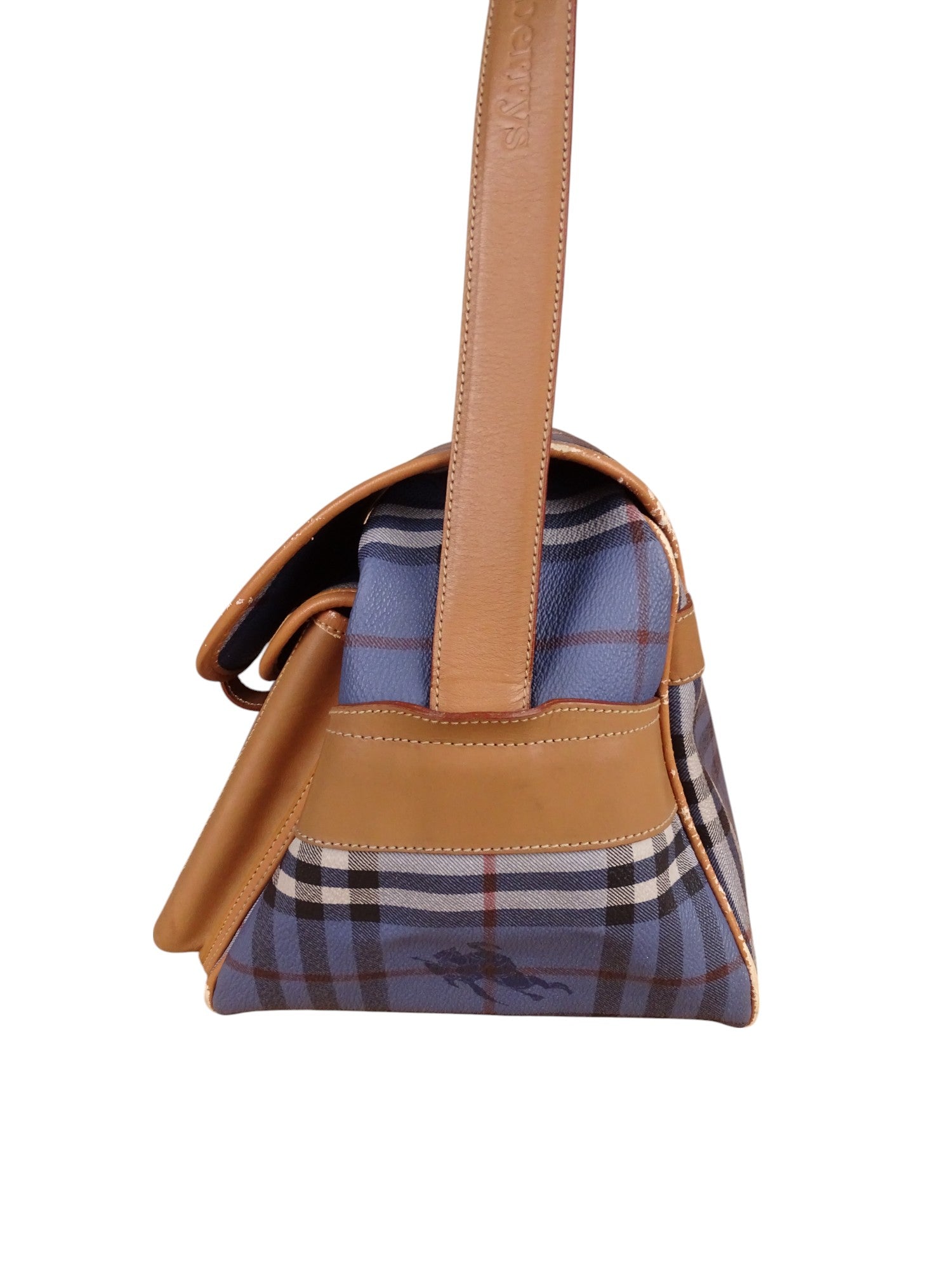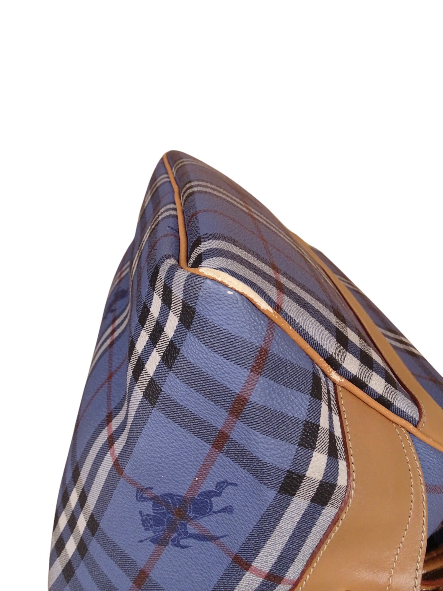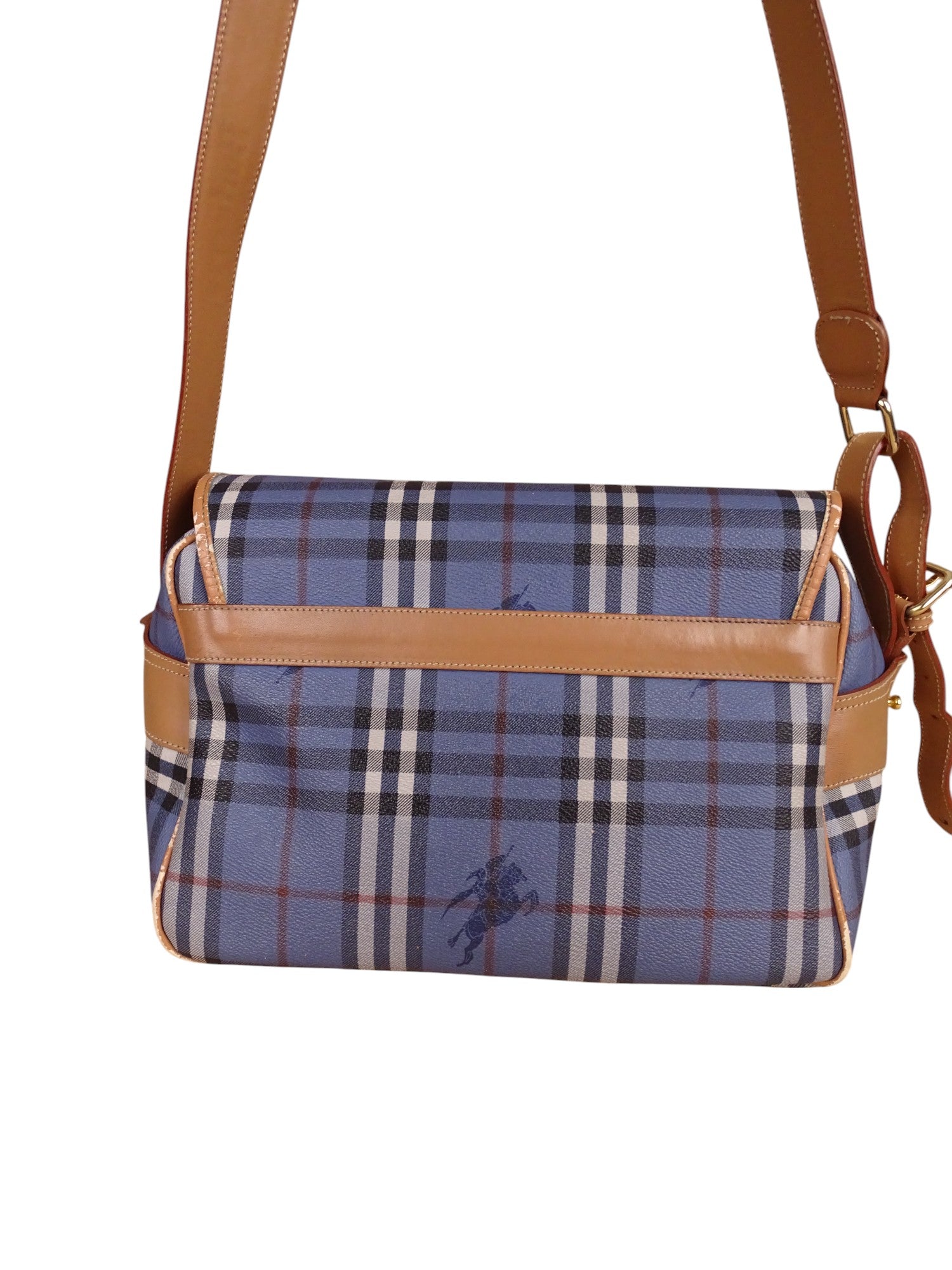 Sacoche Burberry Voyage Nova Check Cuir PVC Bleu Doré Vintage 70/80'