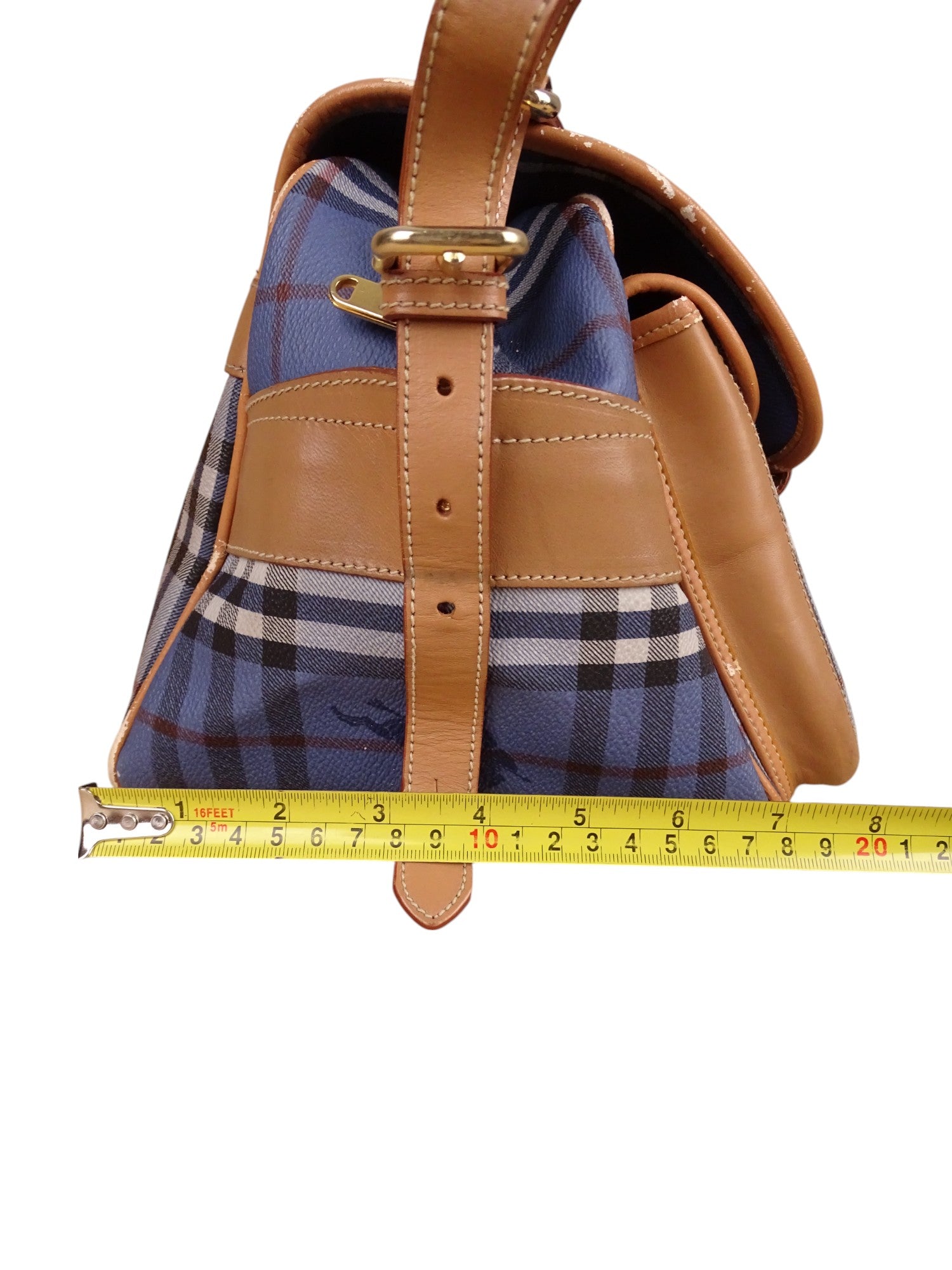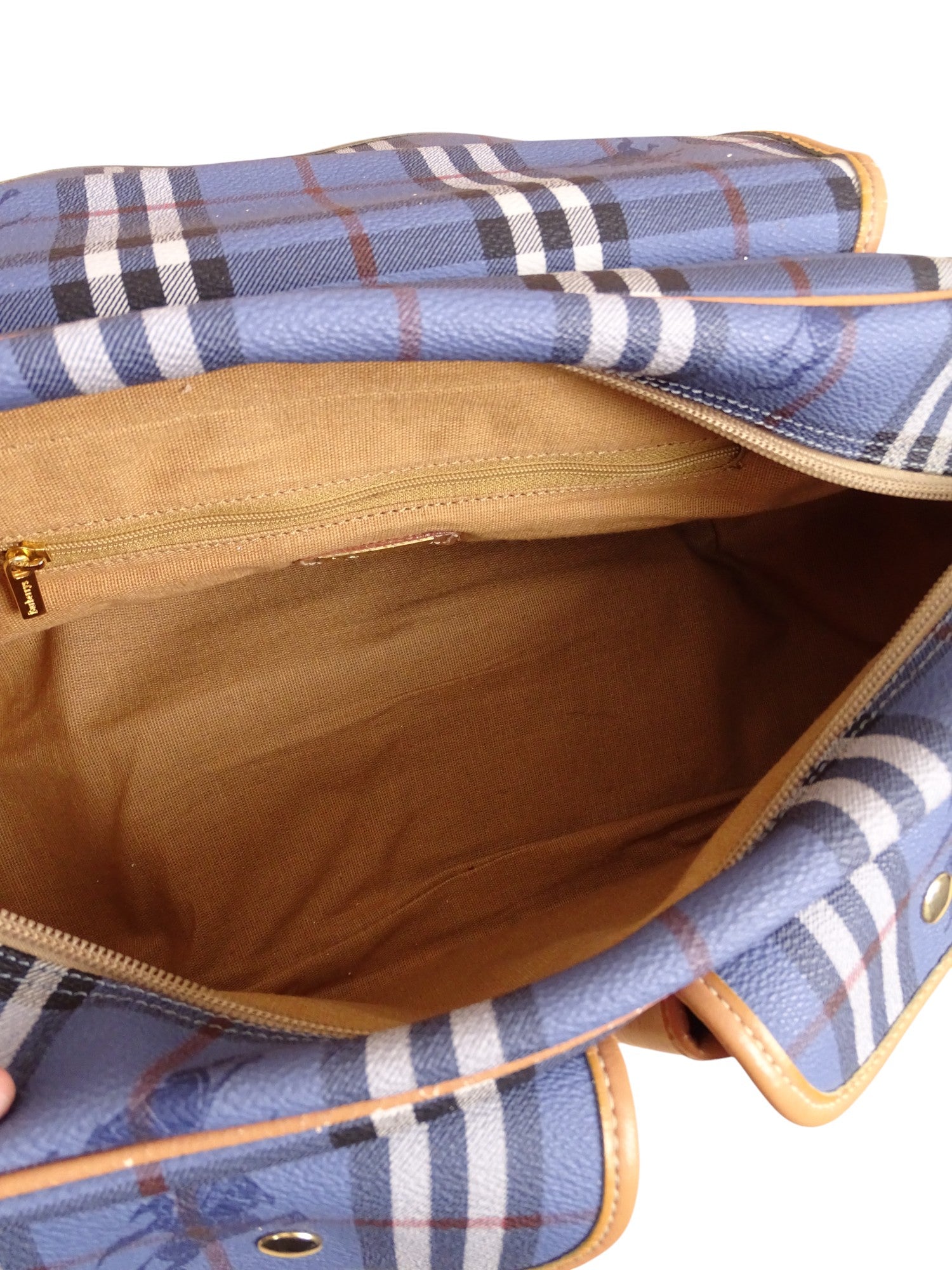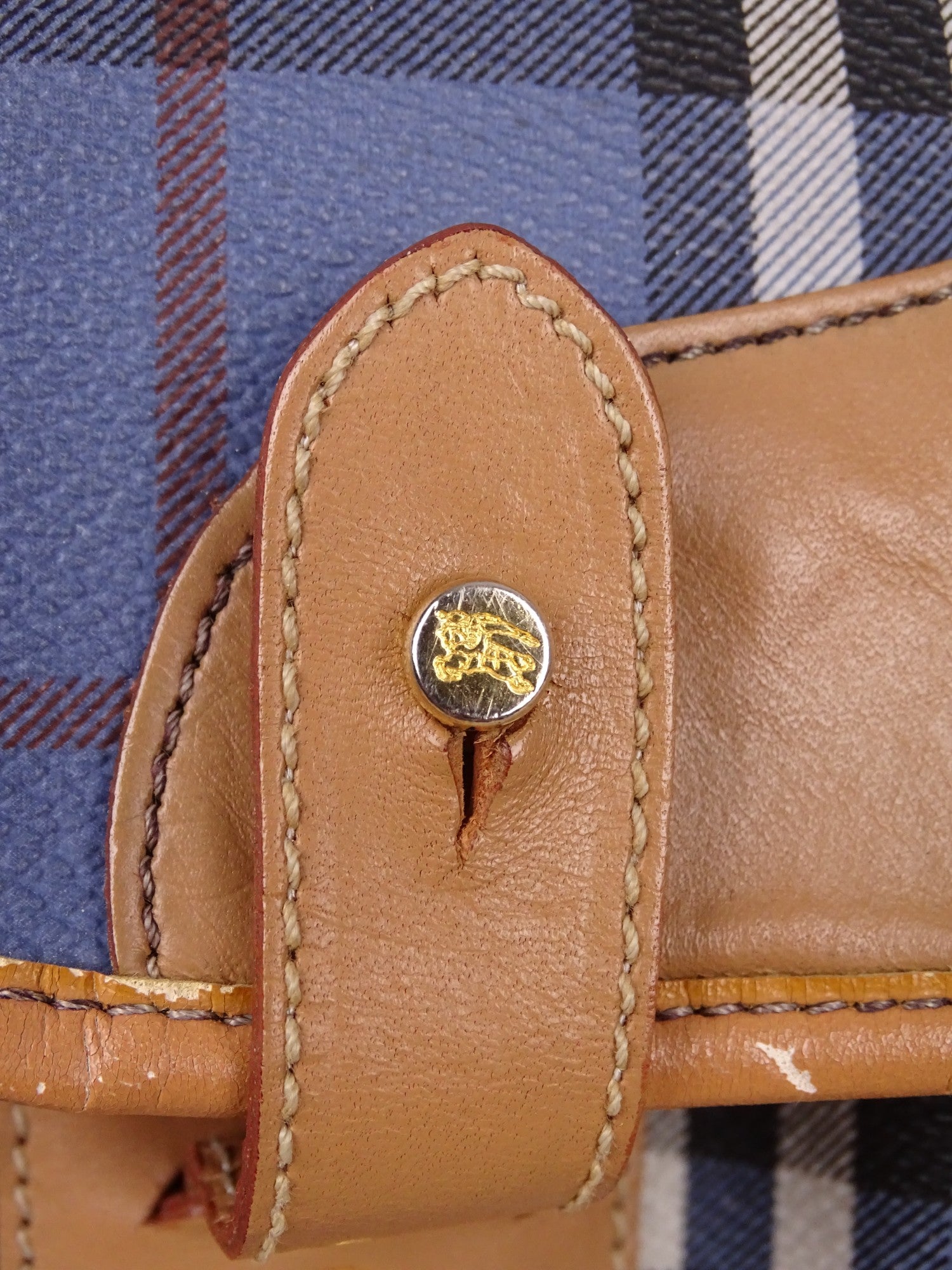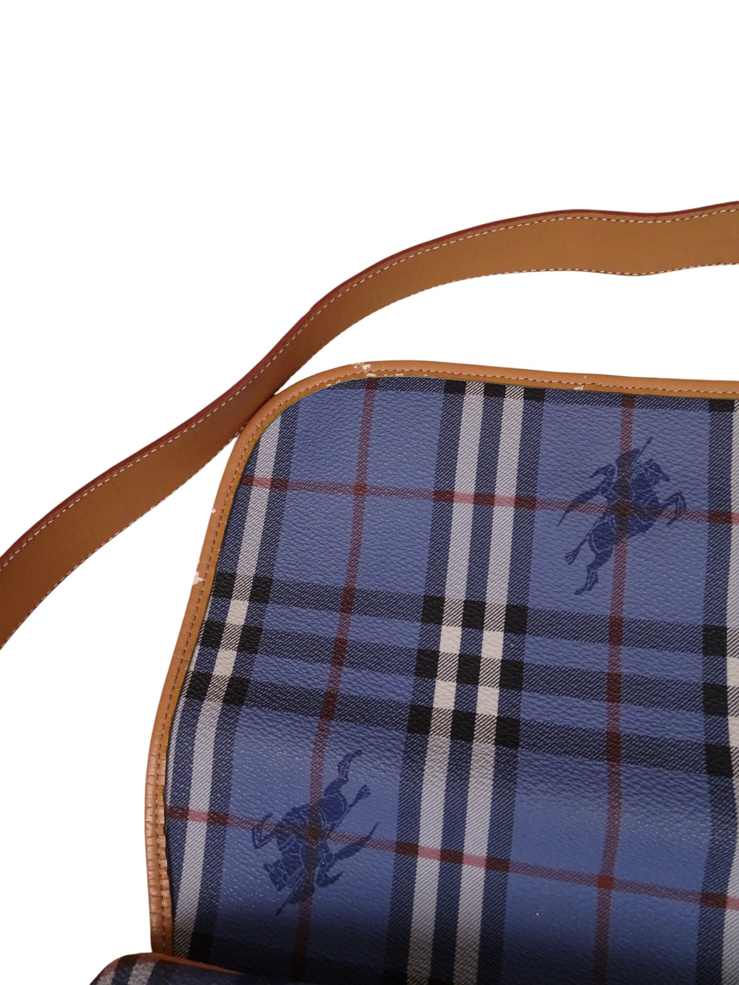 Sacoche Burberry Voyage Nova Check Cuir PVC Bleu Doré Vintage 70/80'