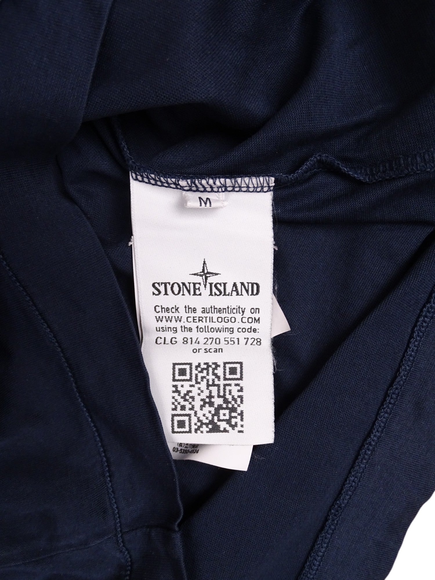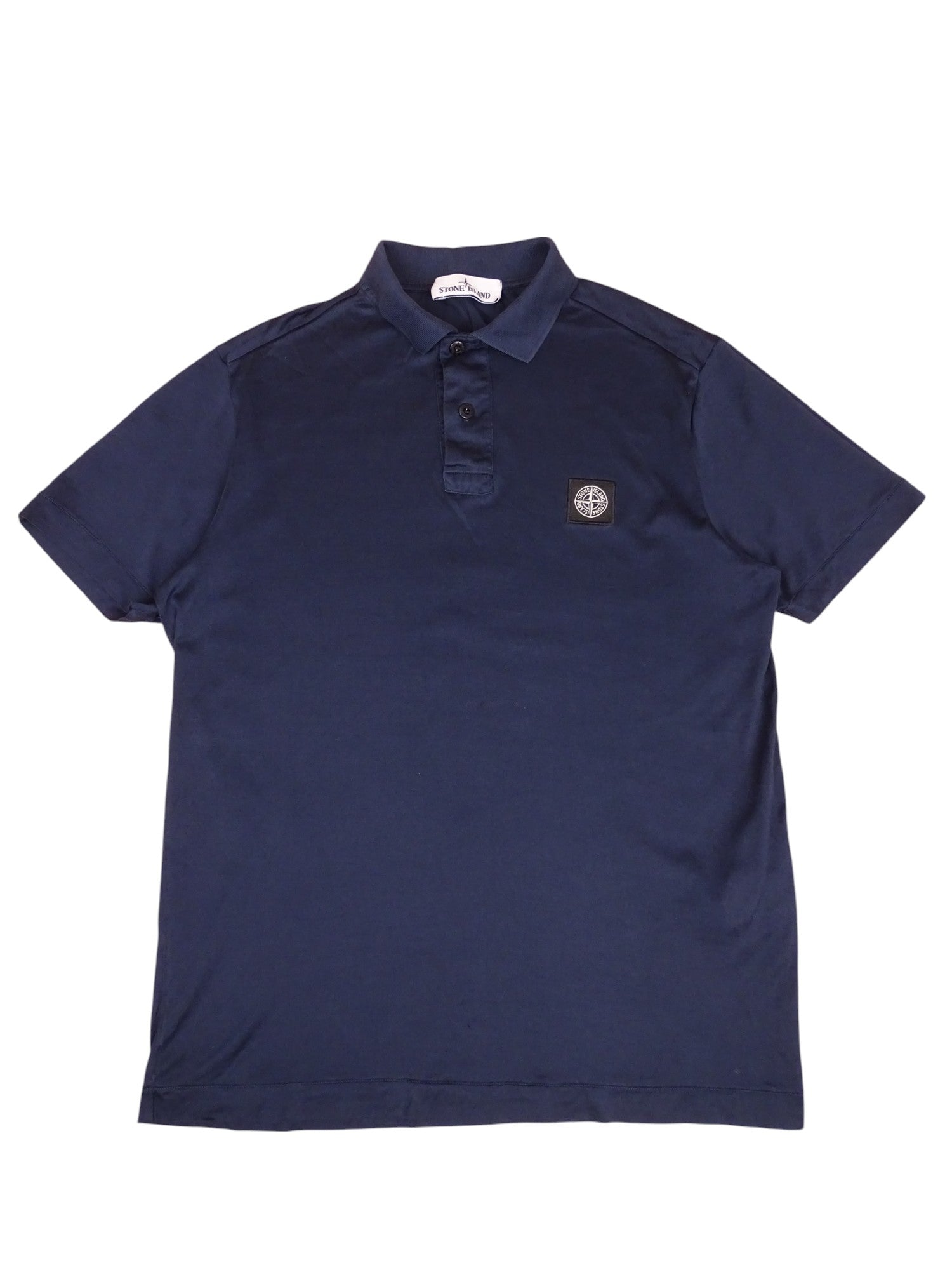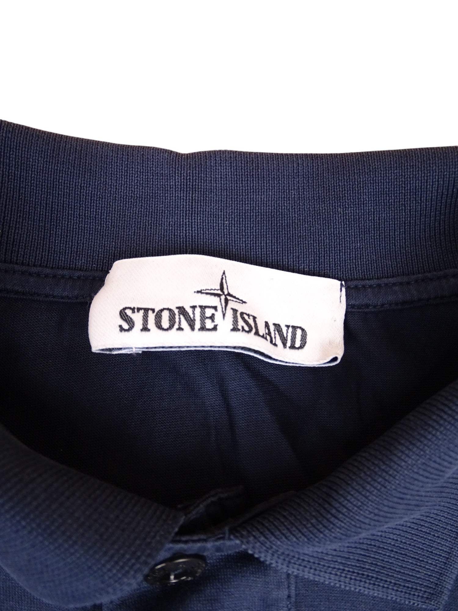 Polo Stone Island bleu marine en coton et élasthanne, taille M Homme. Un petit accroc en bas, sinon très bon état.