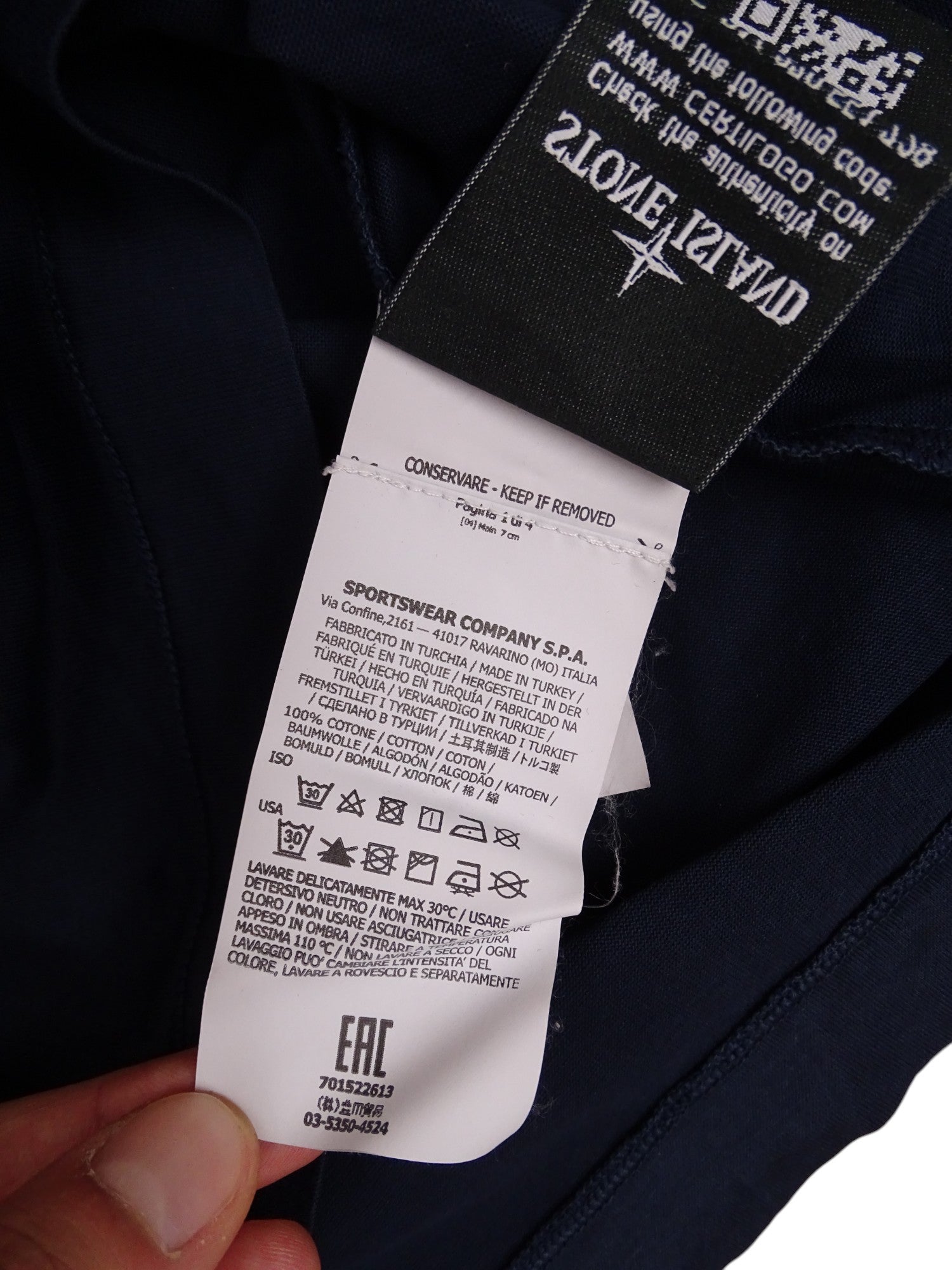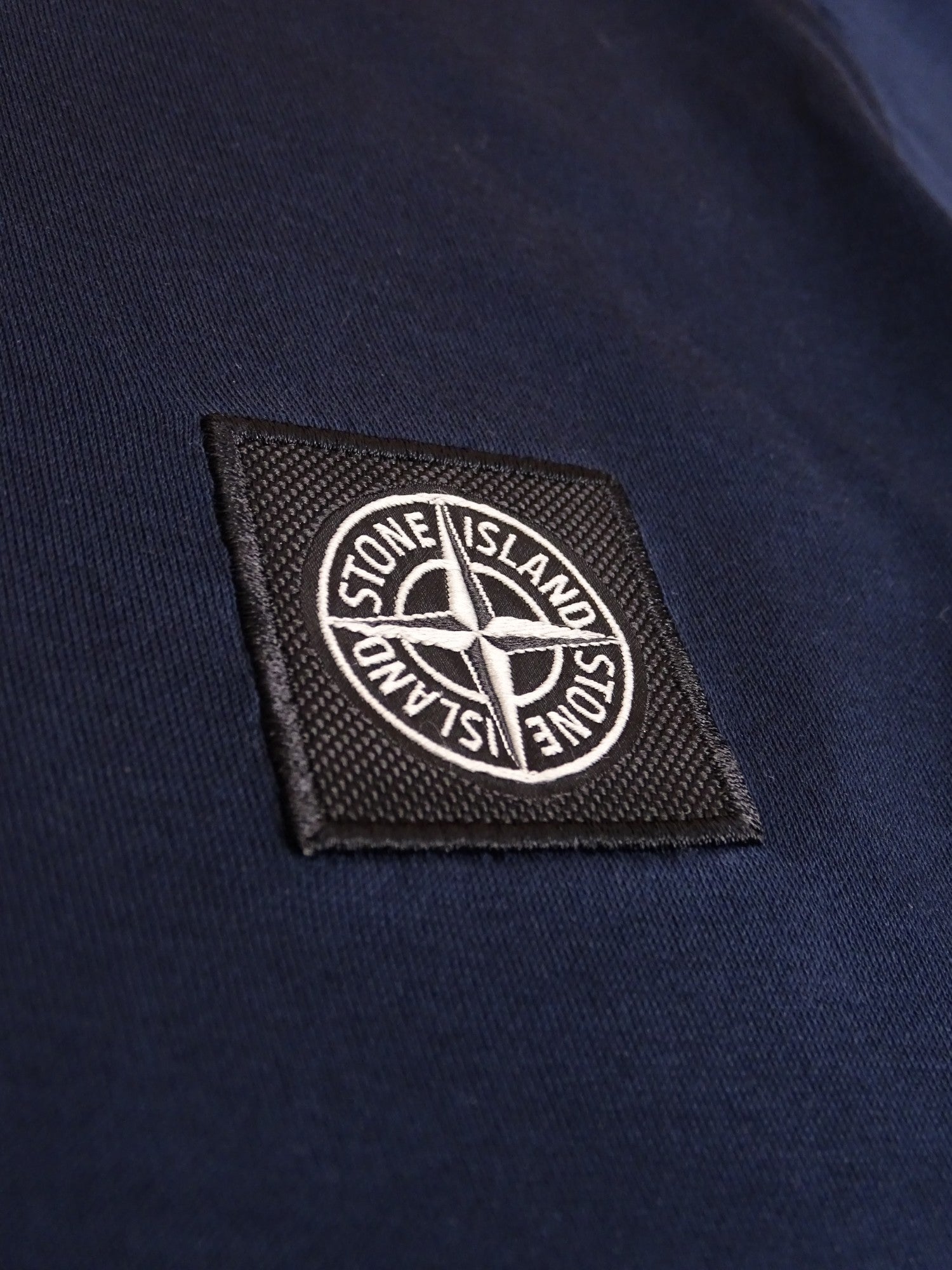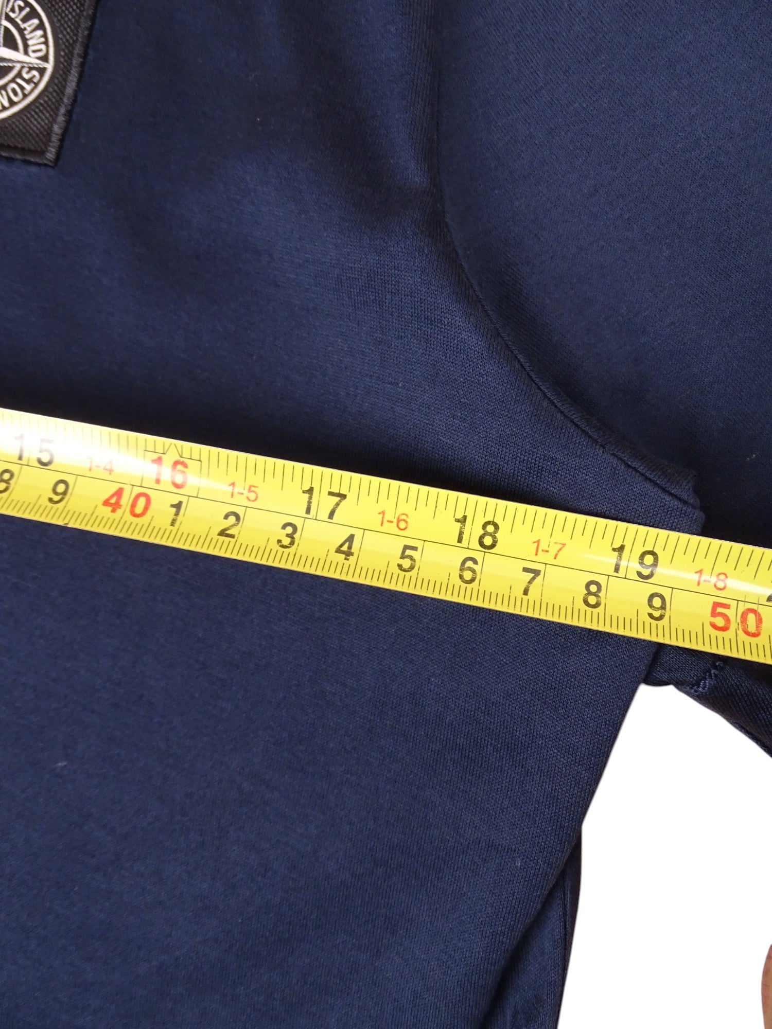 Polo Stone Island bleu marine en coton et élasthanne, taille M Homme. Un petit accroc en bas, sinon très bon état.