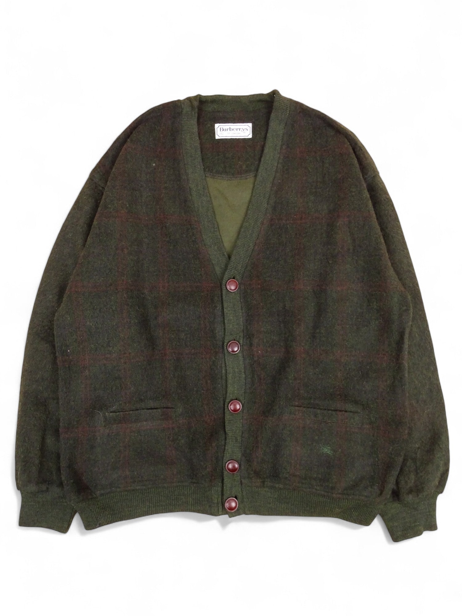 Burberry Cardigan Kaki Vert Écossais Laine XL Homme