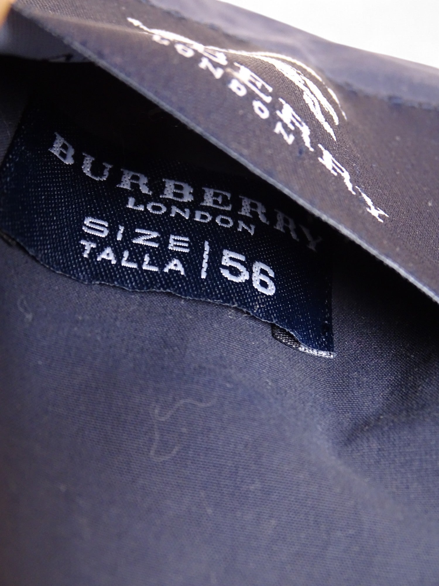 Manteau long Burberry pour homme, coloris bleu marine et beige, taille XL (équivalent 56 chez Burberry). Très bon état : légère trace sur la manche (voir photos).