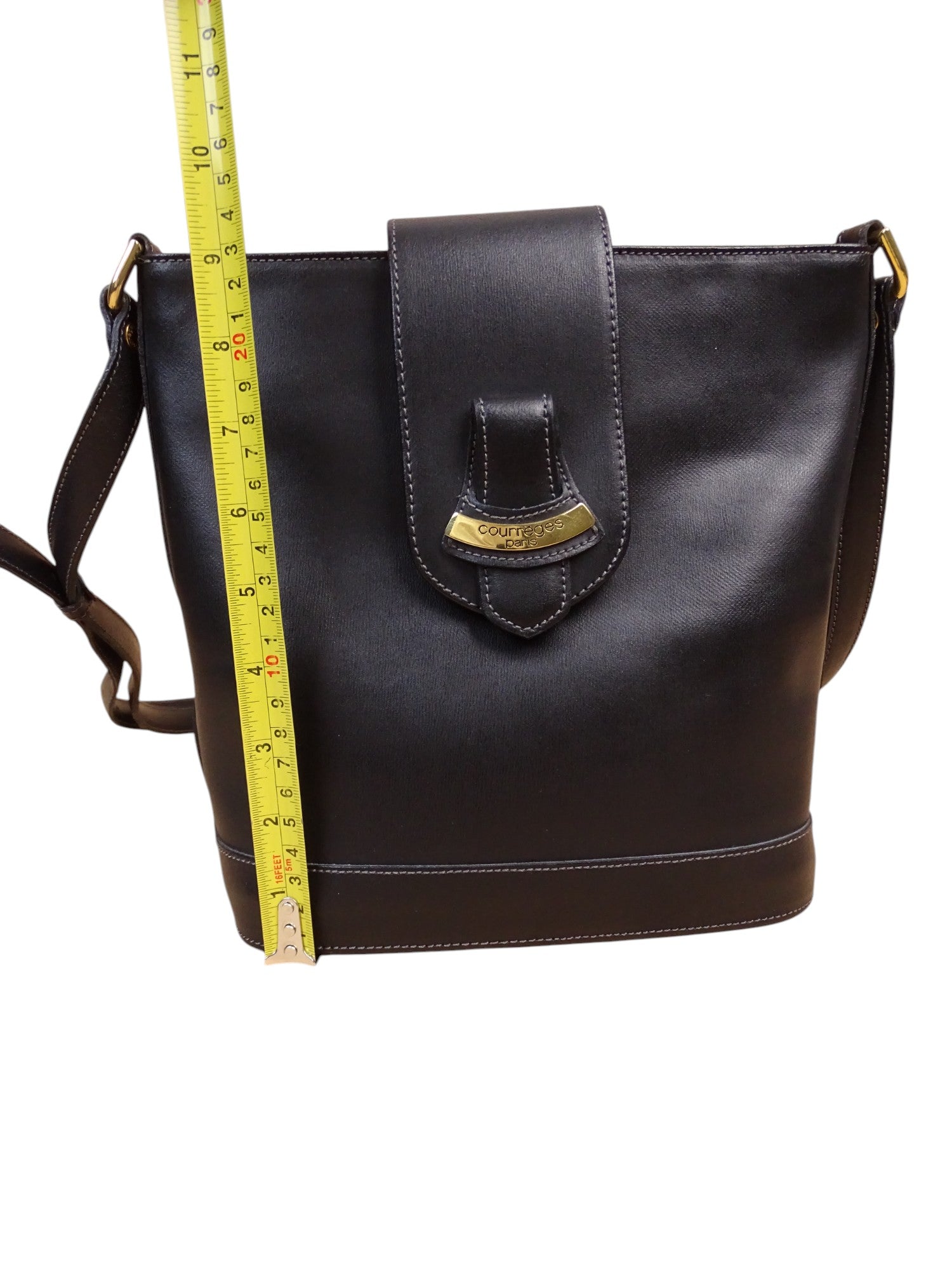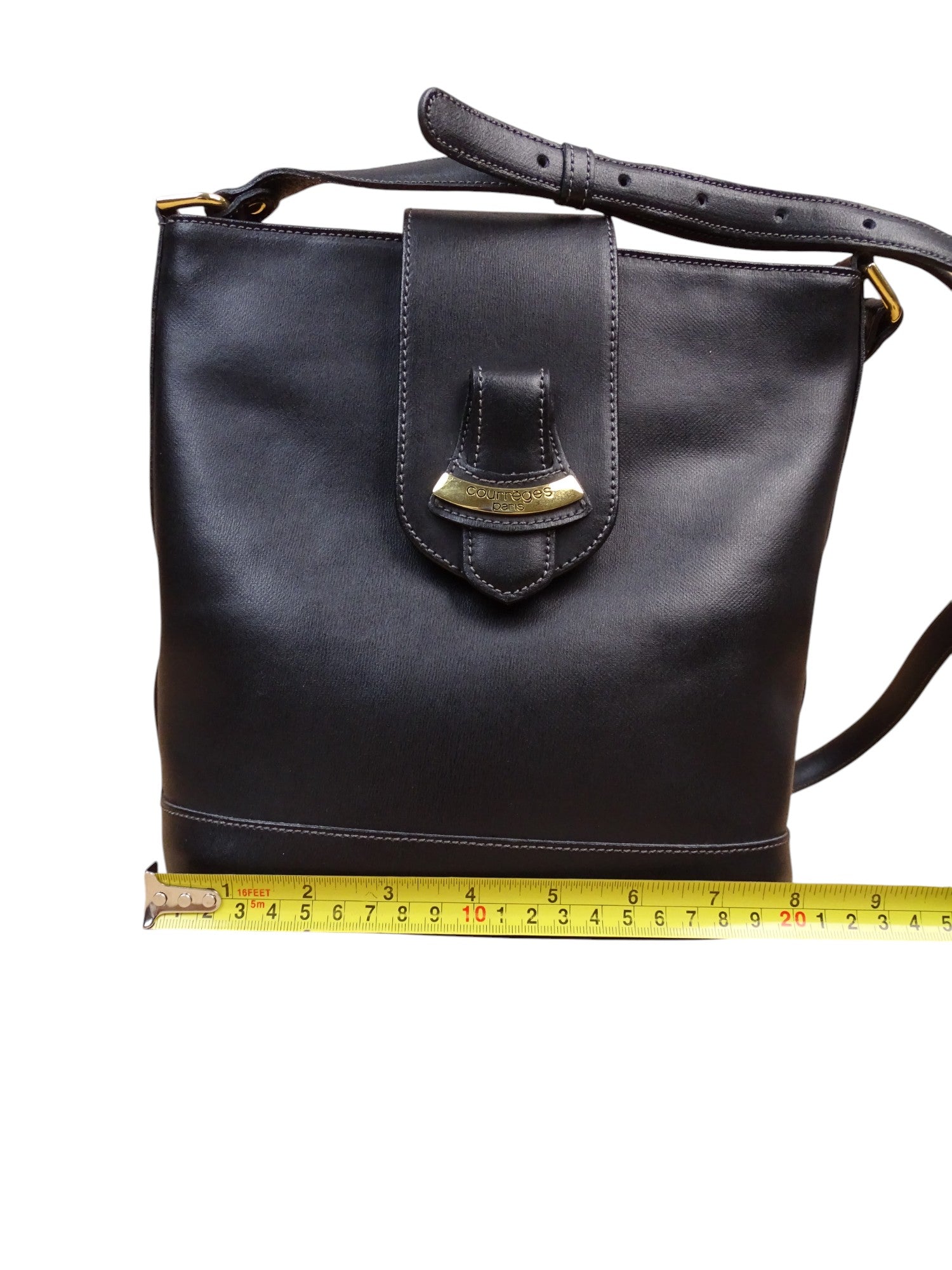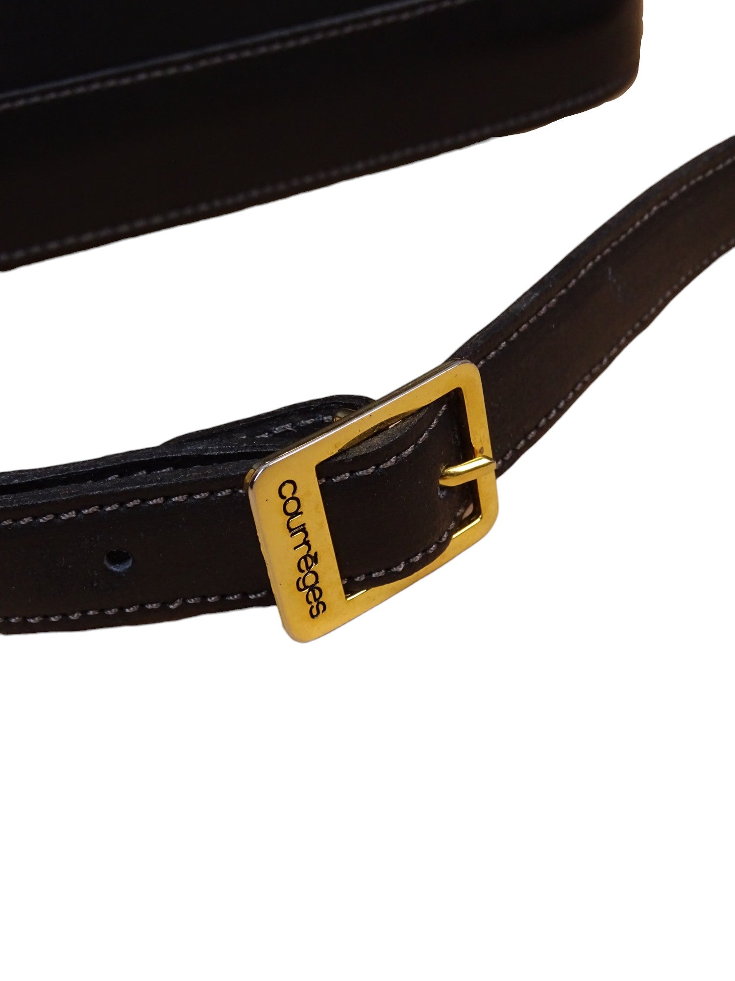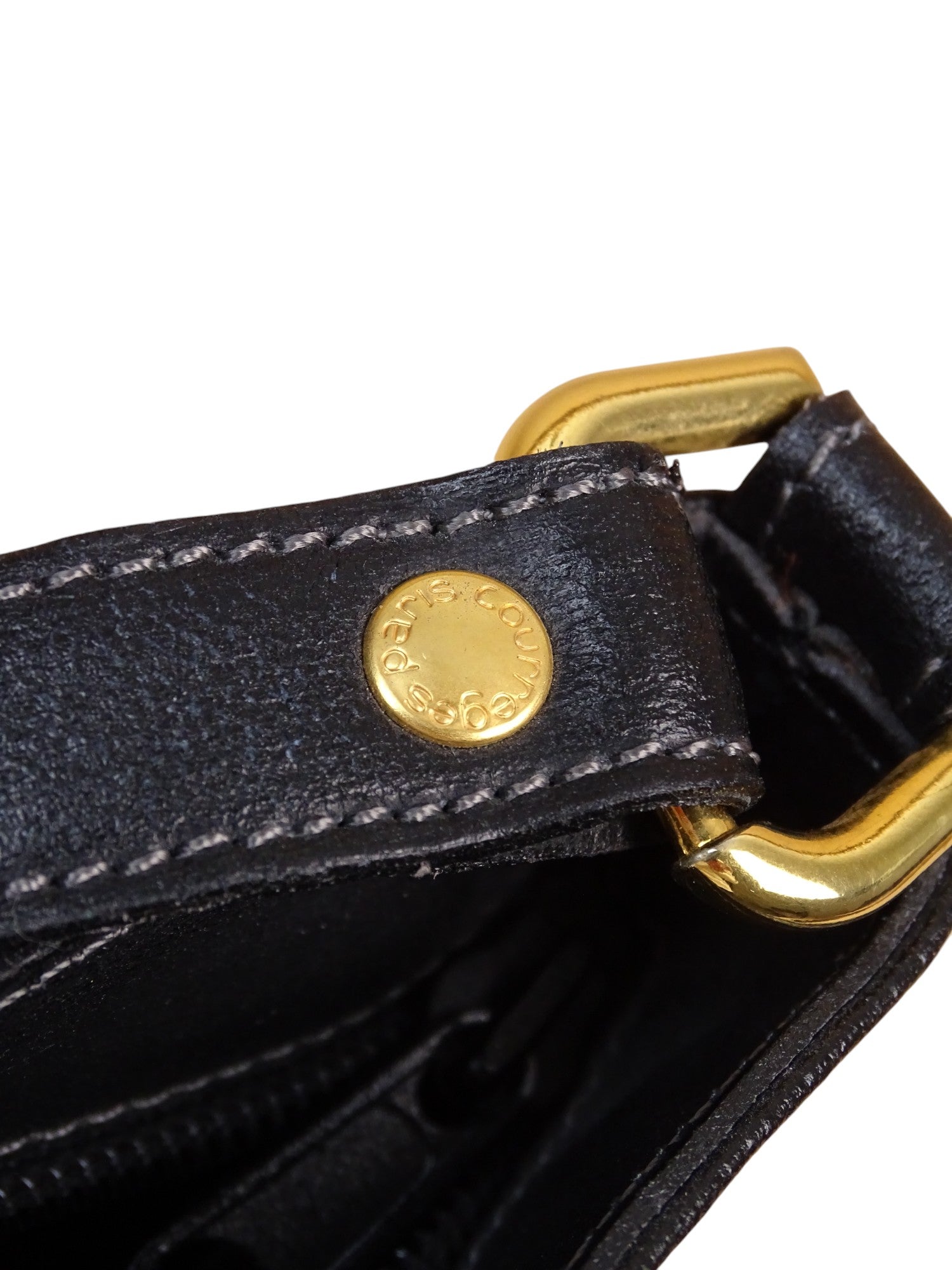 Courrèges Sac À Bandoulière Noir Cuir Vintage 1985 Femme