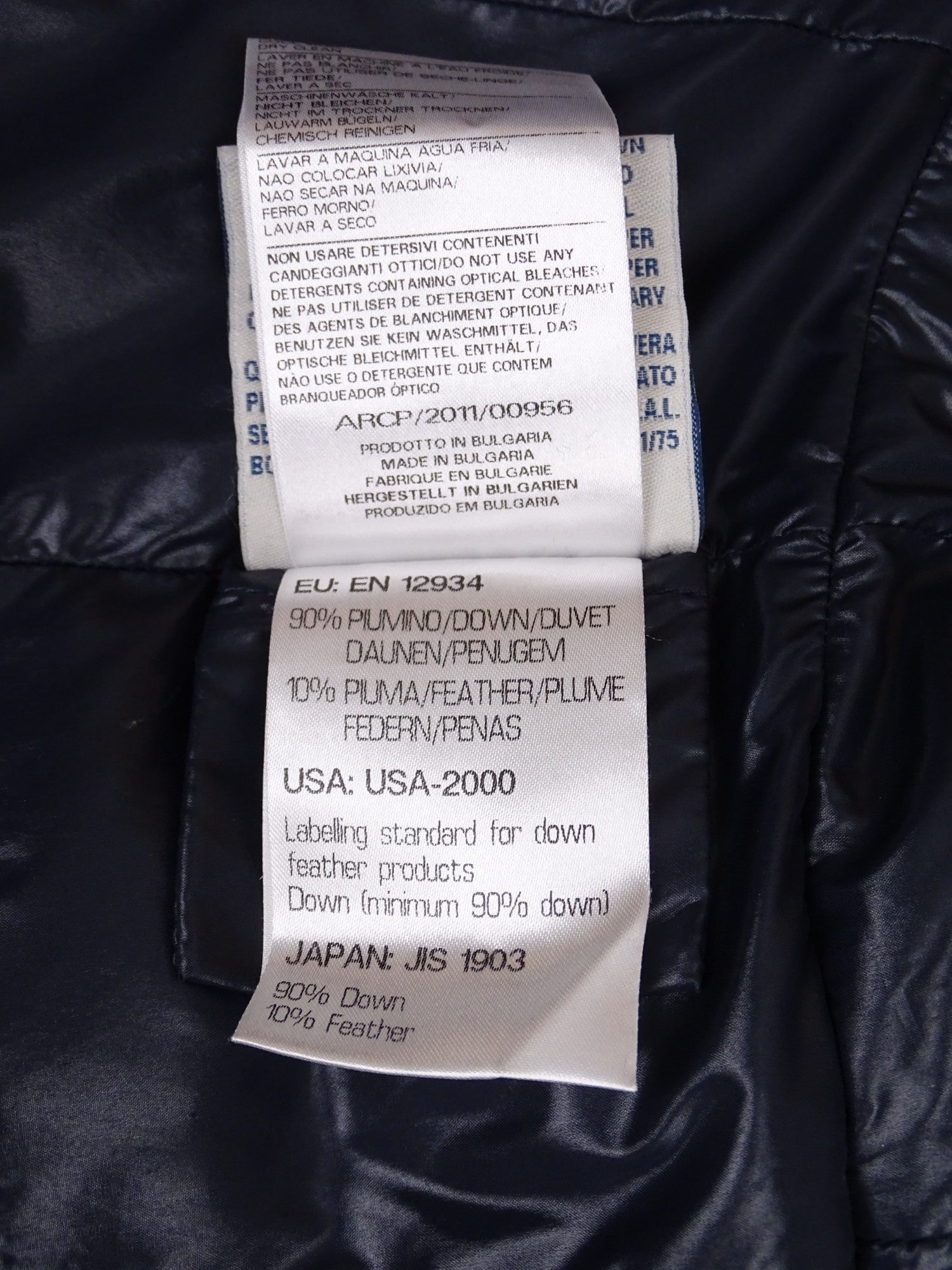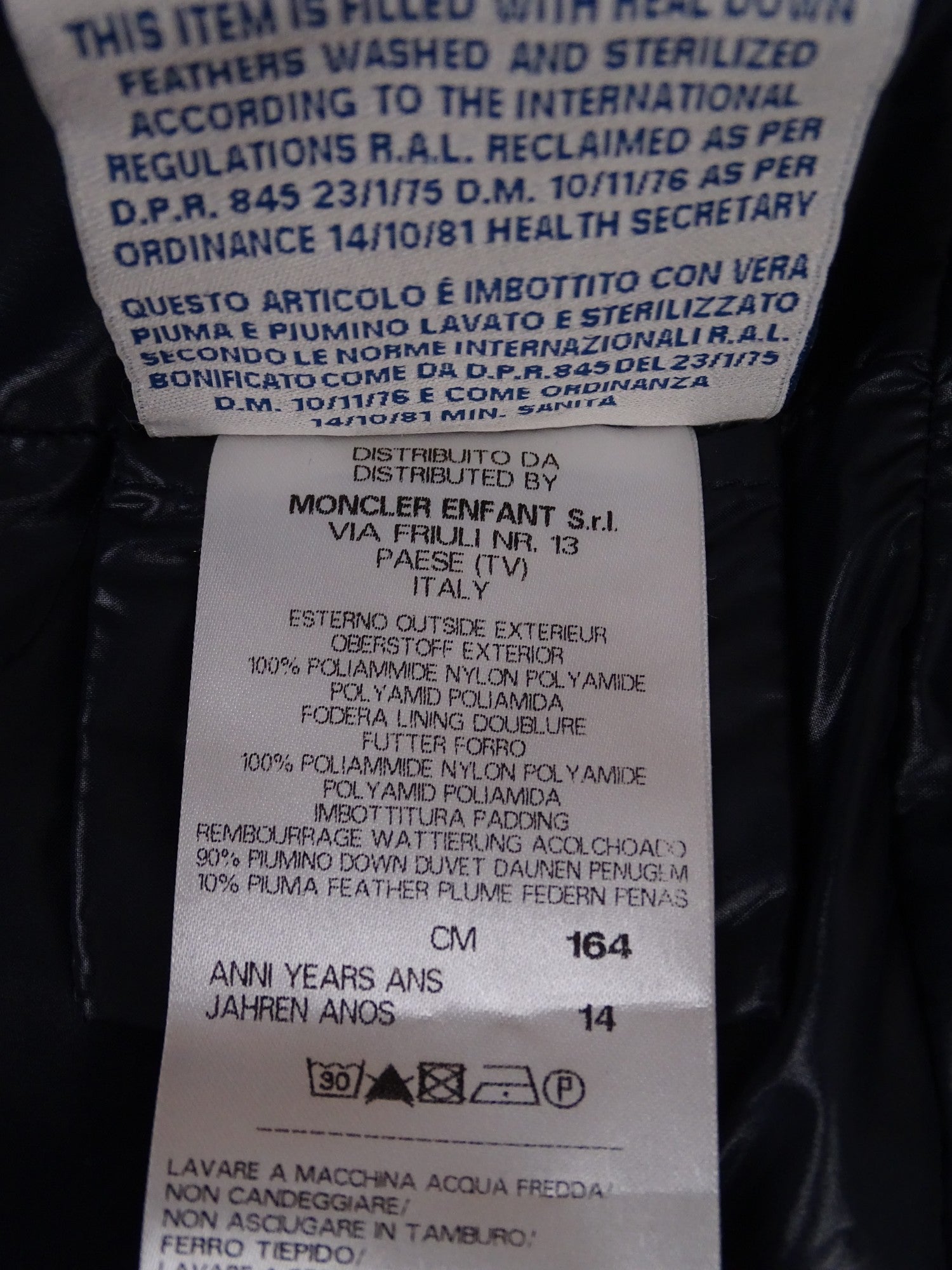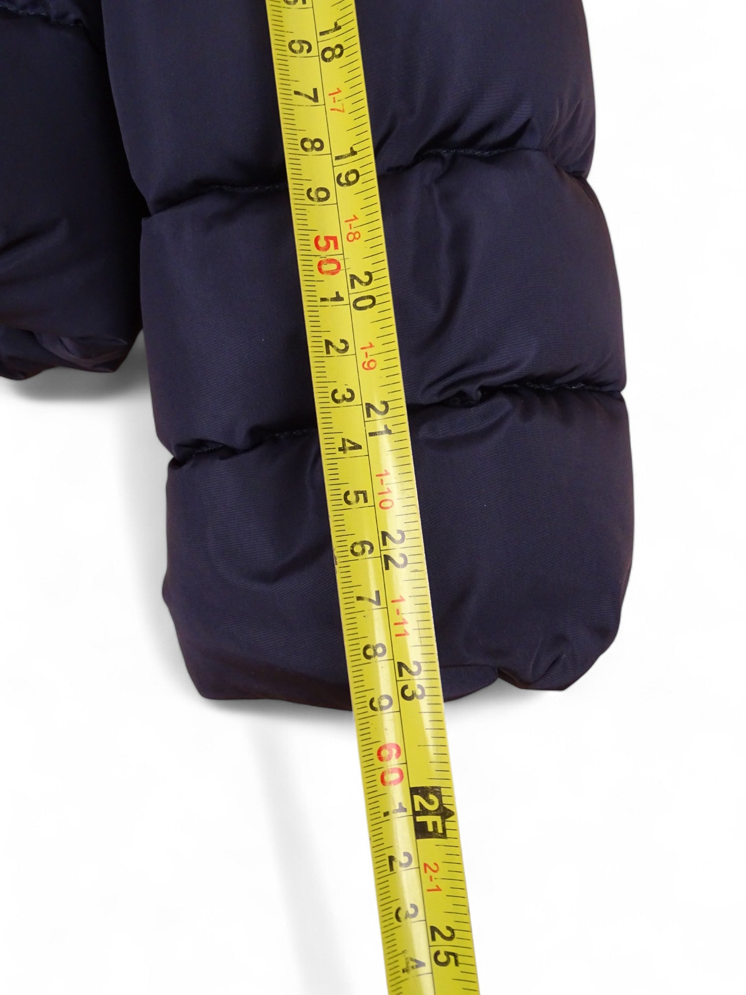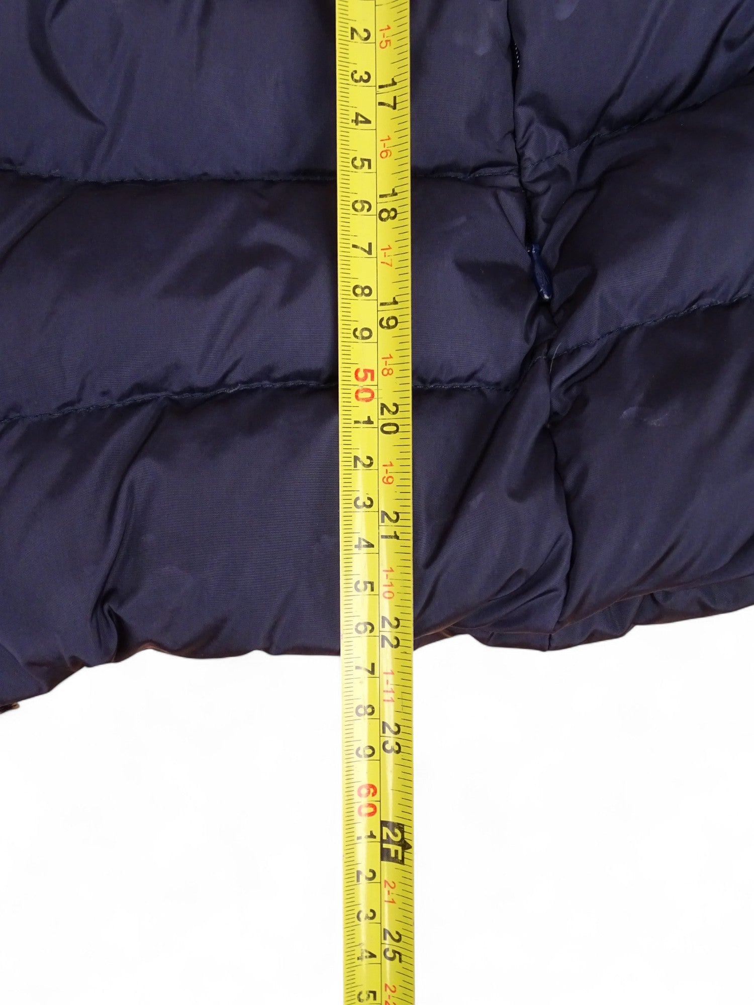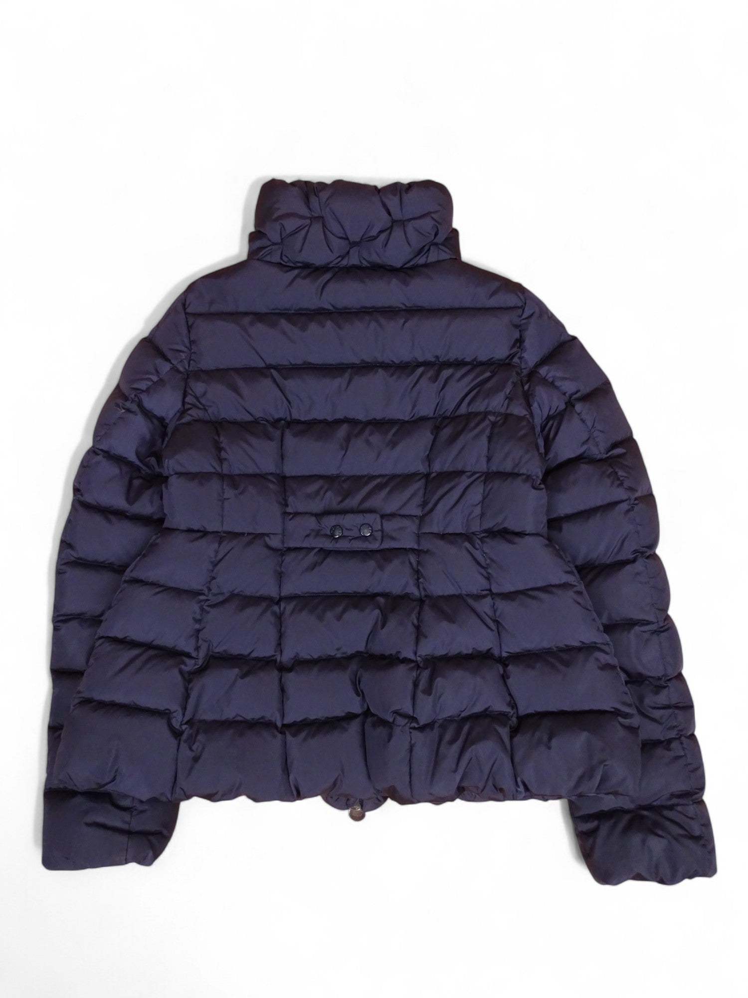 Doudoune Moncler matelassée bleu marine en taille S Femme (étiquette 14 ans). Très bon état, légèrement sale en bas du dos mais facilement nettoyable. Parfait pour une silhouette féminine.