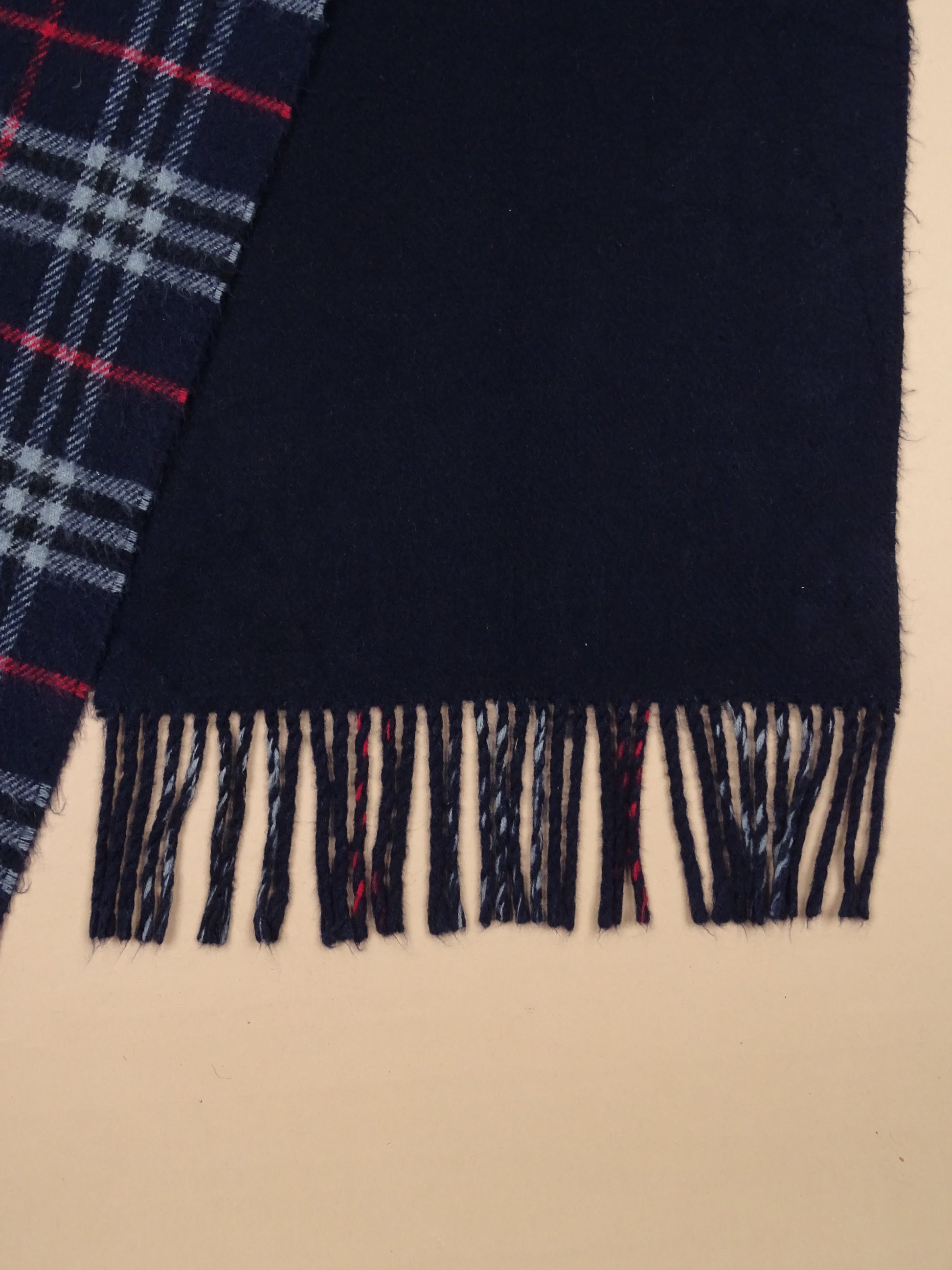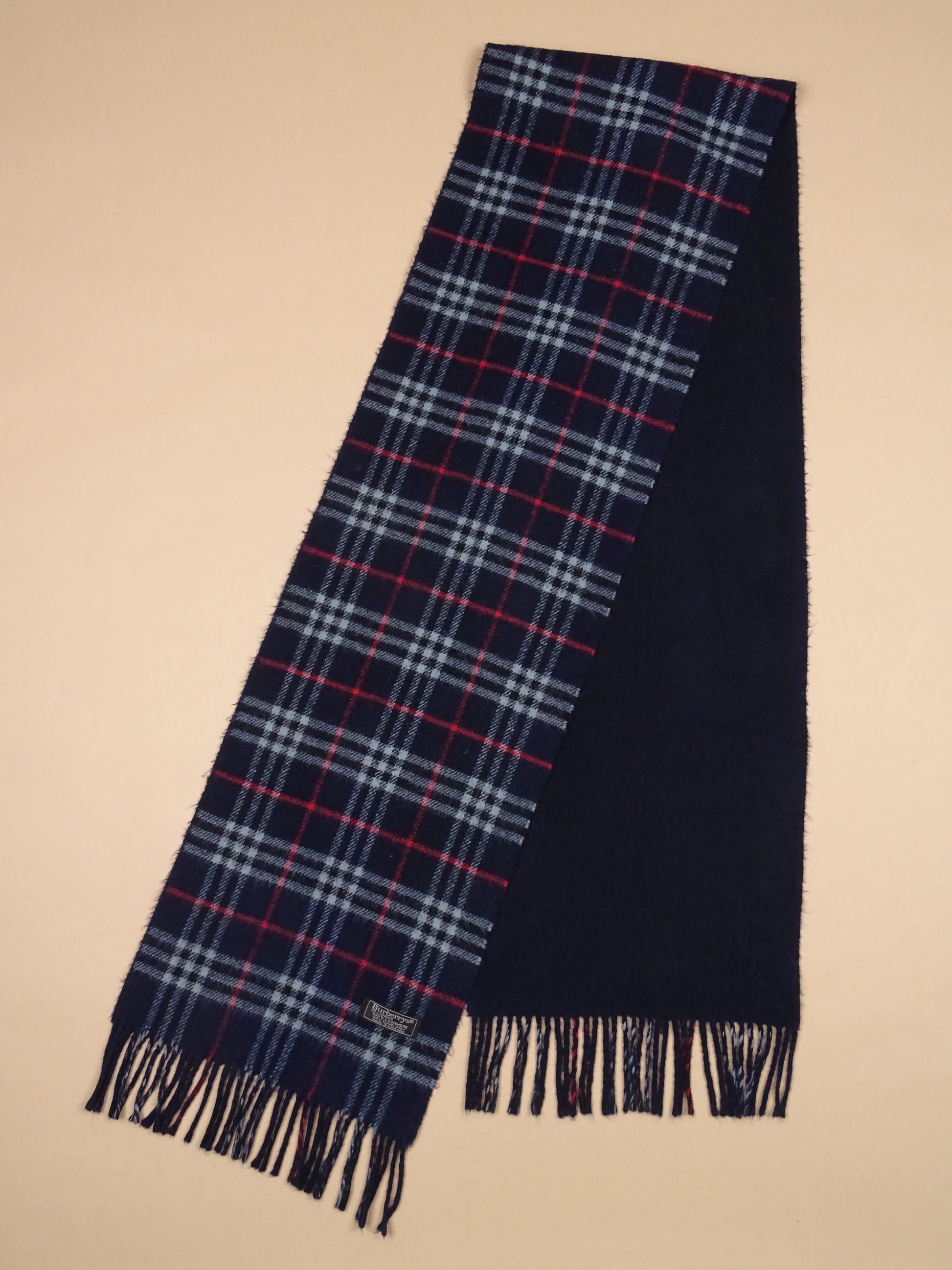 Écharpe Burberry Bleu Marine Cachemire Réversible Nova Check 203 Cm Long