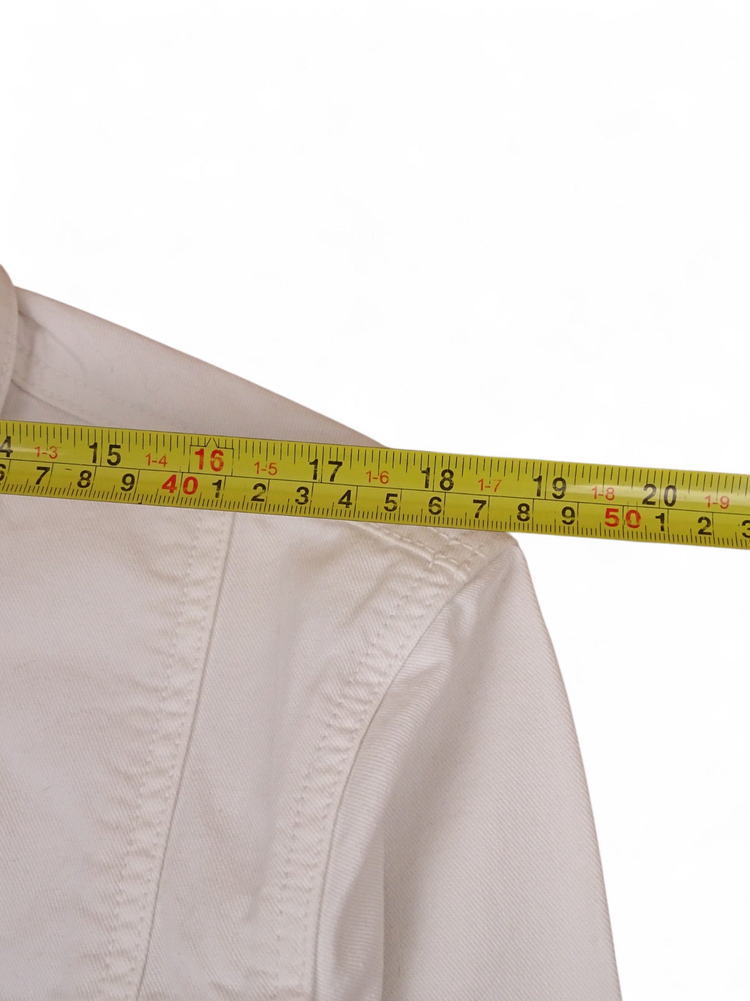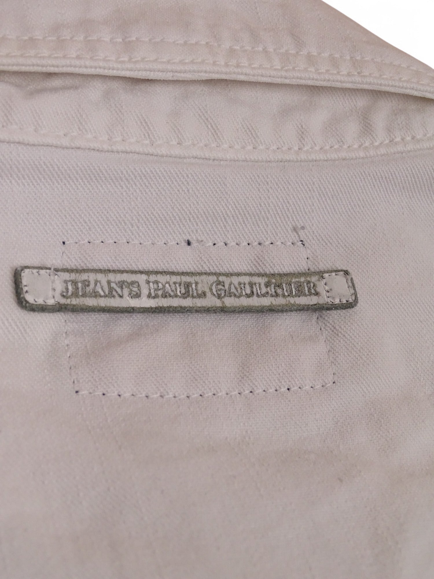 Veste en jean blanche crop Jean Paul Gaultier, taille L homme. Très bon état, seulement quelques très légères traces d’utilisation (voir photos).
