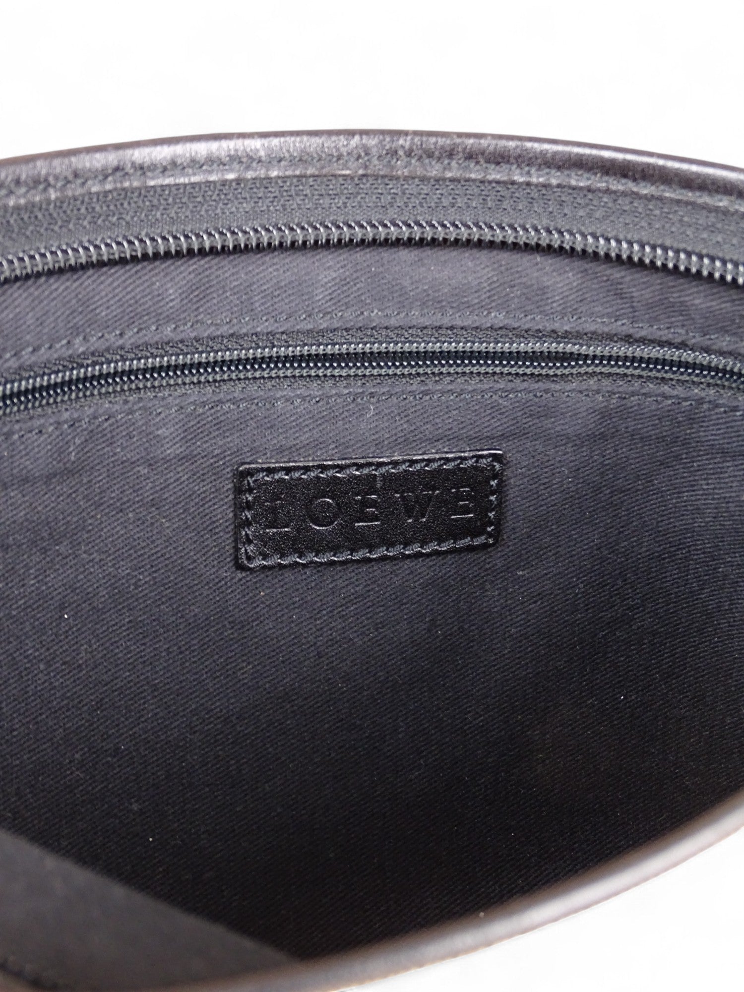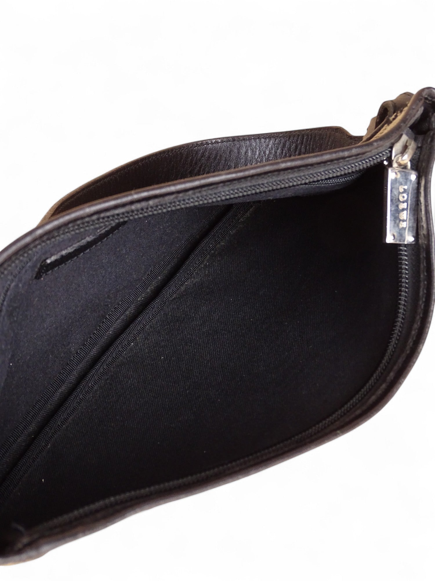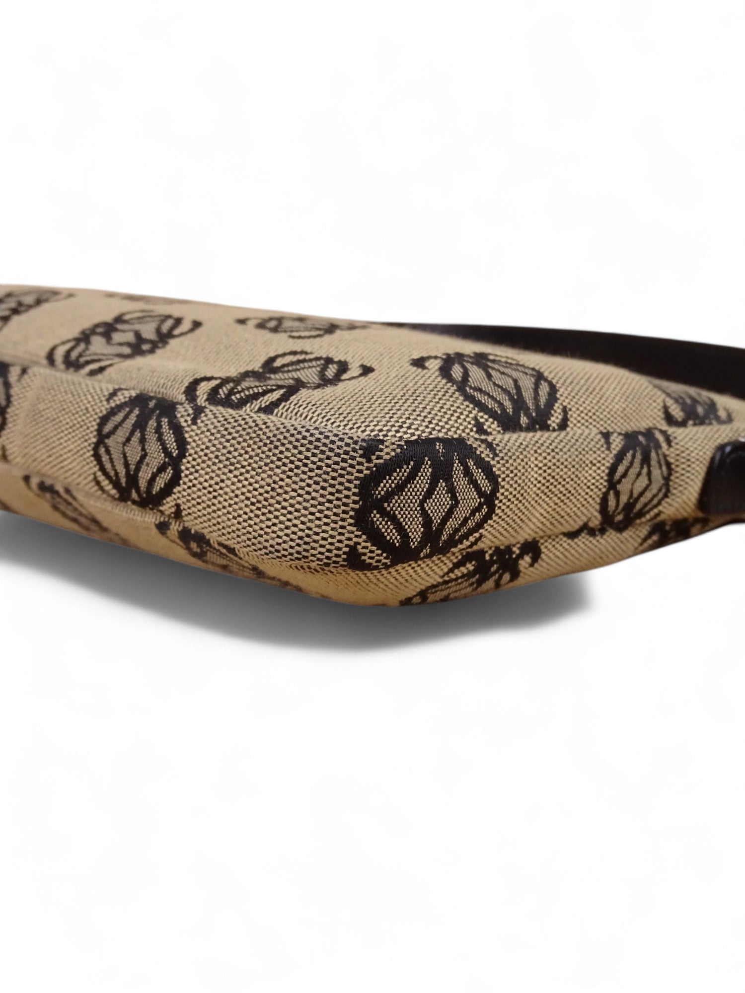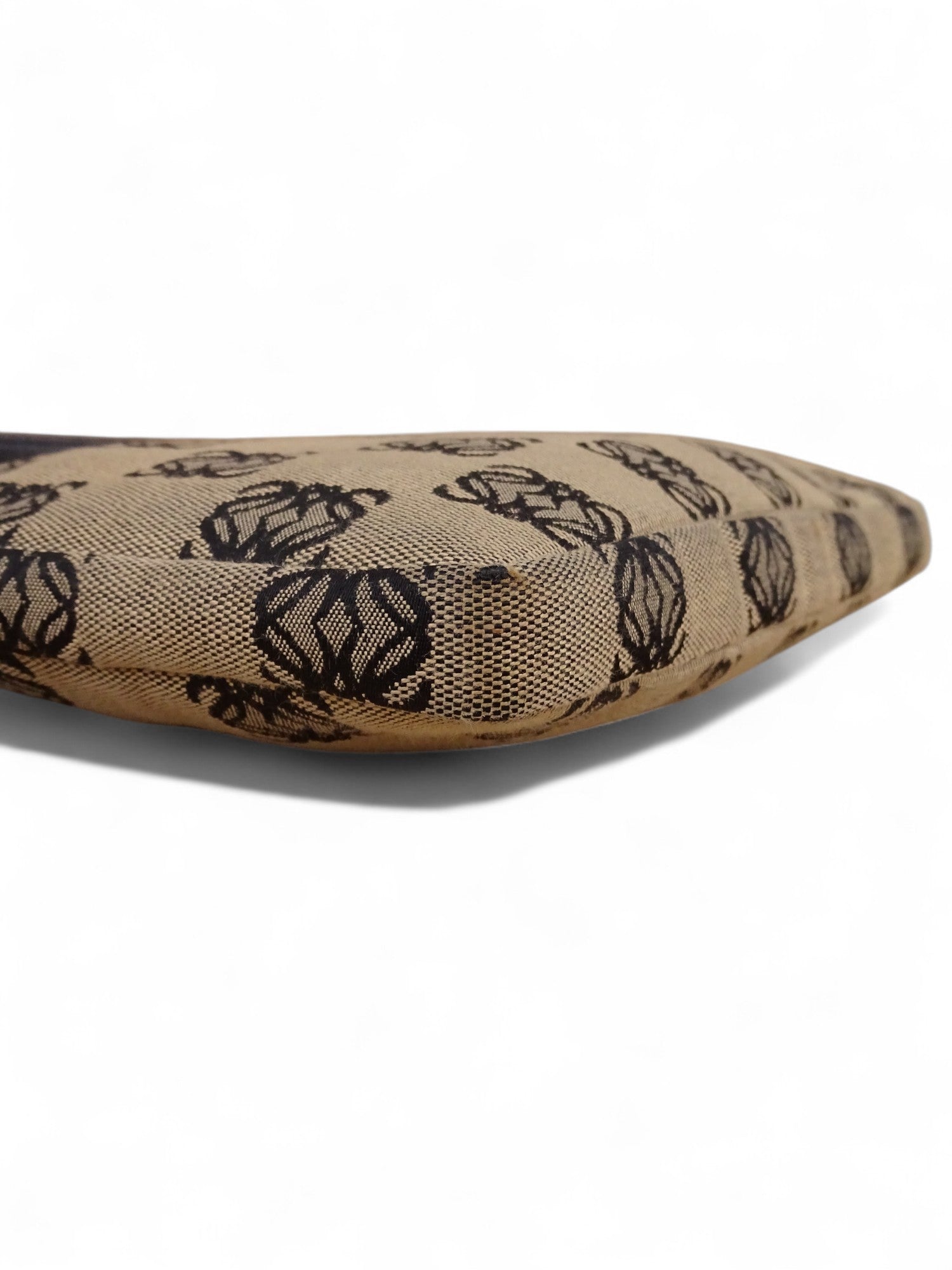 Sac Loewe porté épaule, toile beige et marron avec logo Anagram. Très bon état ; une mini trace dessous et quelques petites marques sur l'anse en cuir (voir photos).