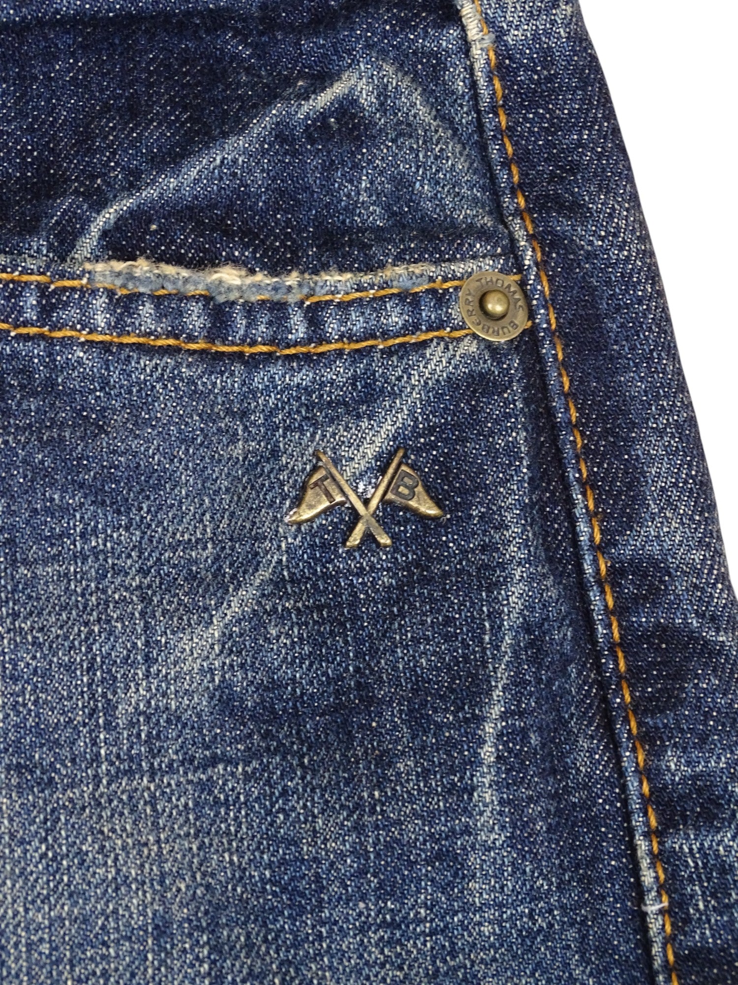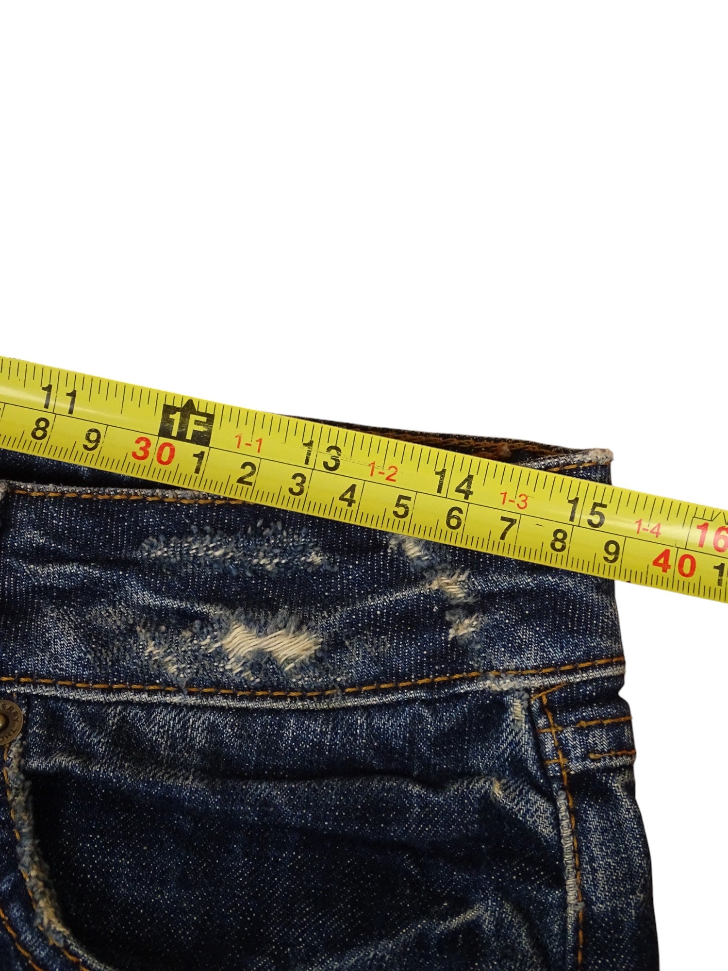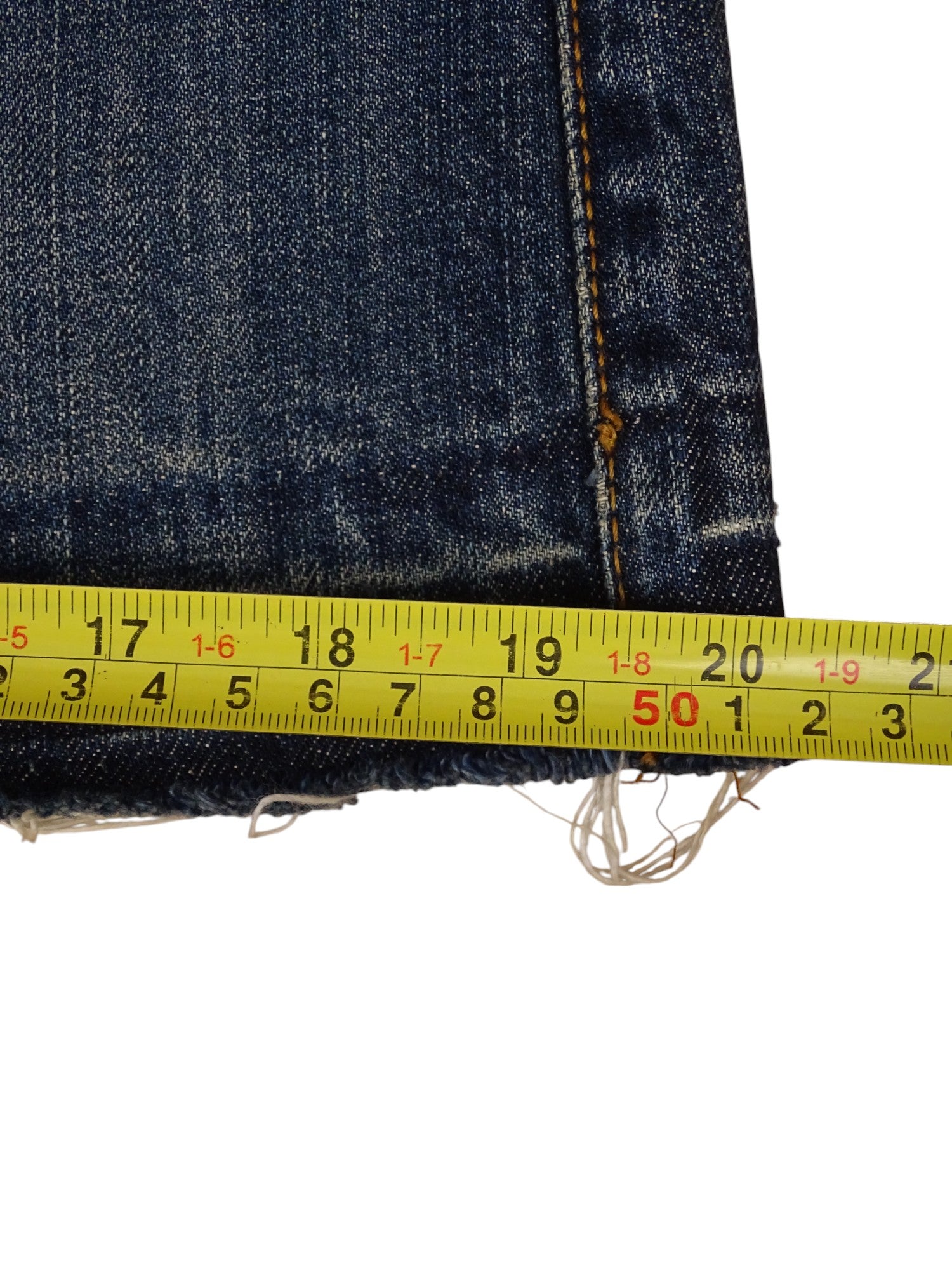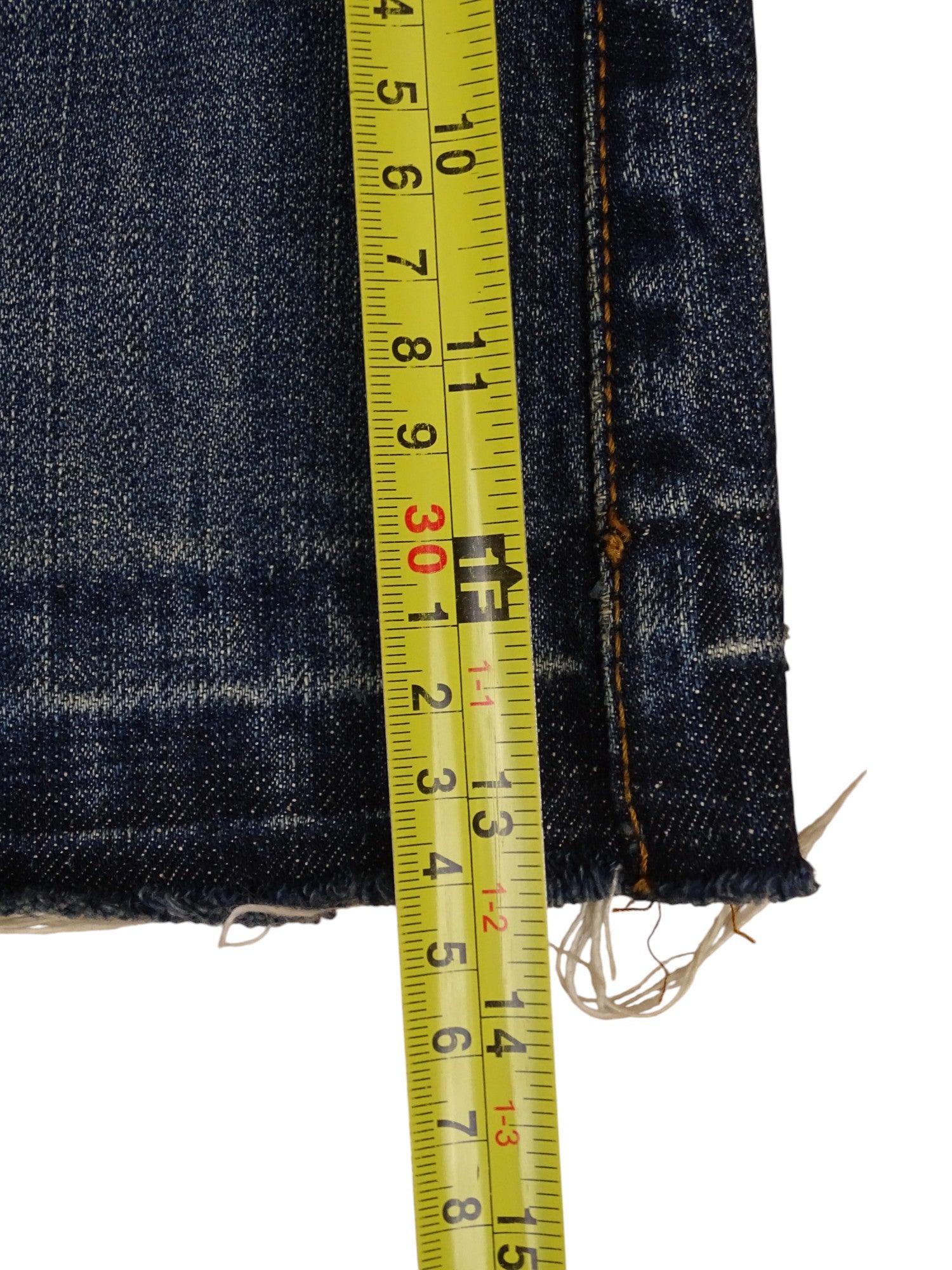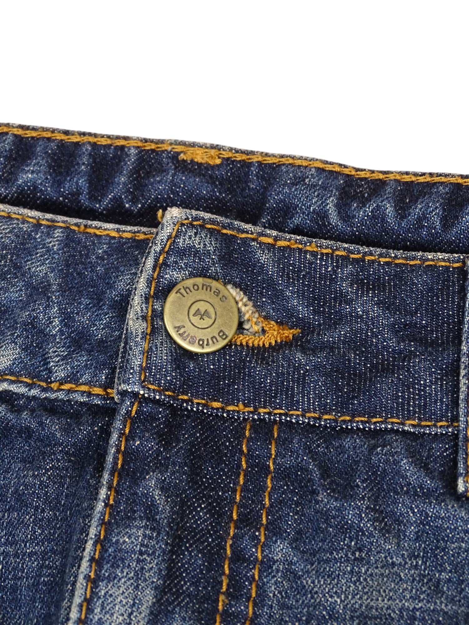 Mini-jupe Burberry en jean bleu, taille M femme. Coupe courte avec effet usé volontaire, détails effilochés sur les bords. Très bon état général.