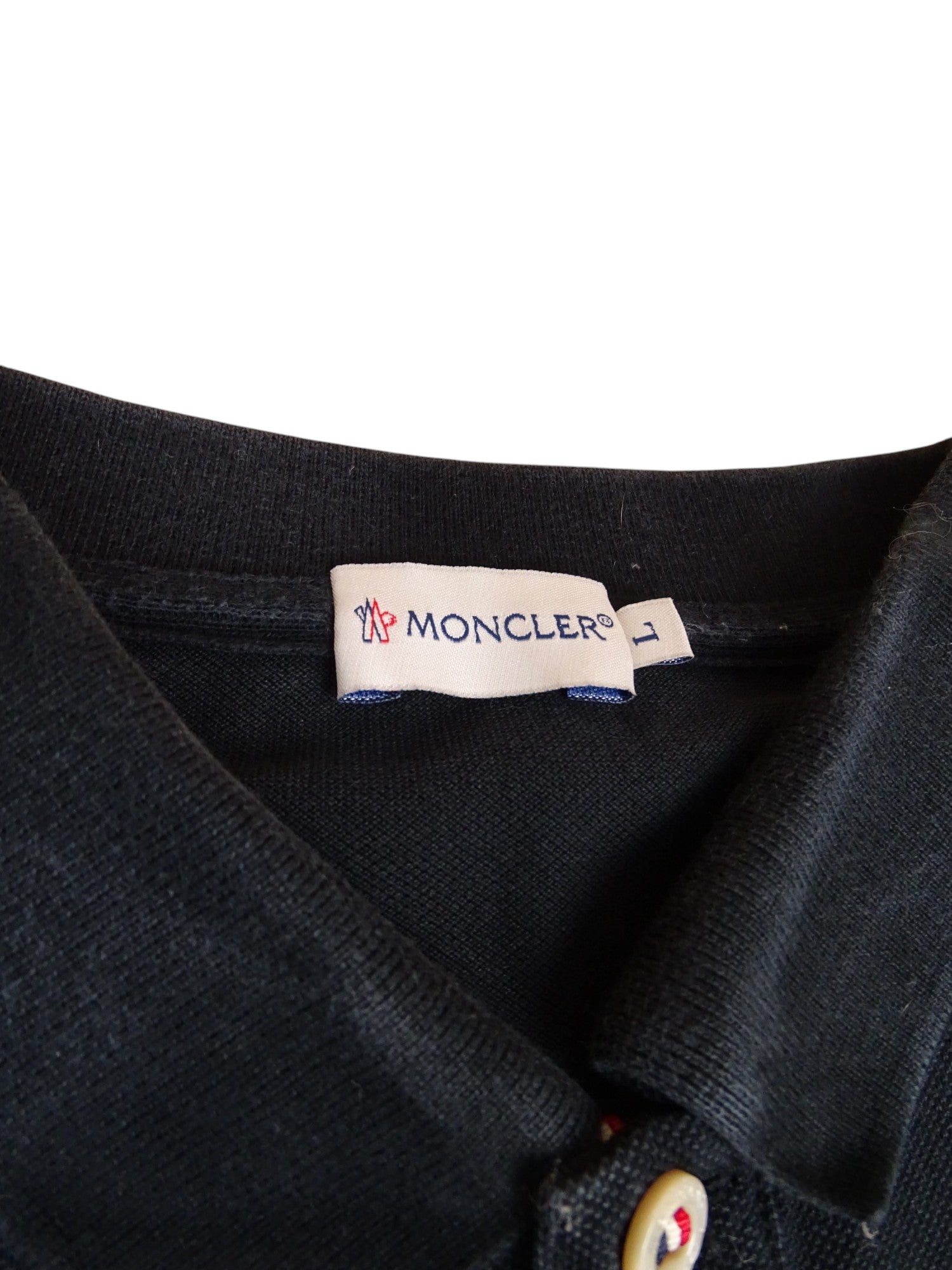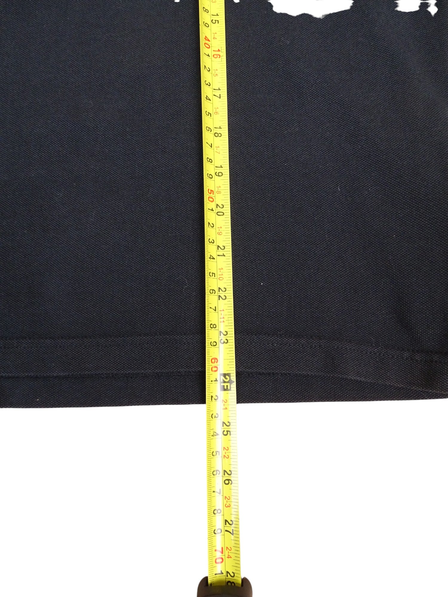 Condition de l'article : bon état. Le polo est en 100% coton, de couleur noire, taille comme un M. Il présente un léger délavage au niveau du col, mais reste globalement en bon état, sans trous ni taches.
