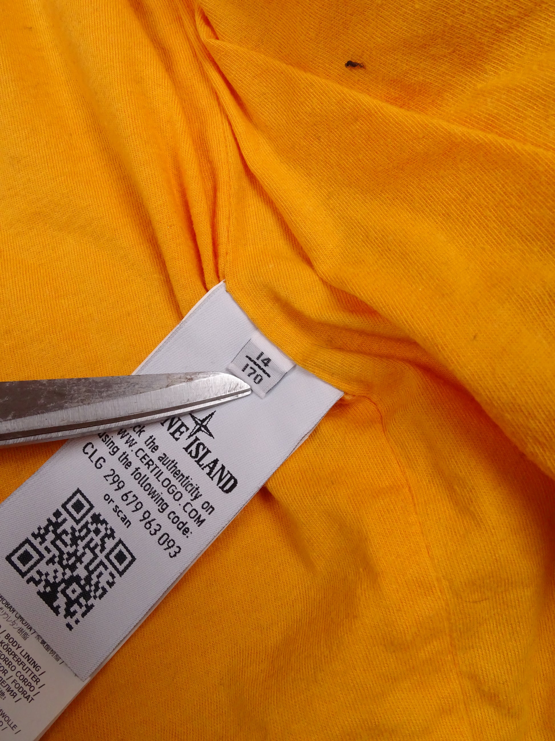 Mots-clés : veste imperméable, Stone Island, orange, junior, taille 14 ans, XS, imperméable, outdoor, pluie, automne, hiver, sportif.
