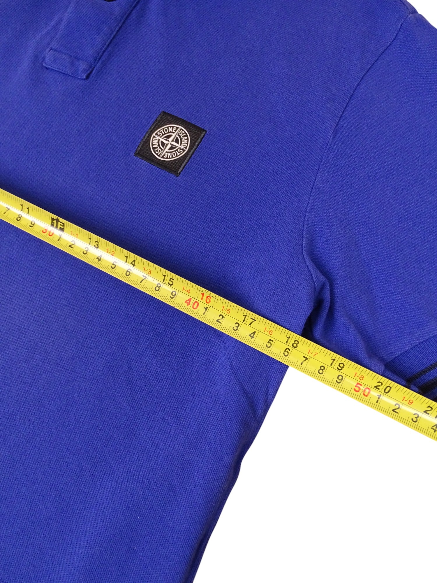 Polo Stone Island bleu en taille L Homme. Légèrement délavé mais reste en très bon état. Un basique intemporel au look streetwear affirmé.