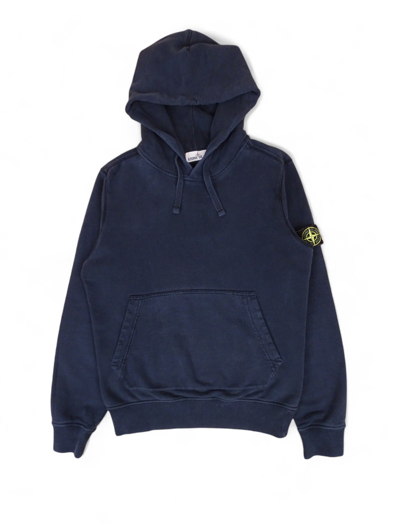 Pull à capuche Stone Island bleu marine en taille S Homme. Très bon état général. Il présente une minuscule éraflure au bout d’une manche, sans trou ni accroc. Pièce authentique, confortable et stylée.