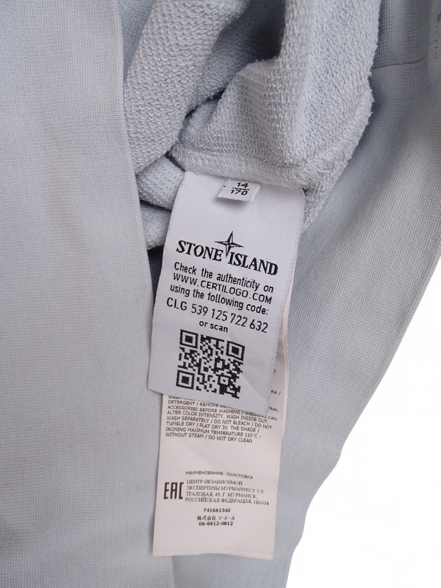 Pull Stone Island bleu clair, initialement en taille 14 ans, mais il correspond à une taille S Homme. Il est en très bon état et ne présente aucun défaut.