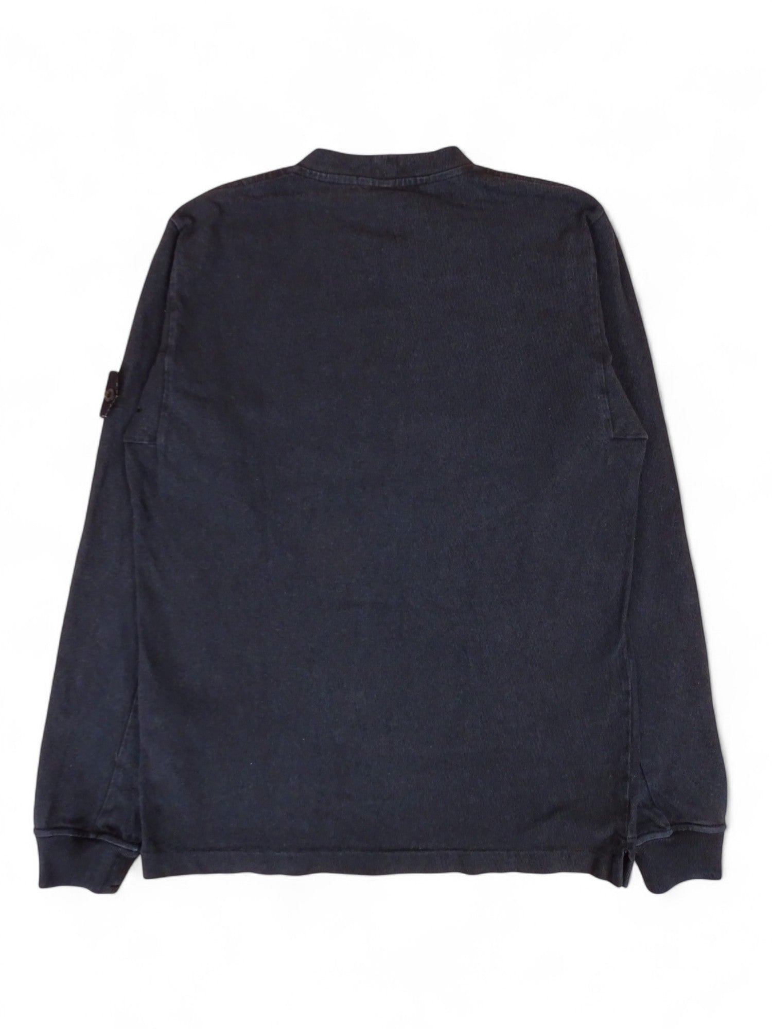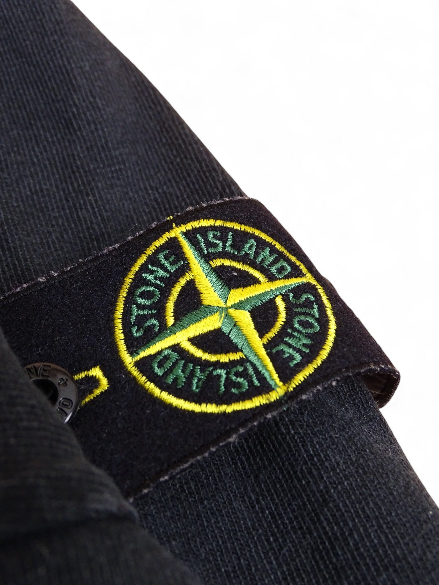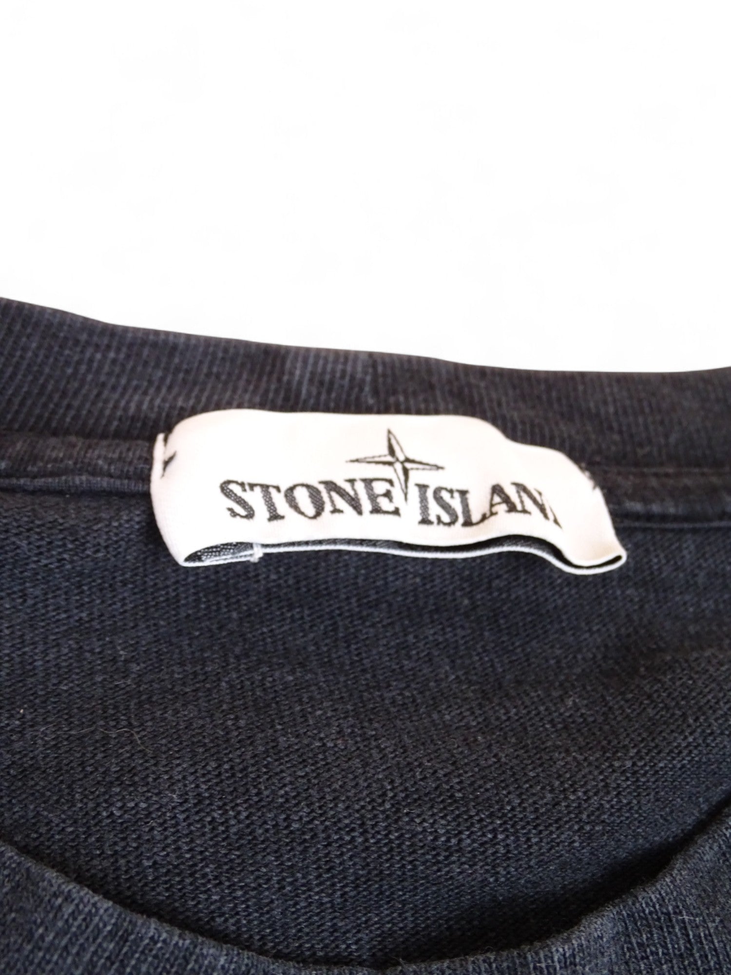 Pull Stone Island noir en taille M Homme. Le pull est légèrement délavé mais reste en très bon état, sans défaut structurel. Un essentiel intemporel.