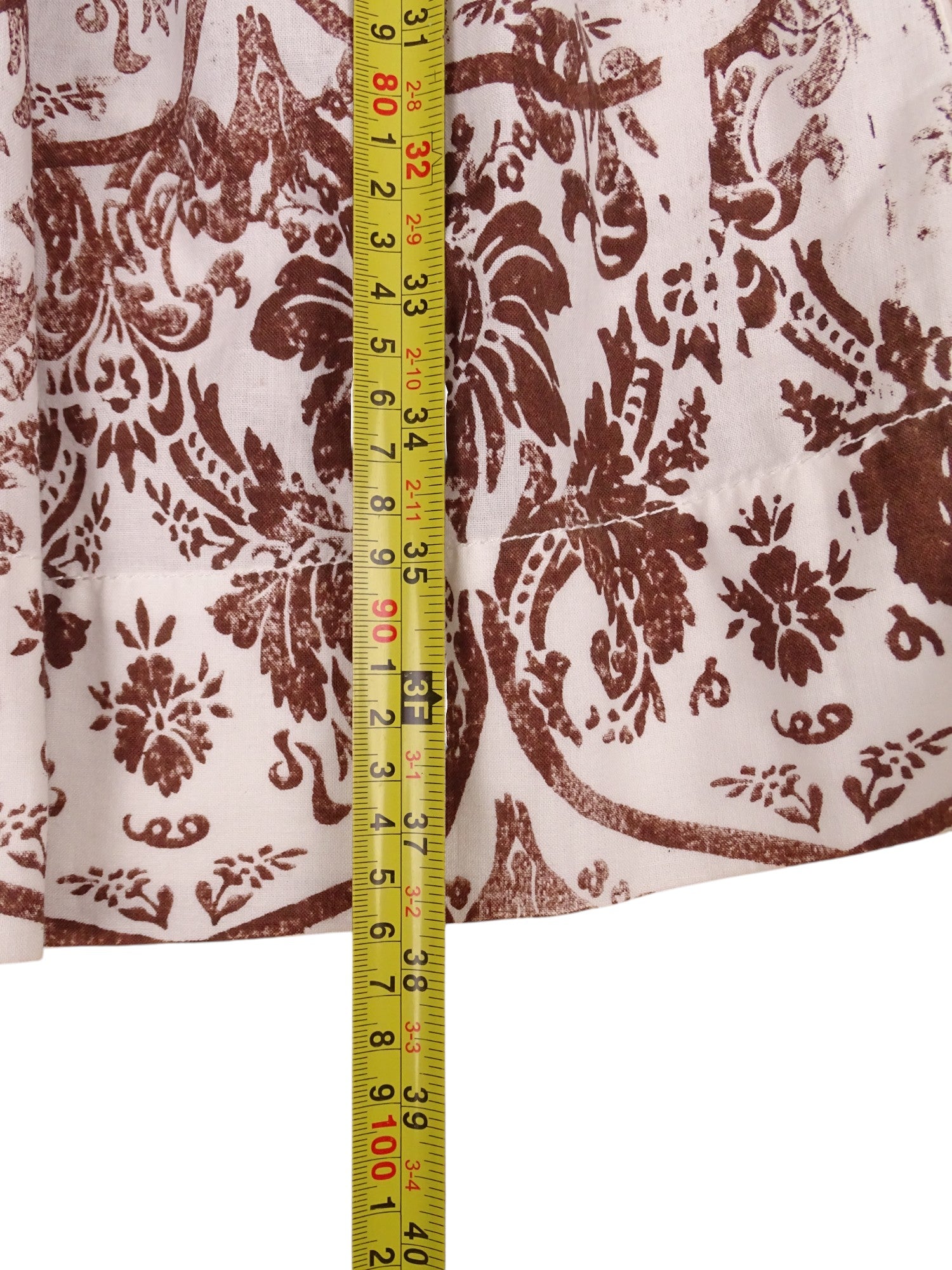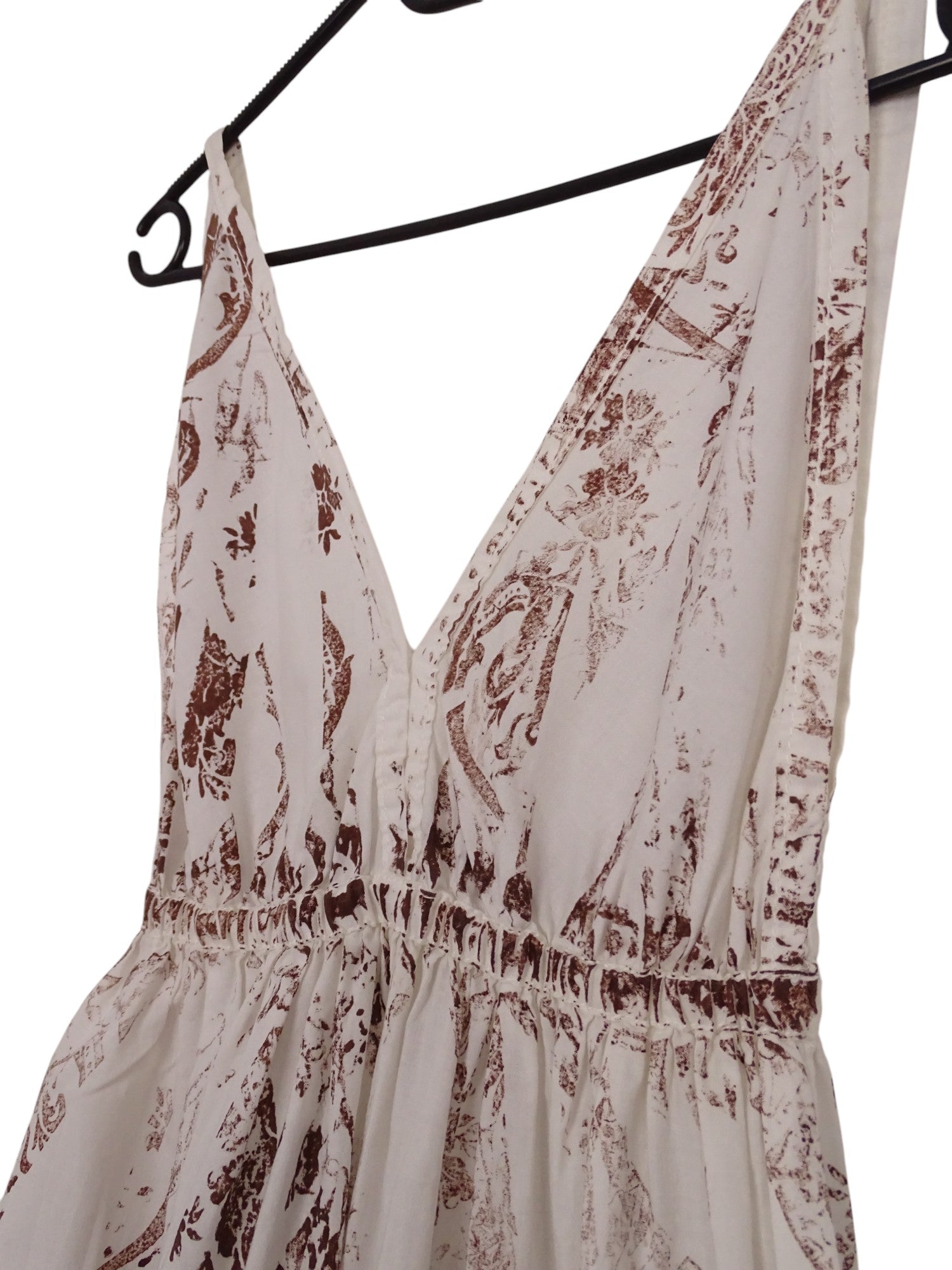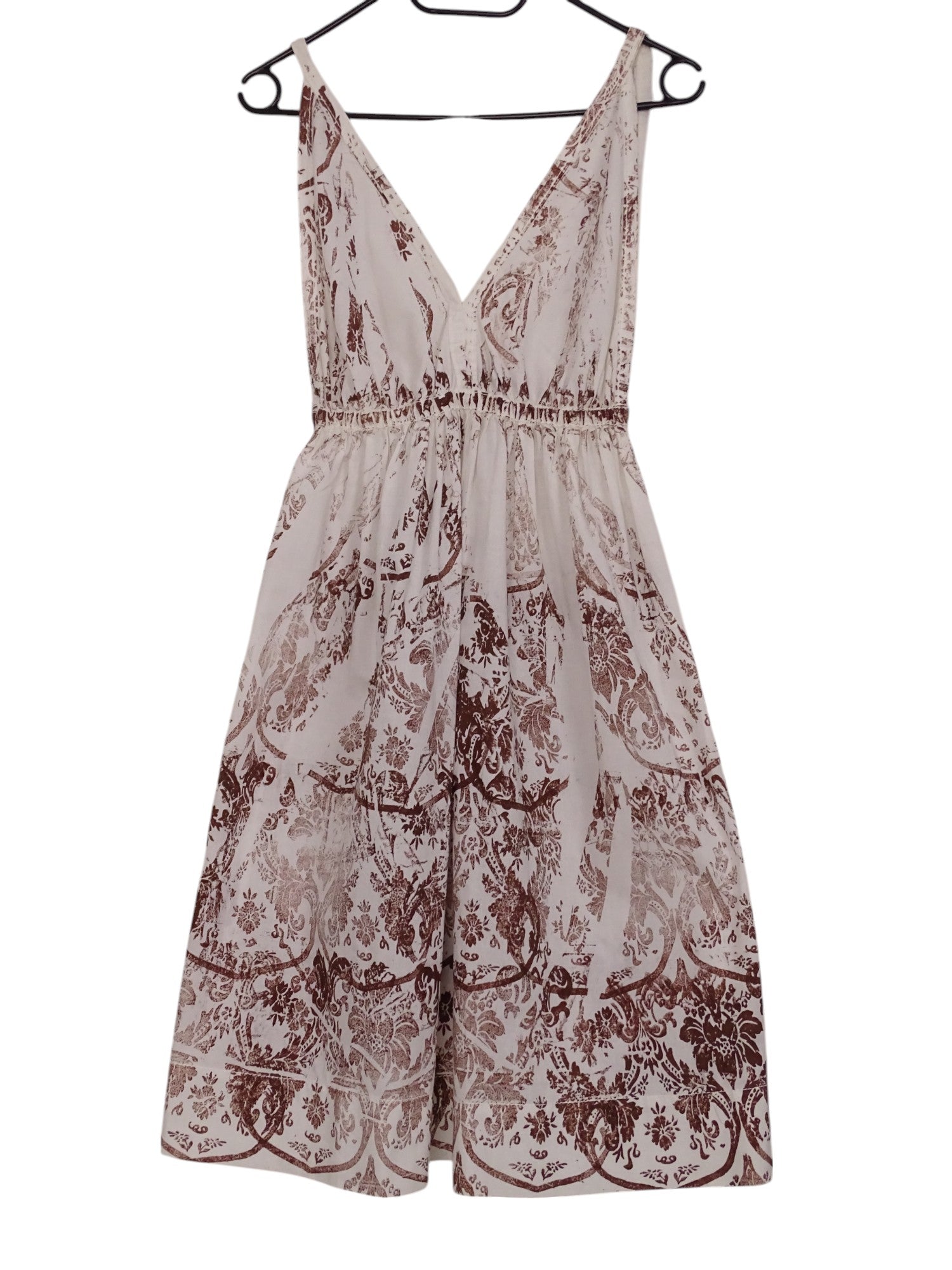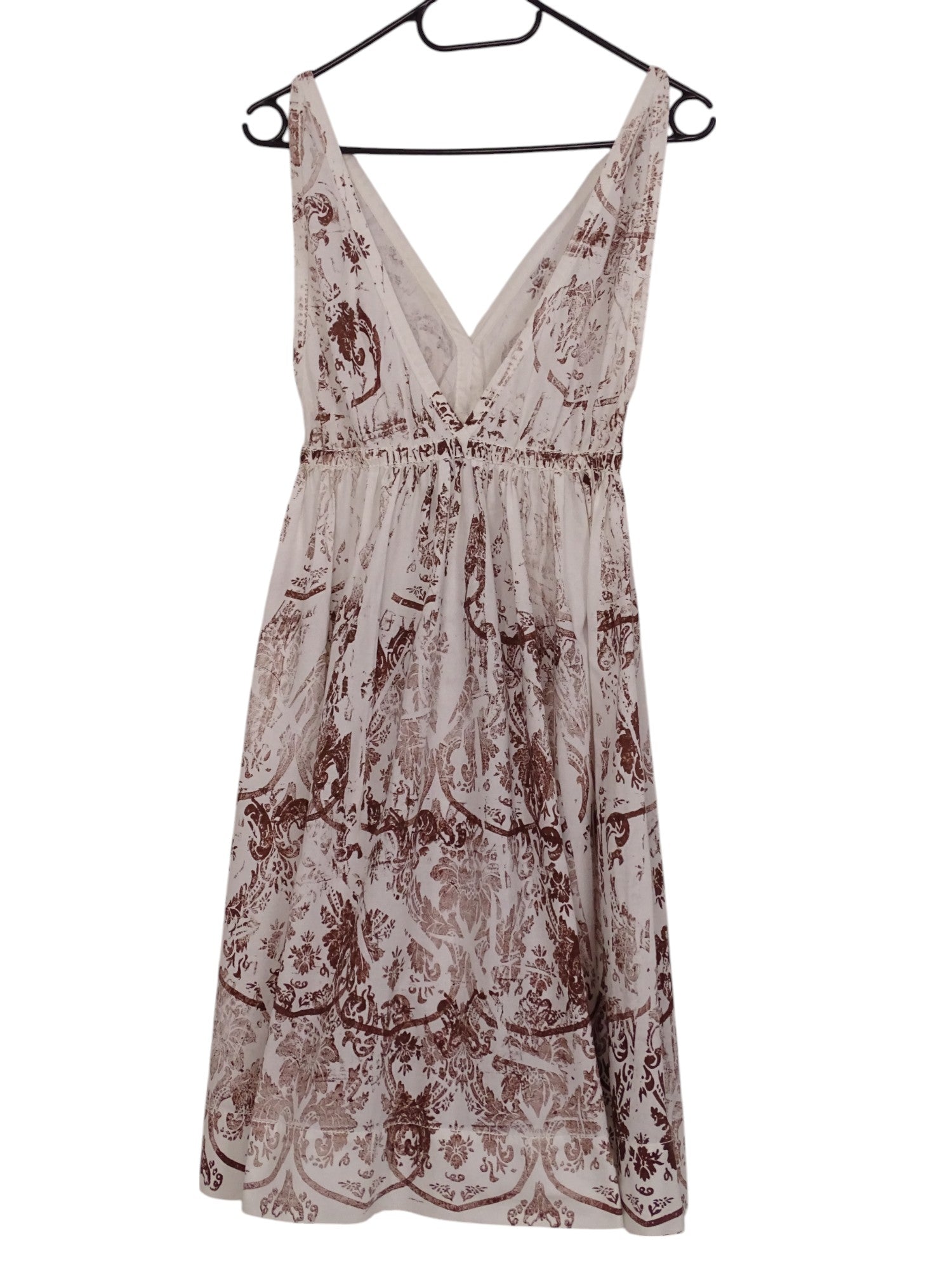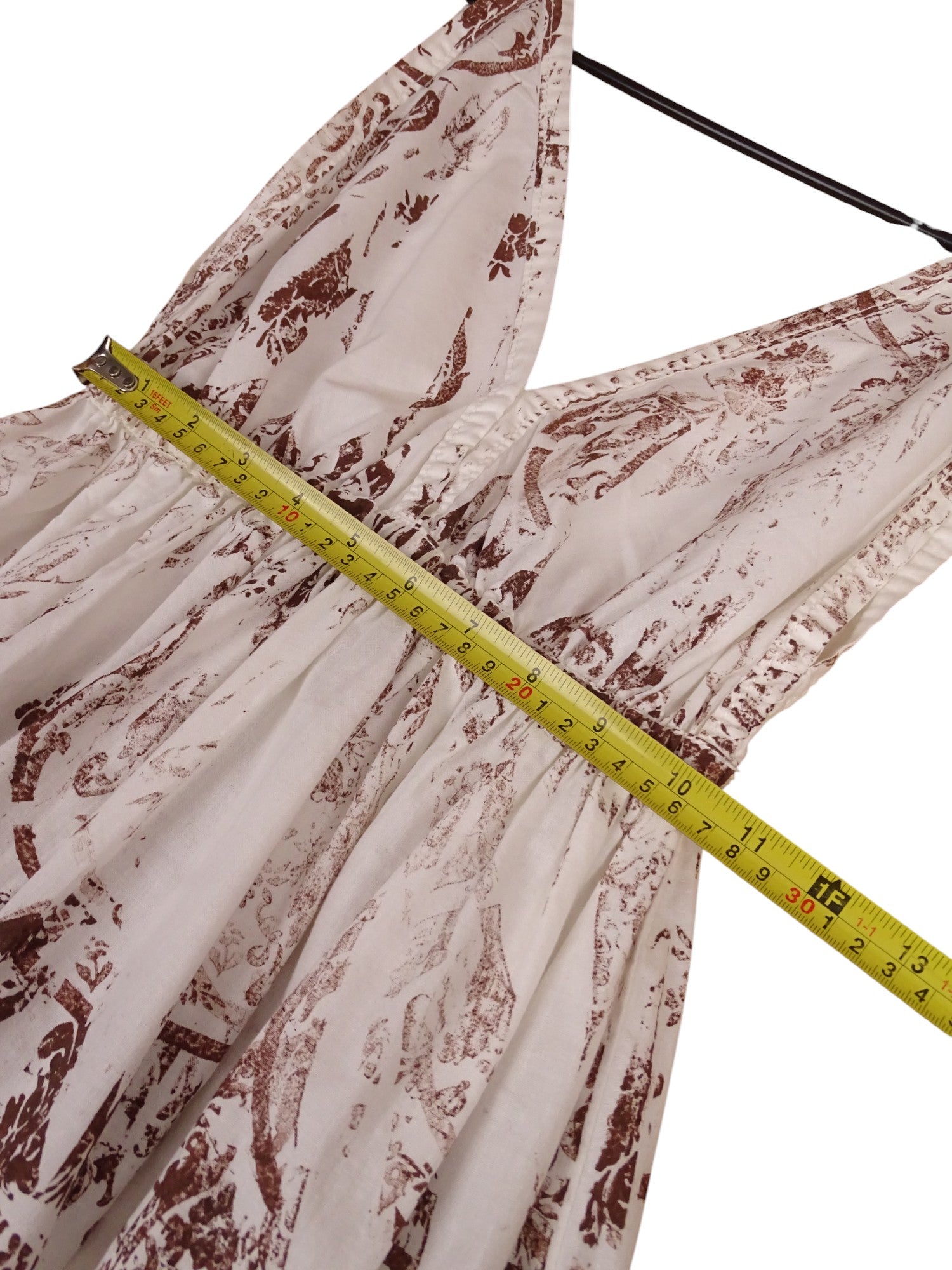 Robe d’été vintage Miu Miu, blanche avec un motif batik marron. Taille XS (34 Femme). 100 % coton. Très bon état, aucun défaut.