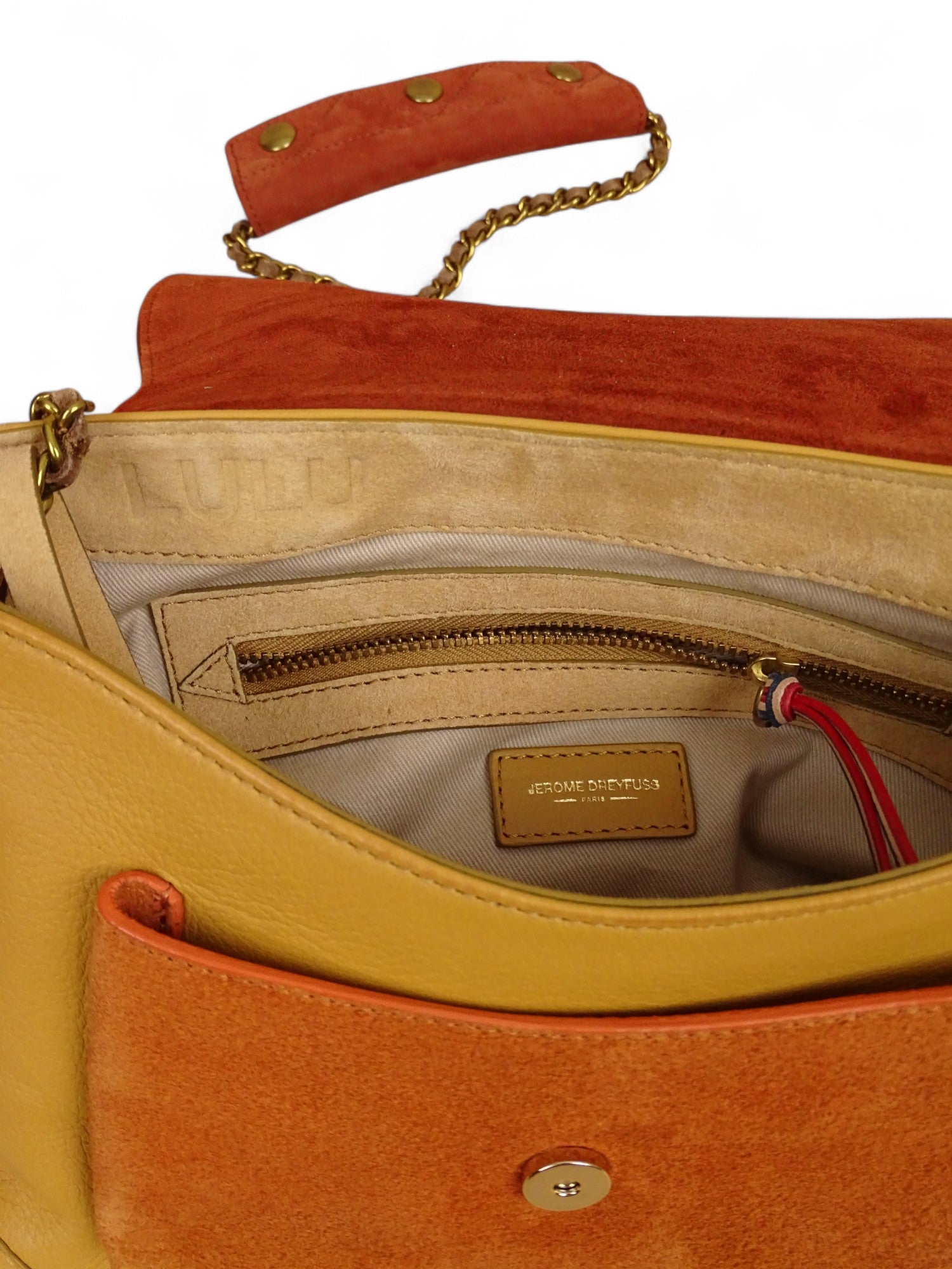 Sac Jérôme Dreyfuss Lulu M Jaune Terra cota Cuir Daim