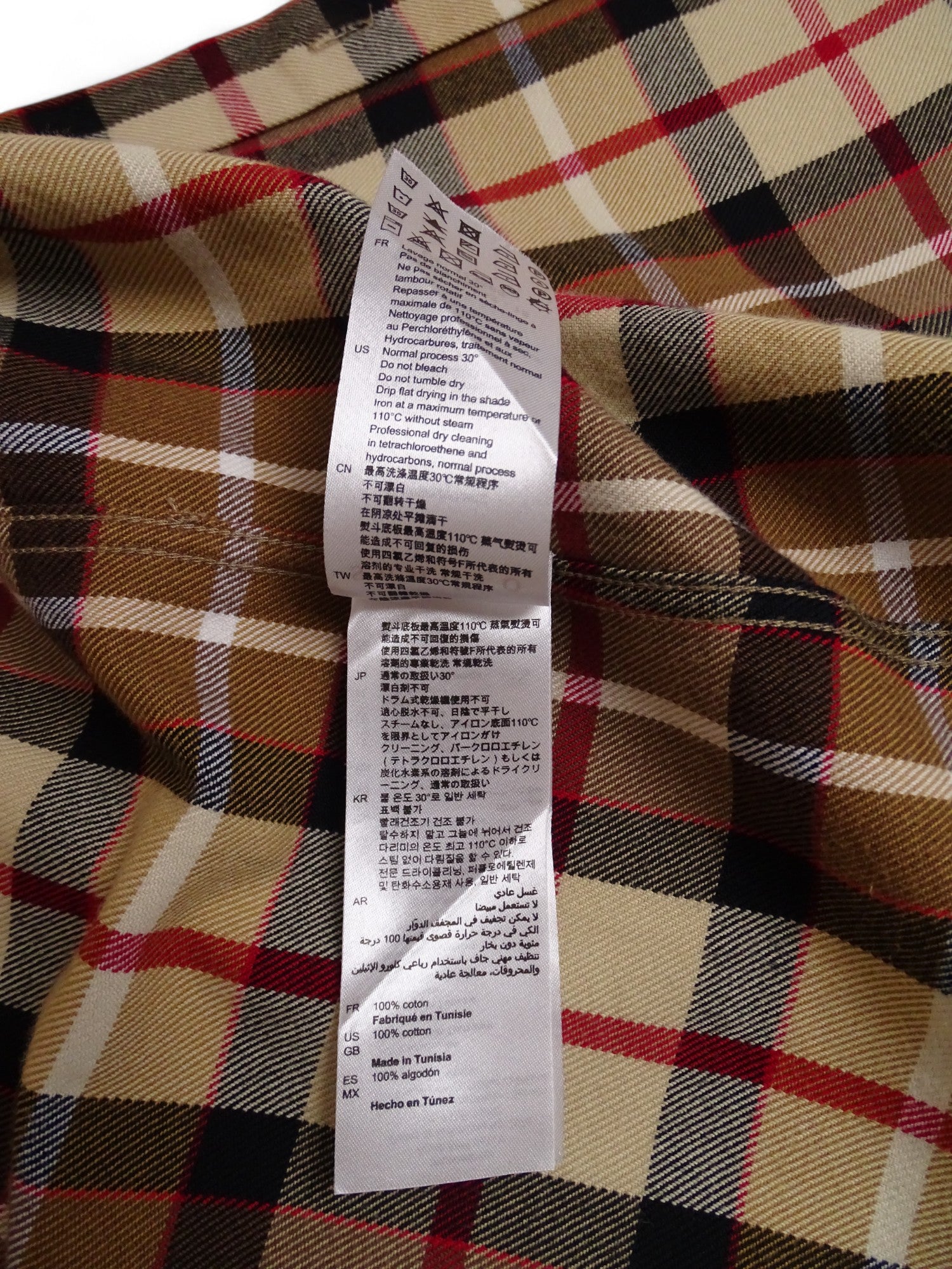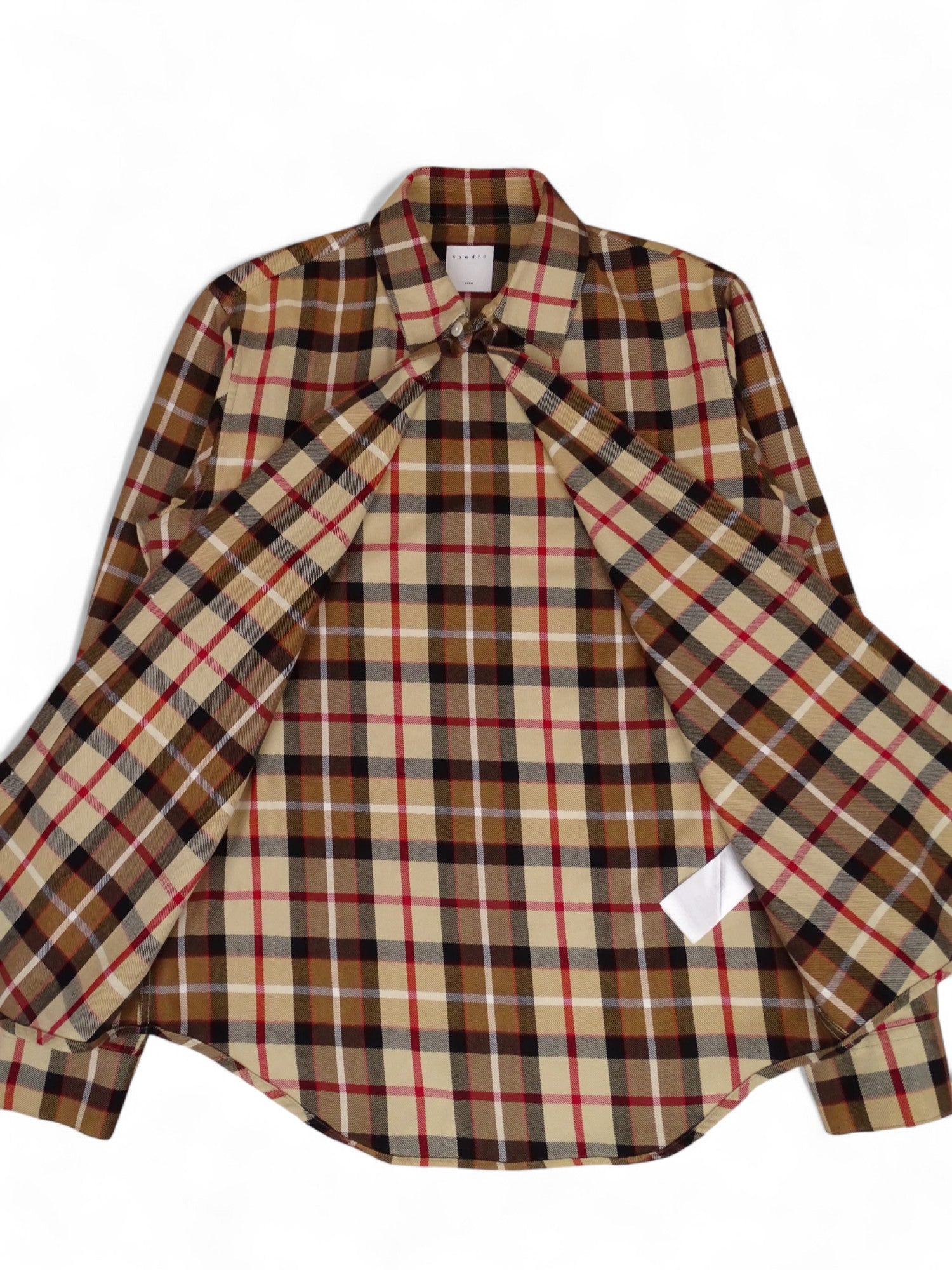 Chemise Sandro pour homme en taille XS, couleur beige à motifs tartan écossais. 100% Coton. Coupe épaisse avec une excellente tenue. Article en très bon état, aucun défaut à signaler. Voir photos pour les mesures exactes.