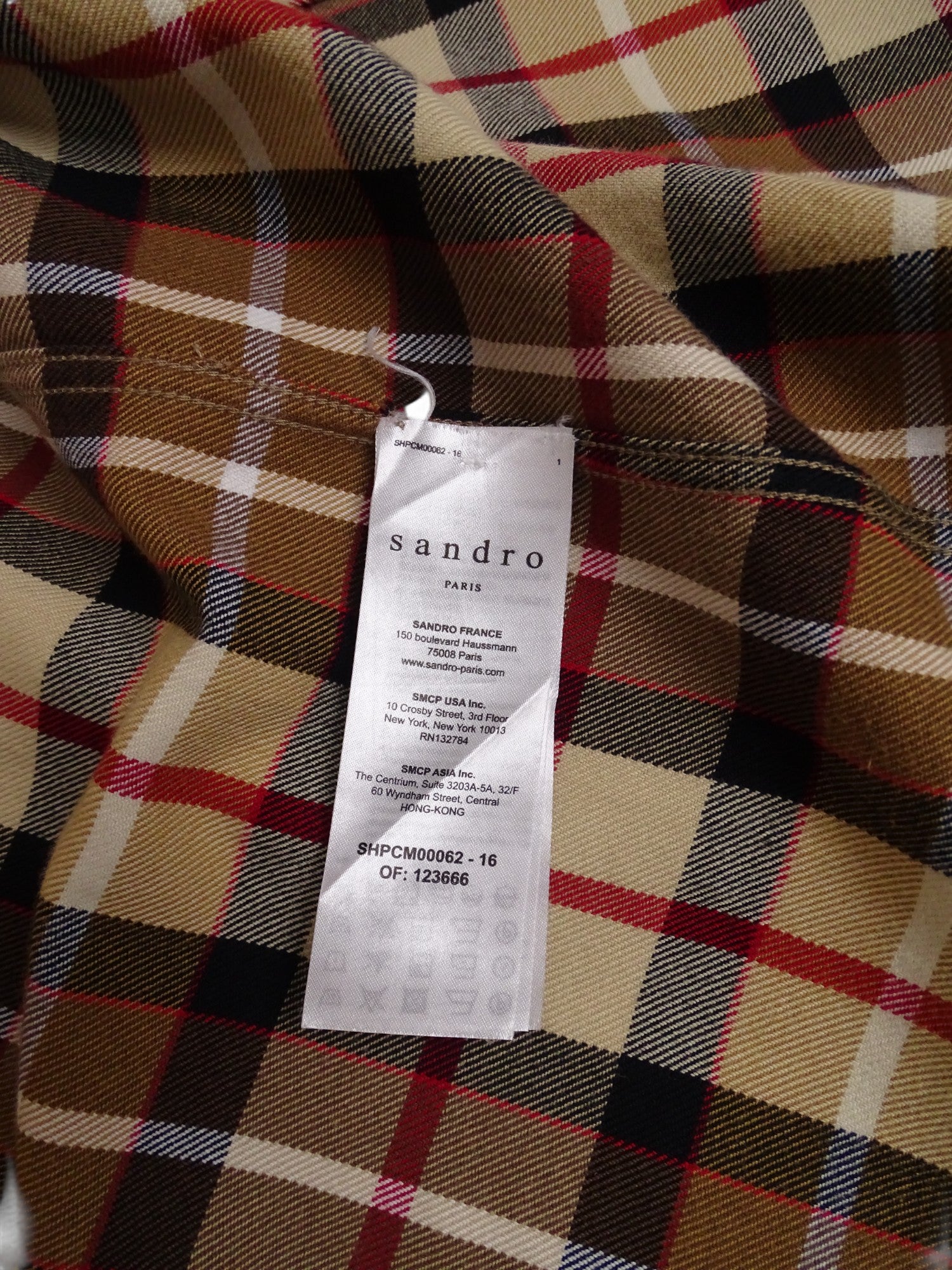 Sandro Chemise Tartan Écossais Beige Épais XS Homme