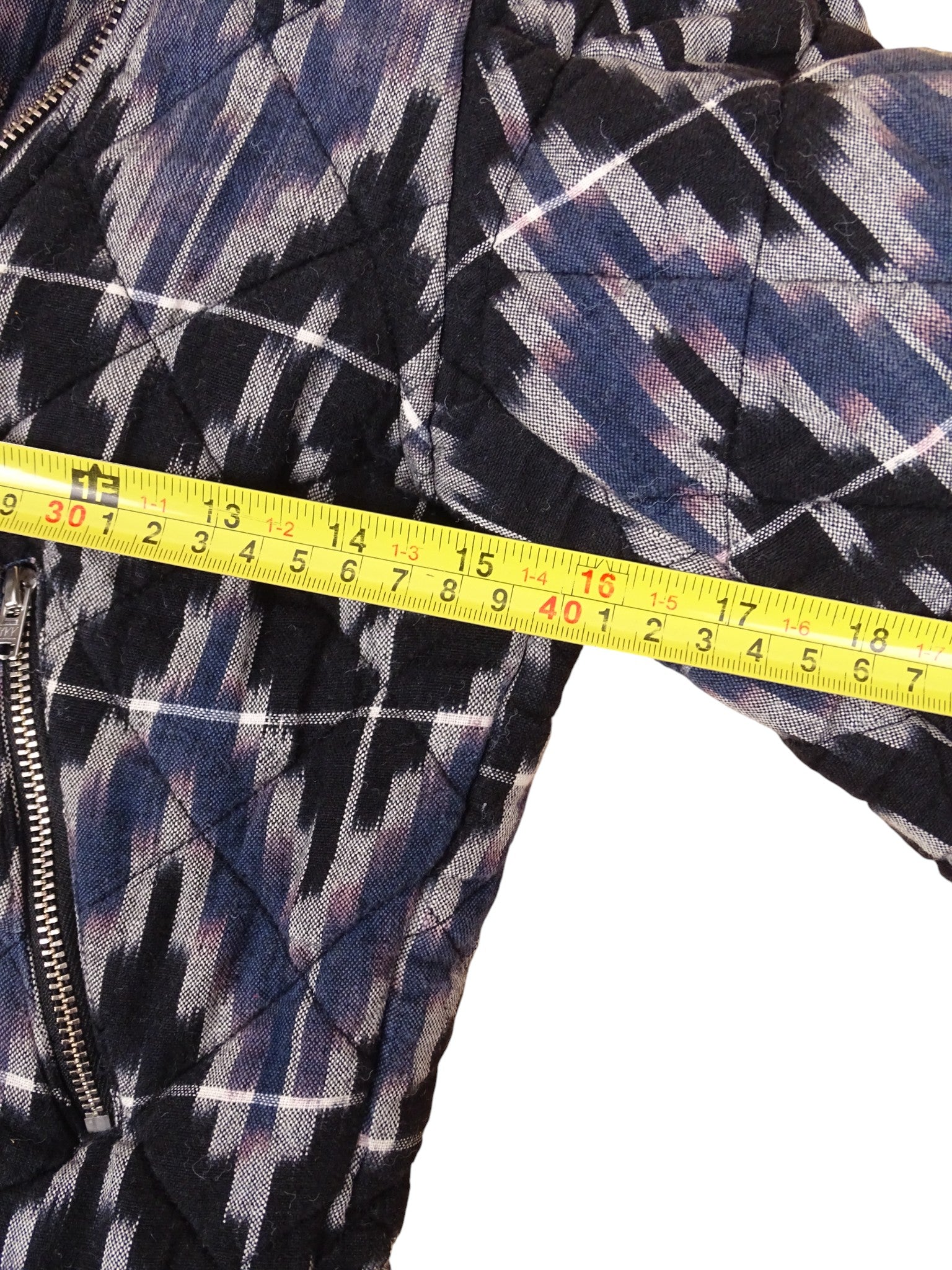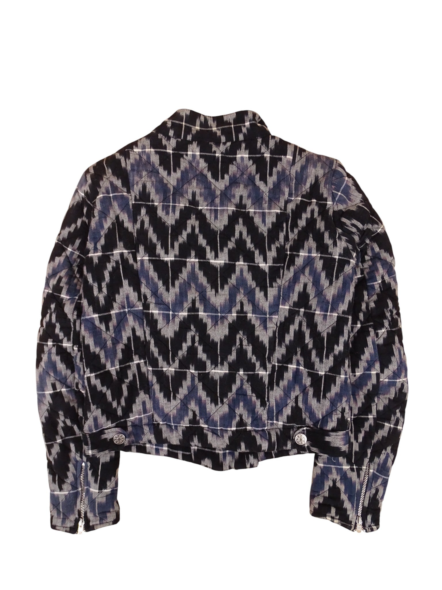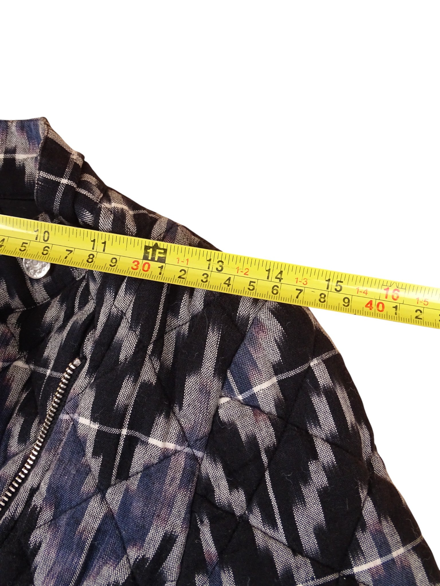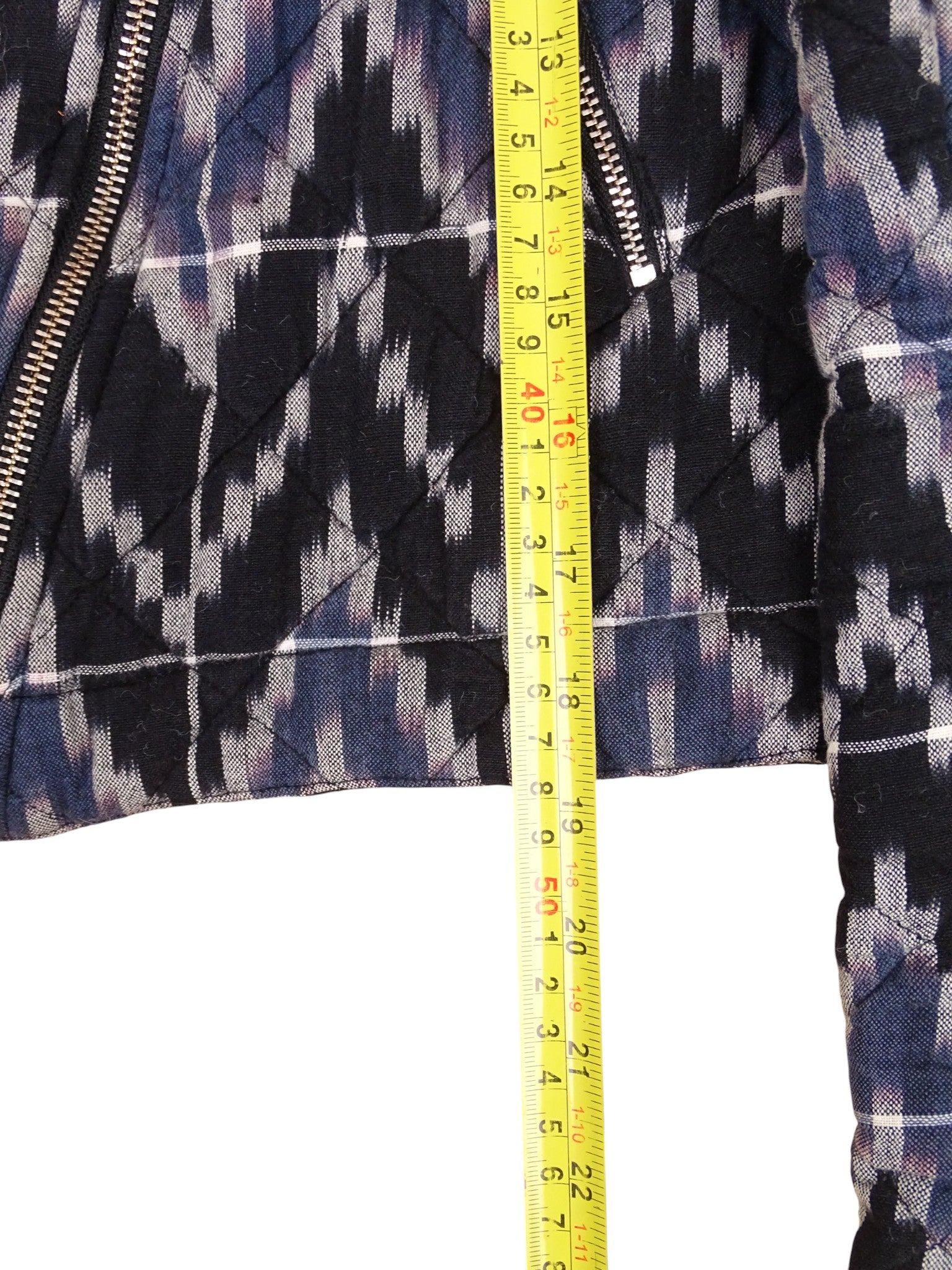 Veste Soeur en coton zippée, marine et blanche à motifs, taille S femme. Bon état général, quelques bouloches (voir photos).
