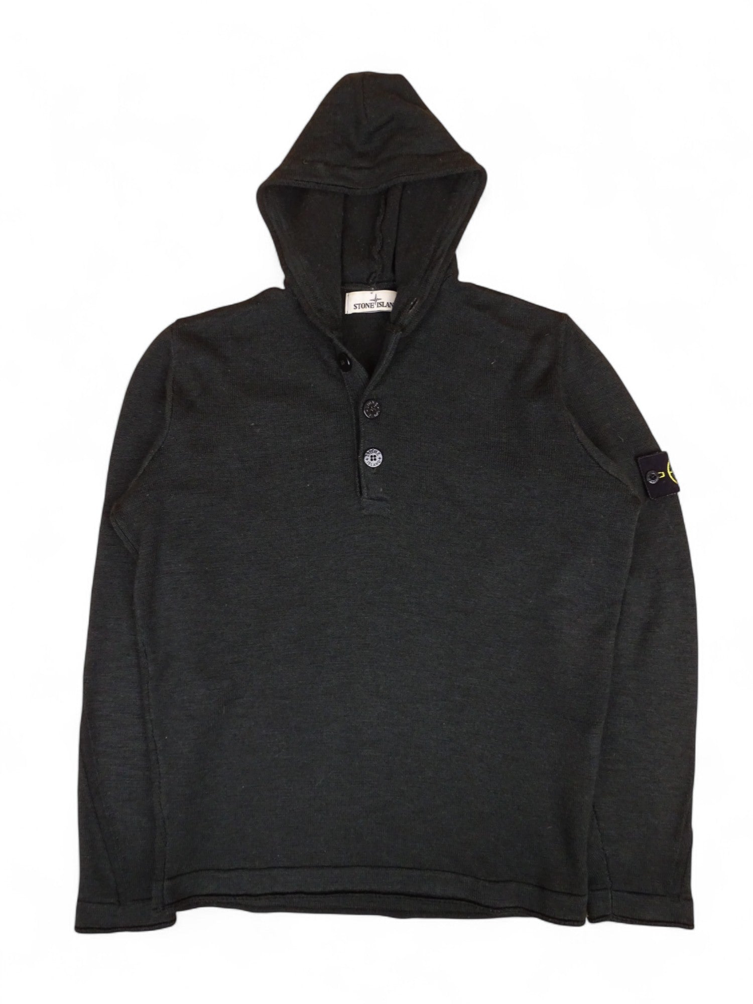 Stone Island L 100% Laine Pull Capuche Half Noir