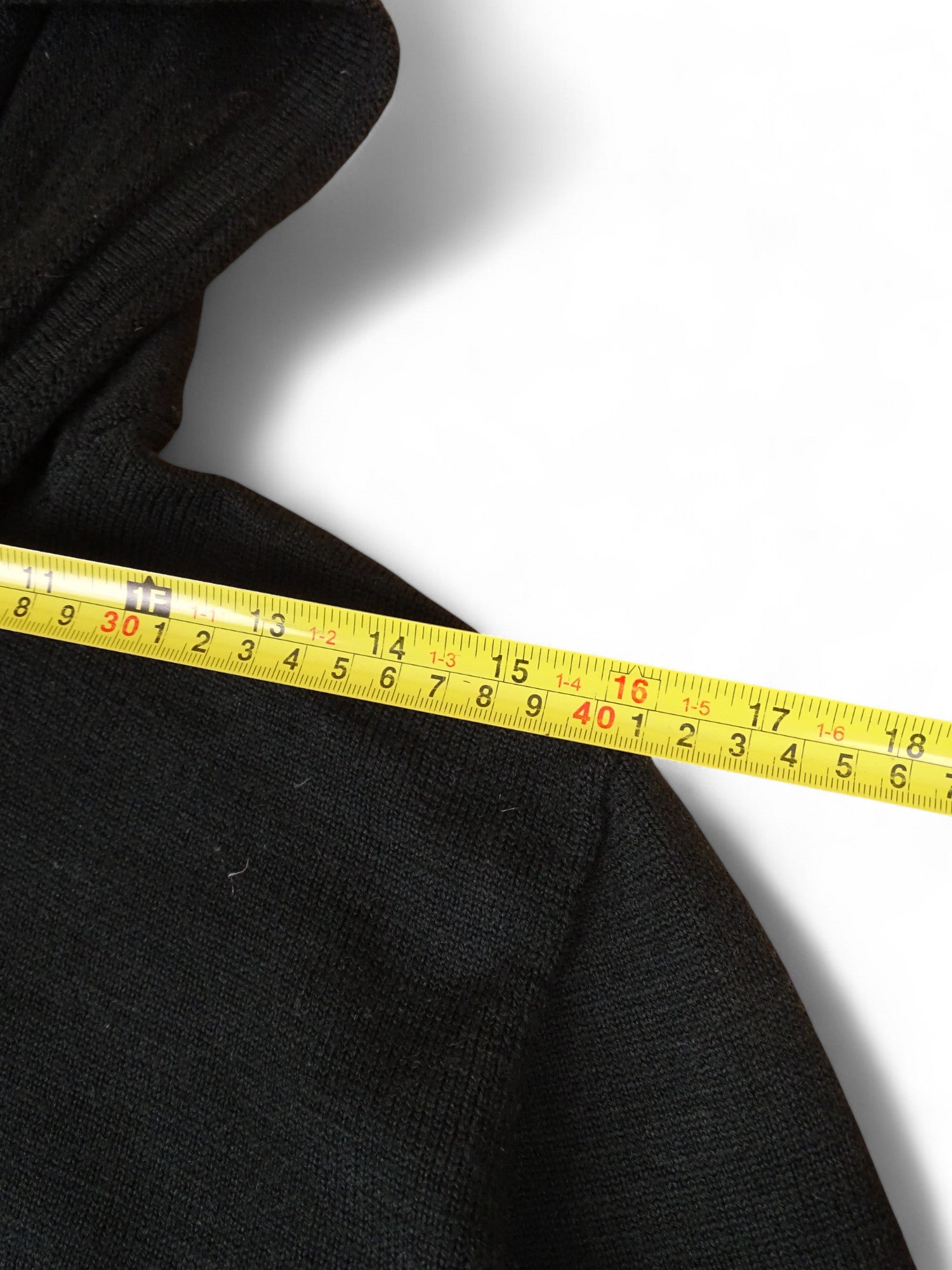 Pull à capuche Stone Island half pour homme, noir, taille L. Laine, badge emblématique sur la manche. Très bon état sans défaut (voir photos). Mesures détaillées disponibles en images.