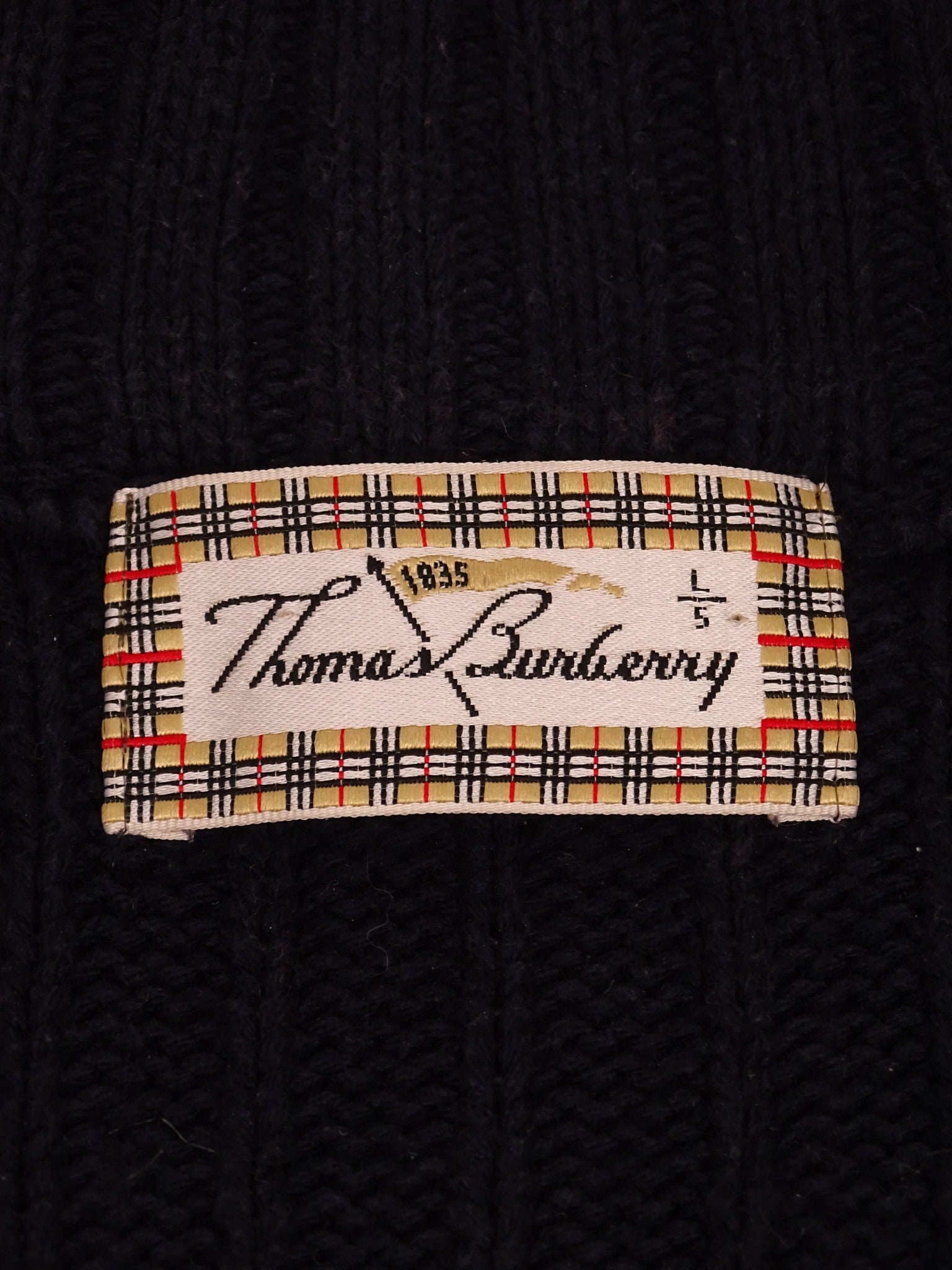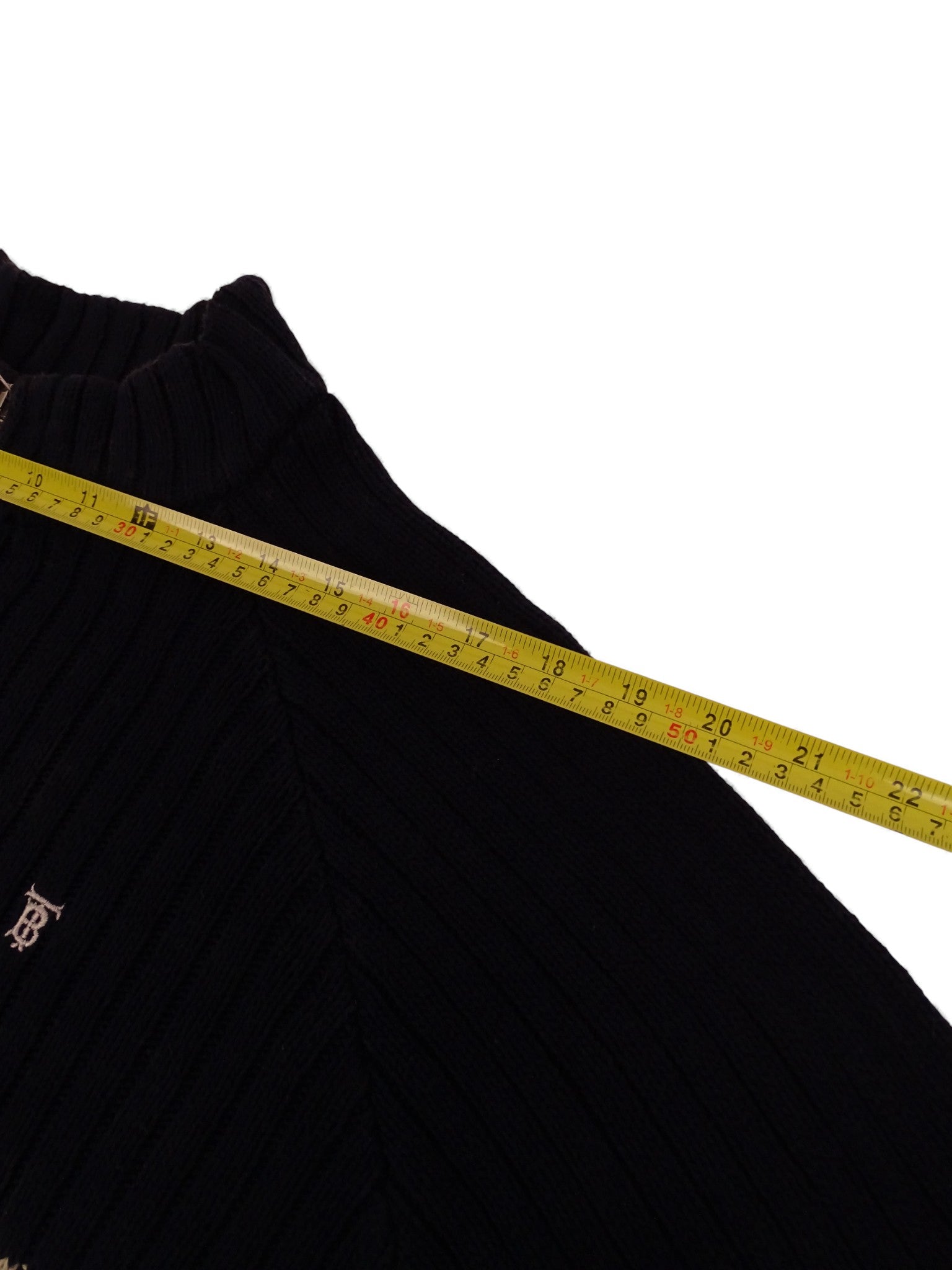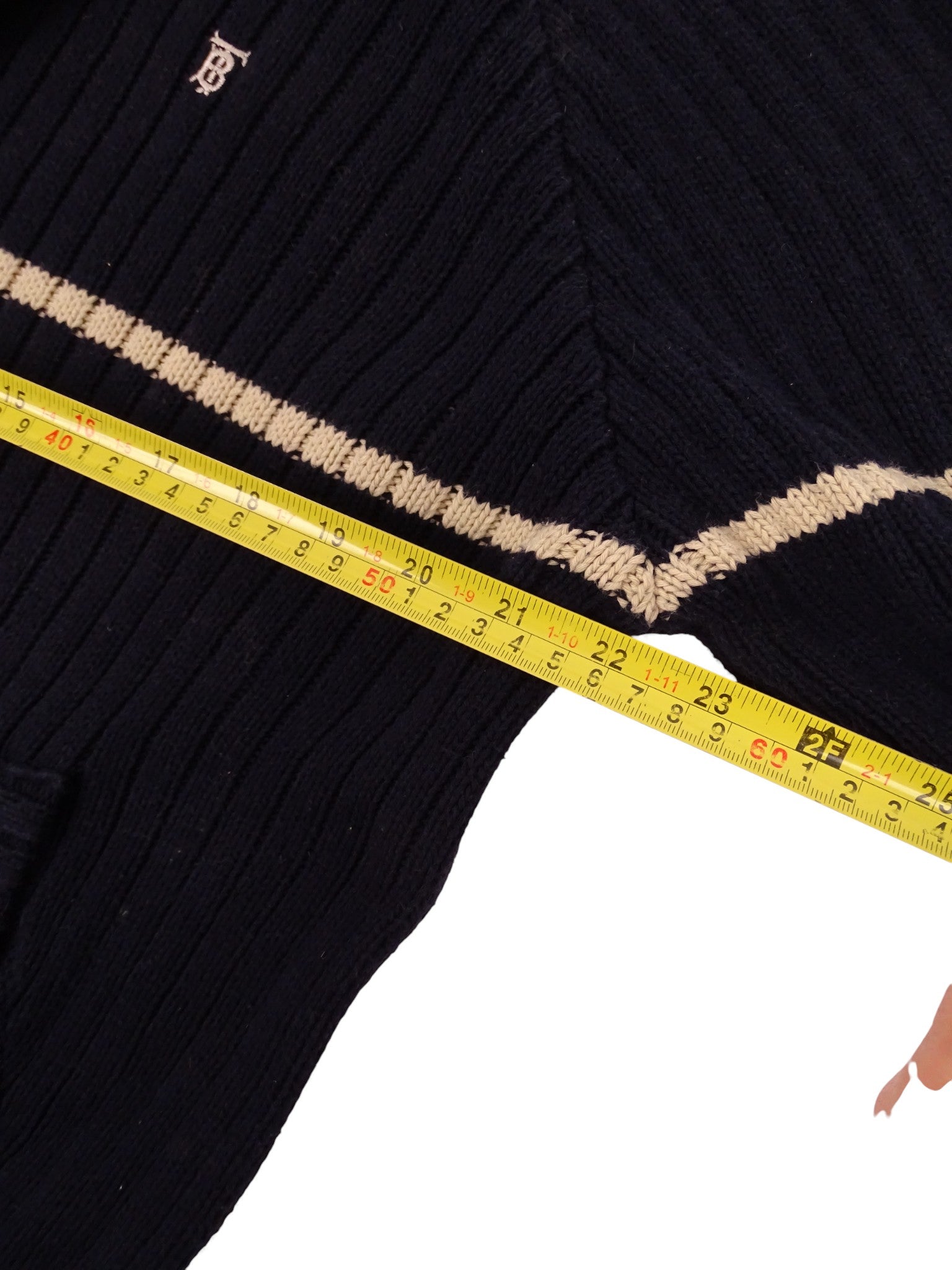 Sweat / pull zippé Burberry bleu marine, 60 % coton, full zip, taille L homme. Bon état général ; le bout des manches est légèrement usé mais reste propre (voir photos).