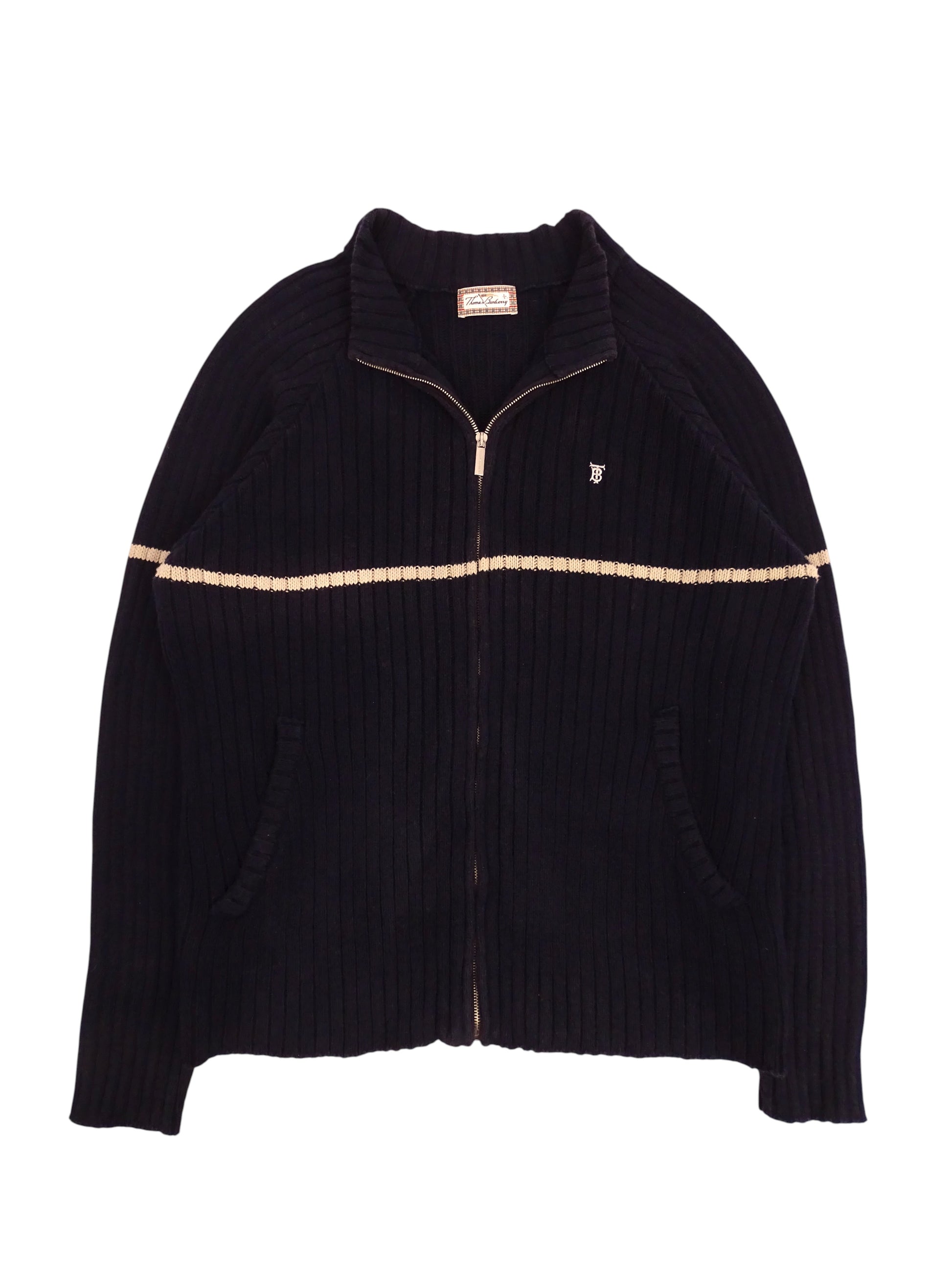 Burberry Sweat Zippé Bleu Marine 60% Coton Full Zip L Homme