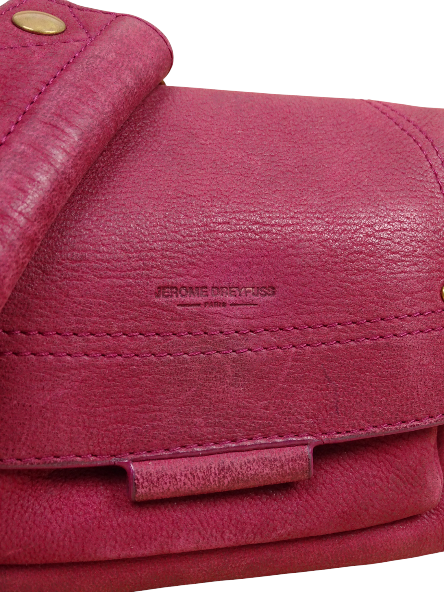 Sac bandoulière Jérôme Dreyfuss modèle "Lulu" taille S, en cuir et daim rose. Quelques signes d’usure dessous et sur le devant (voir photos).