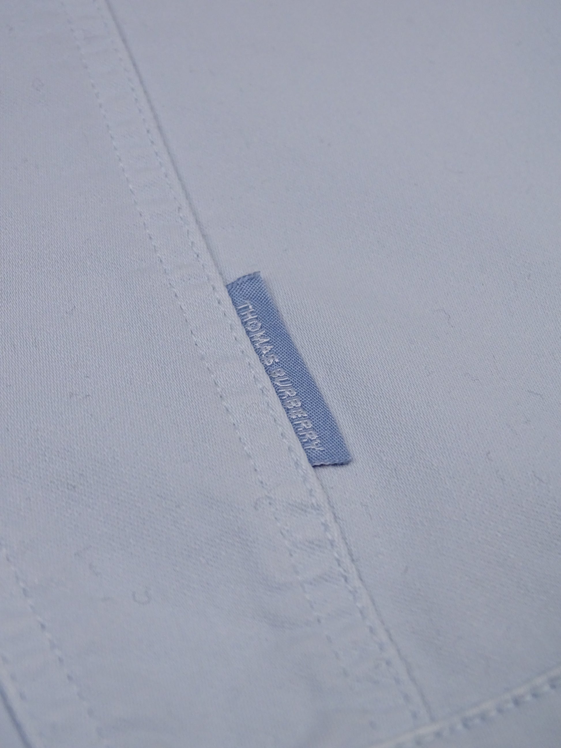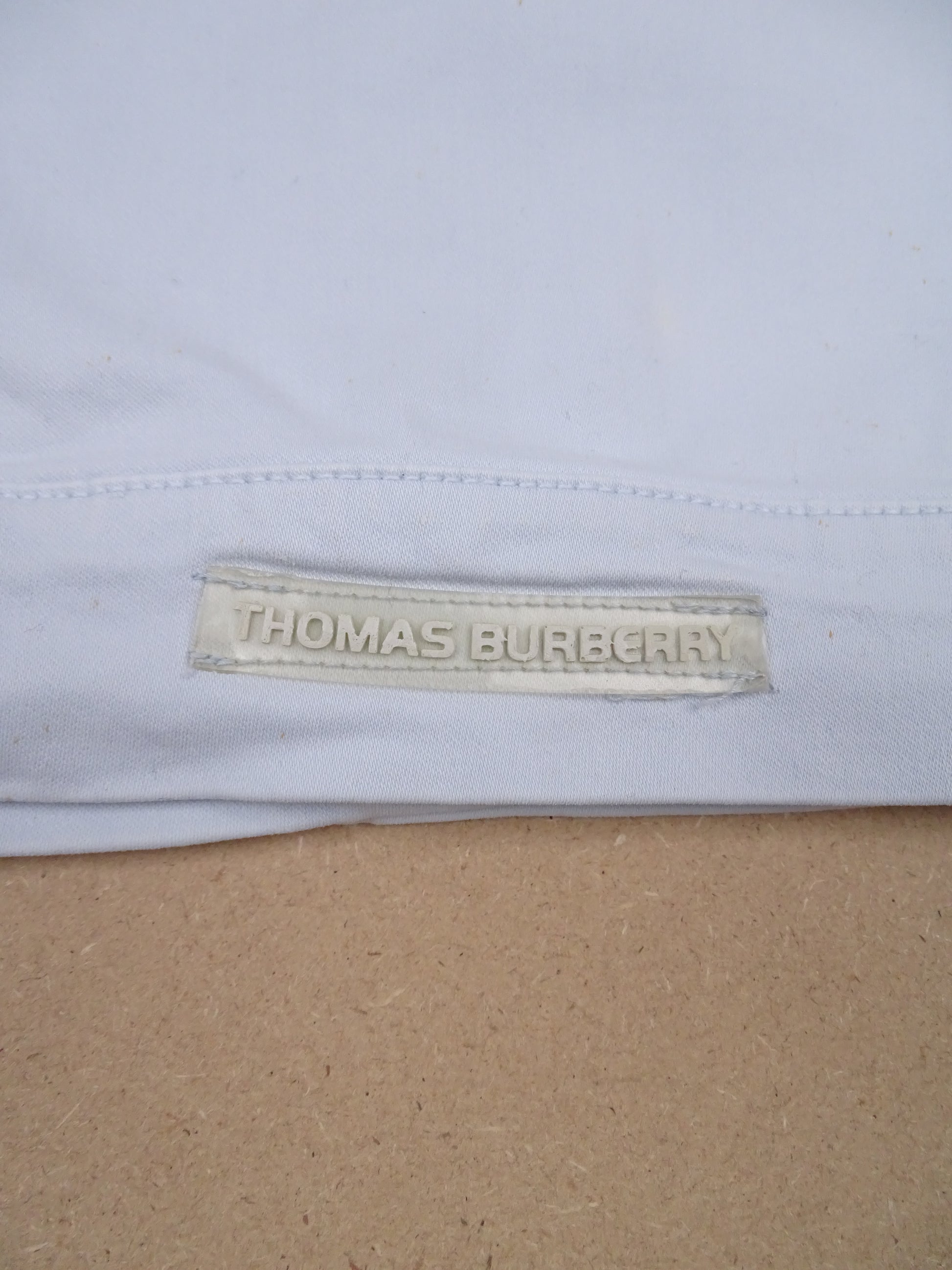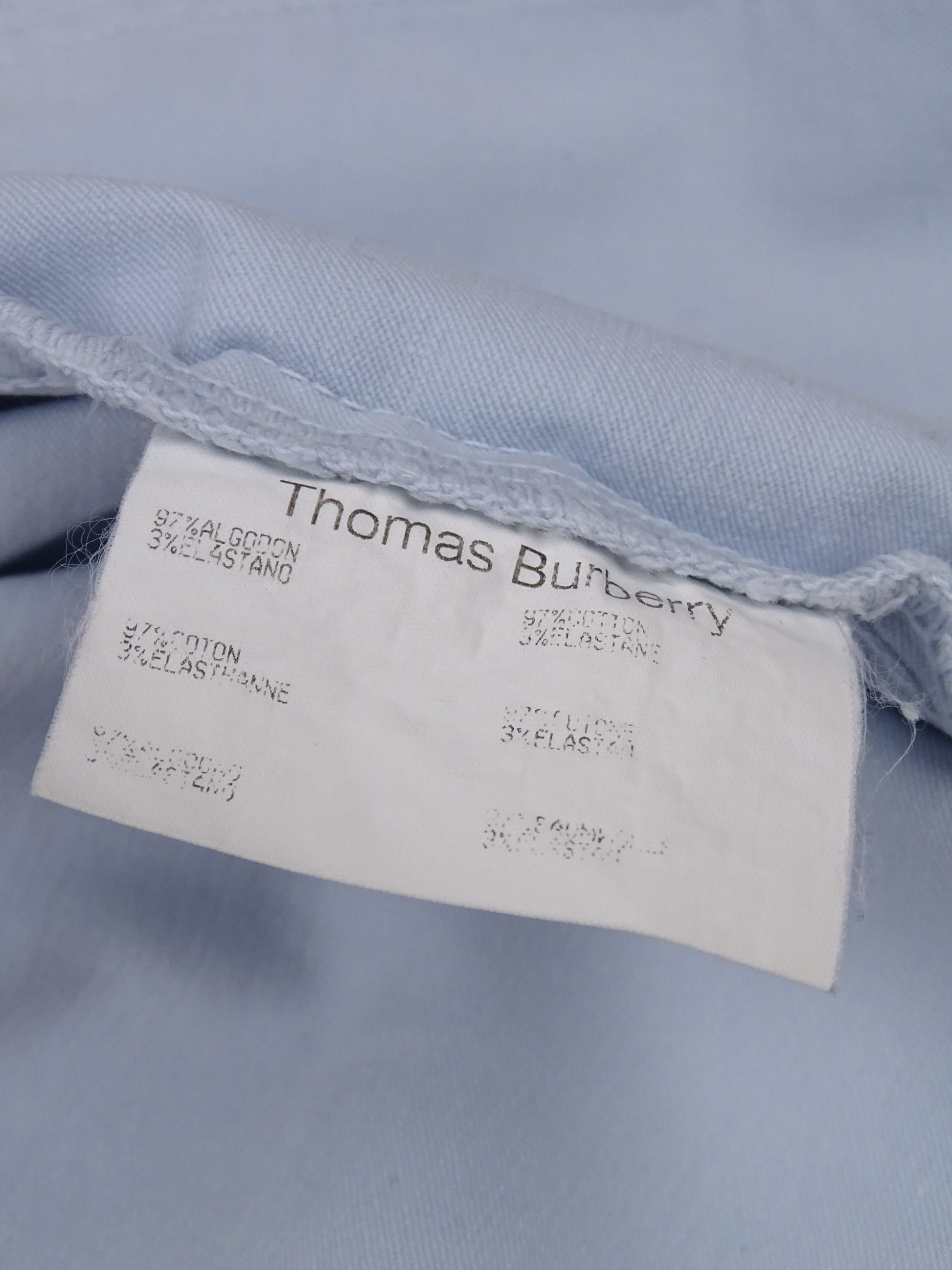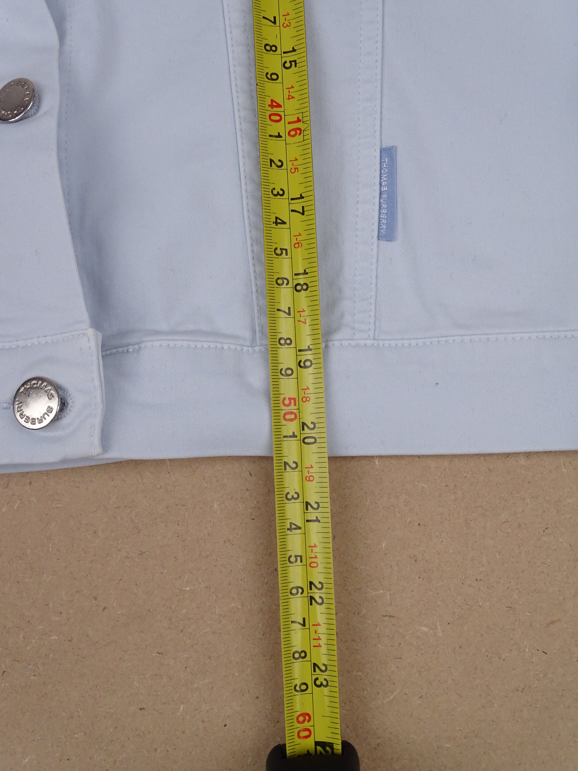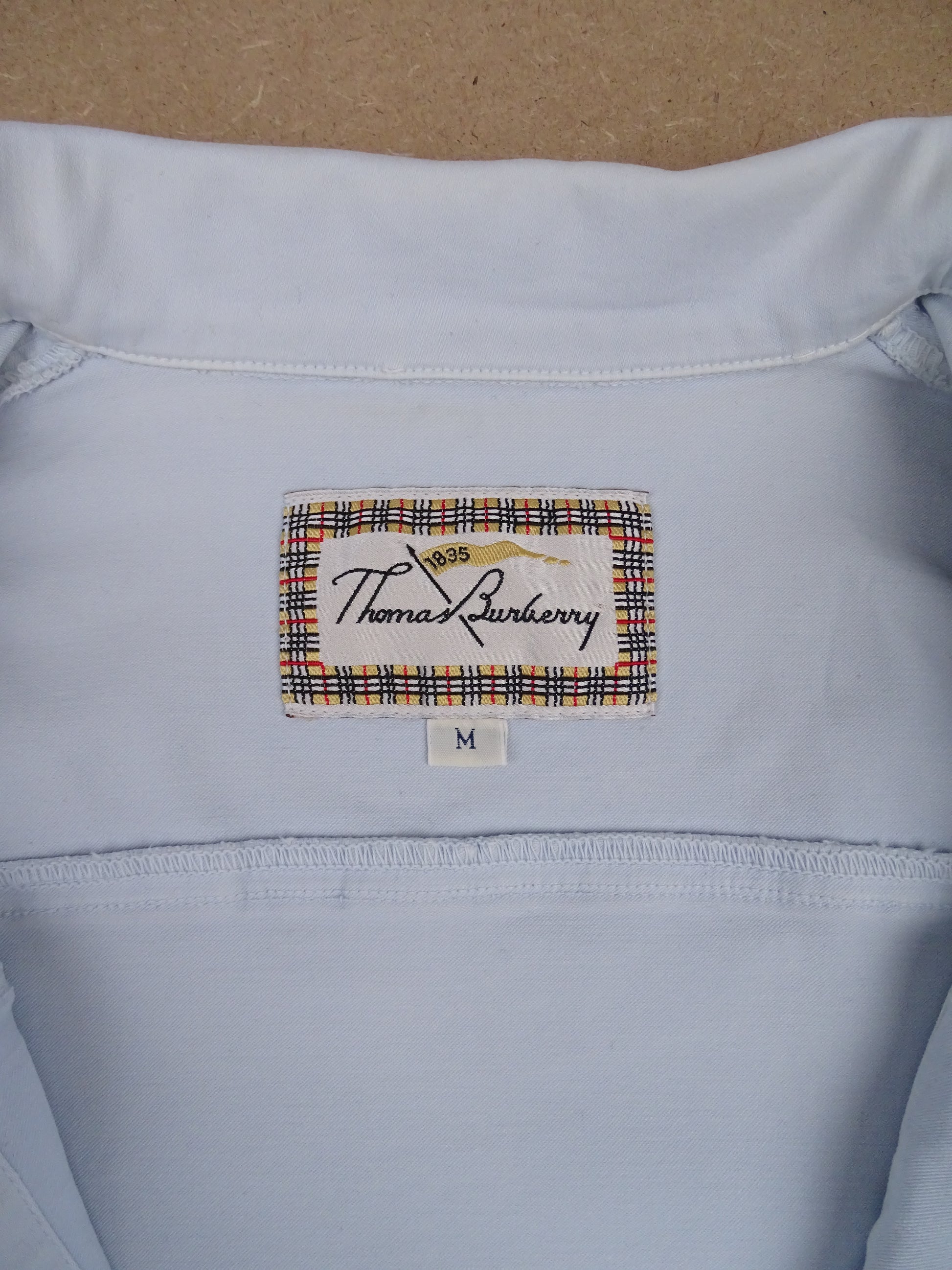 Veste Burberry en coton, taille M femme, de couleur bleu clair. Bon état général, quelques petites traces discrètes à l’arrière visibles sur les photos. Coupe chic et décontractée. Condition de l’article : Bon état, petites traces à l’arrière.