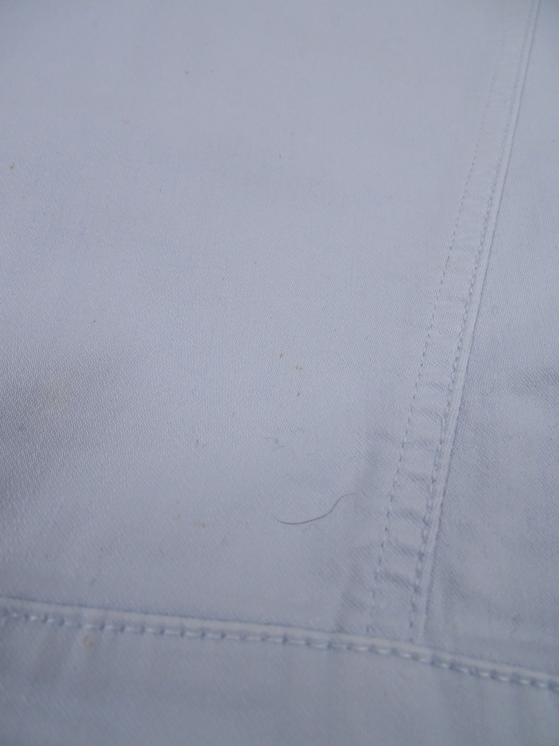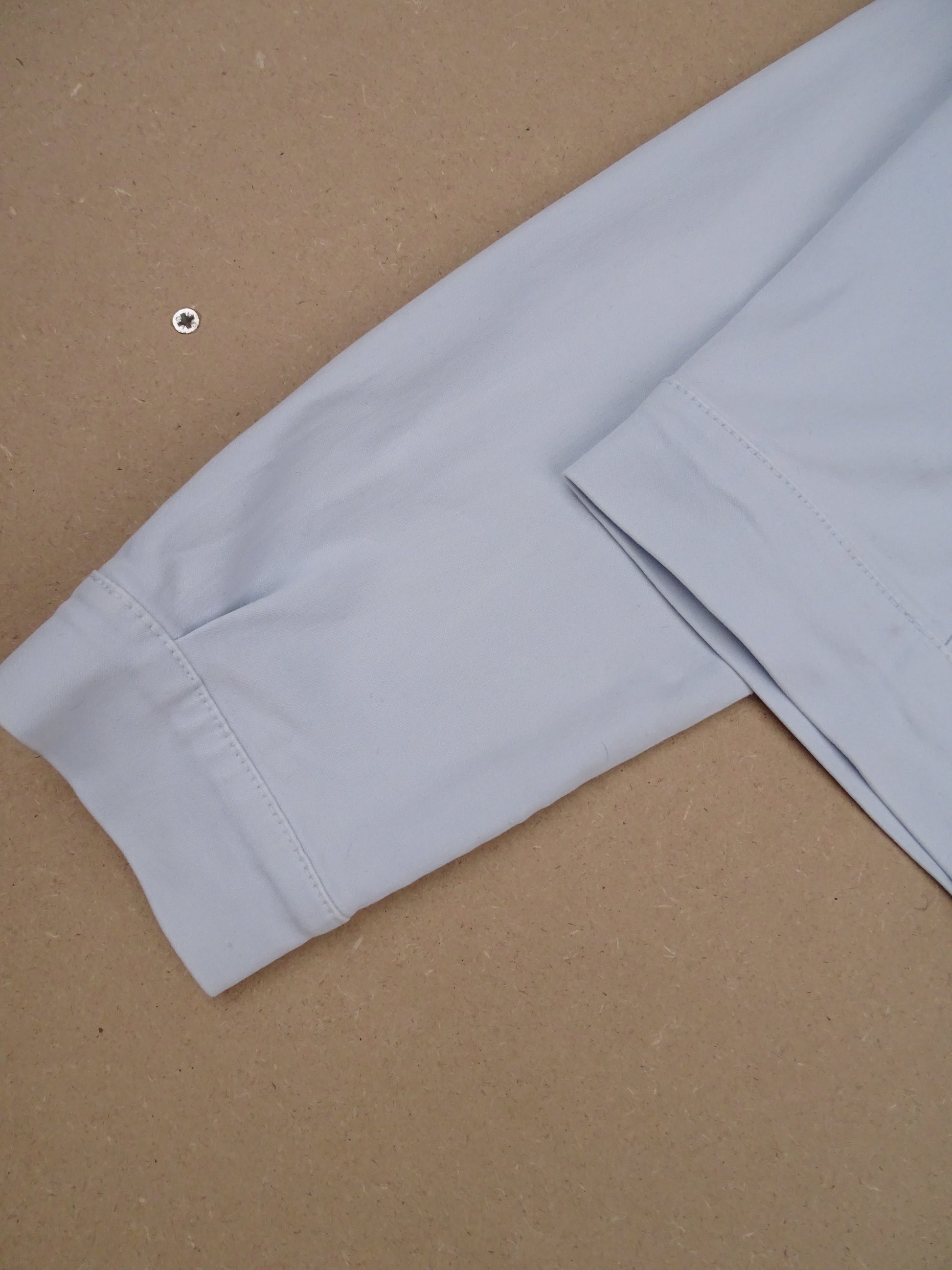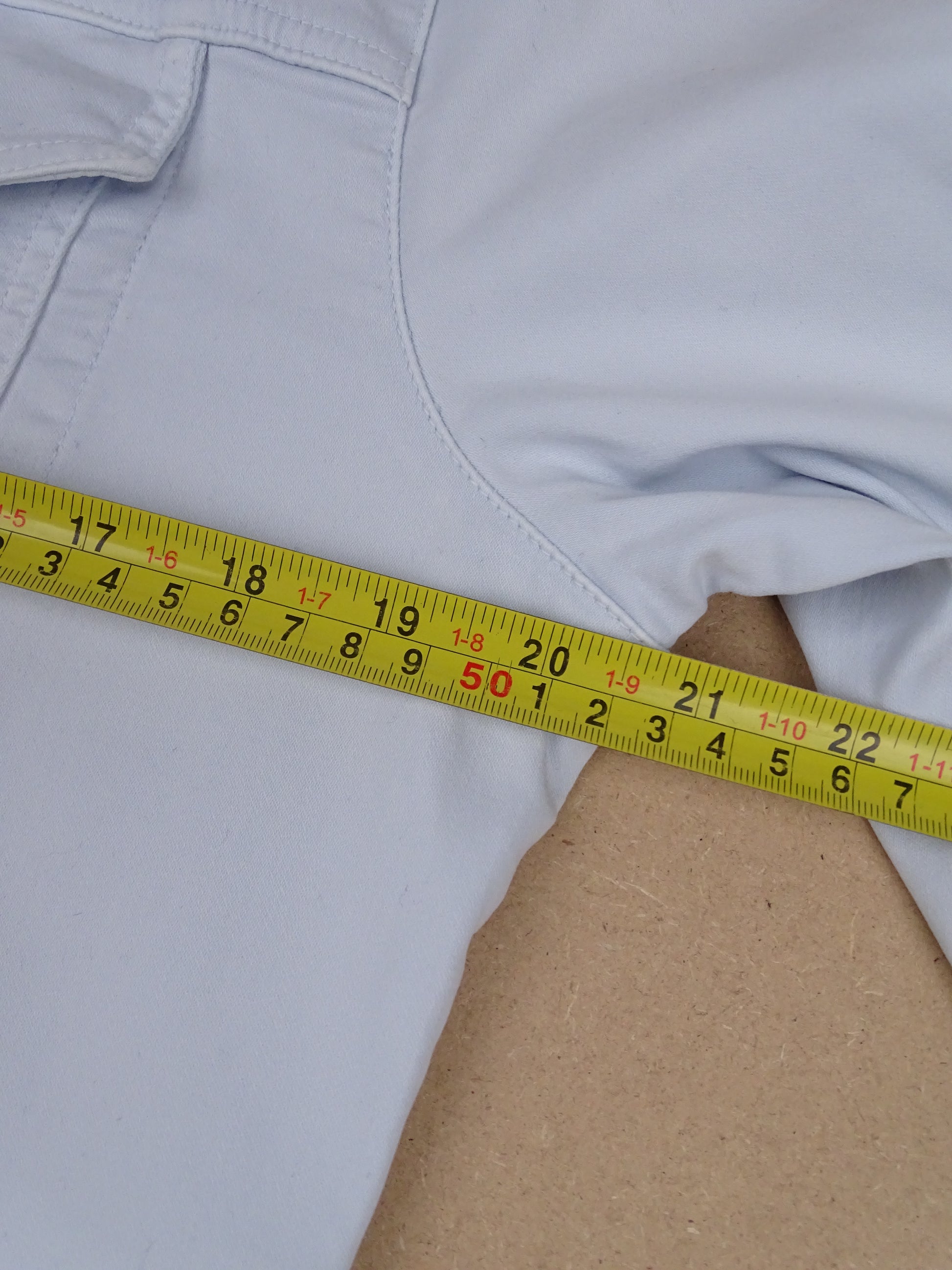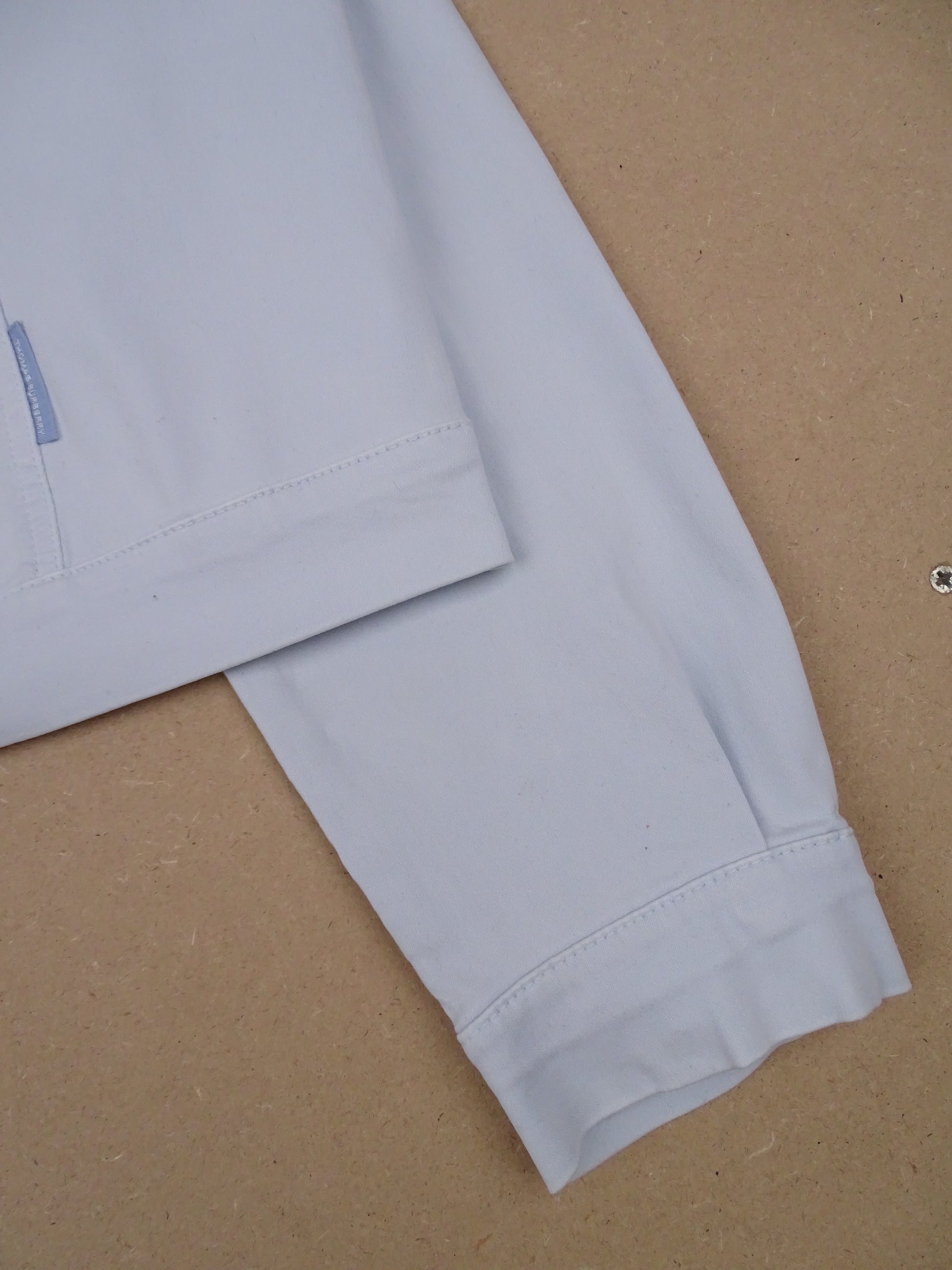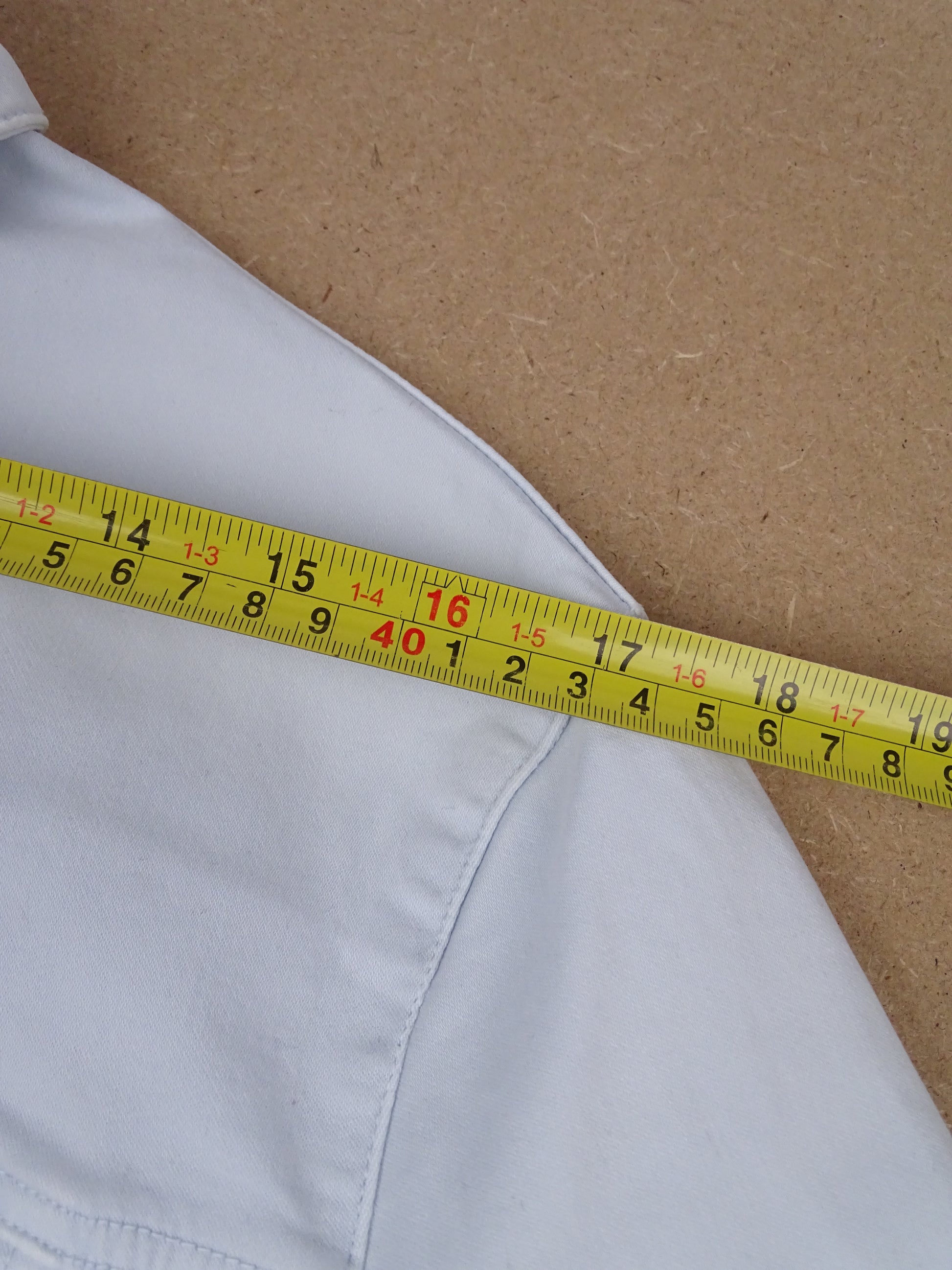 Veste Burberry en coton, taille M femme, de couleur bleu clair. Bon état général, quelques petites traces discrètes à l’arrière visibles sur les photos. Coupe chic et décontractée. Condition de l’article : Bon état, petites traces à l’arrière.