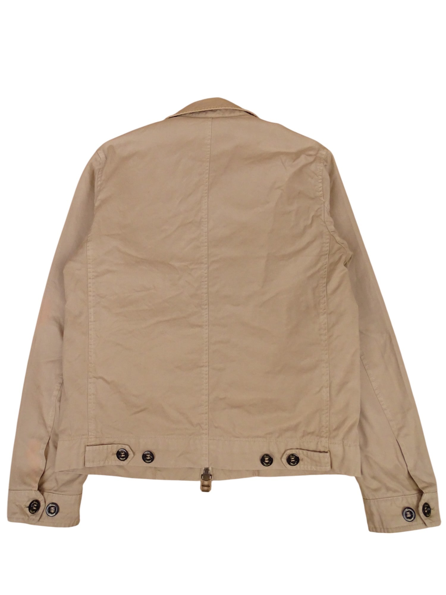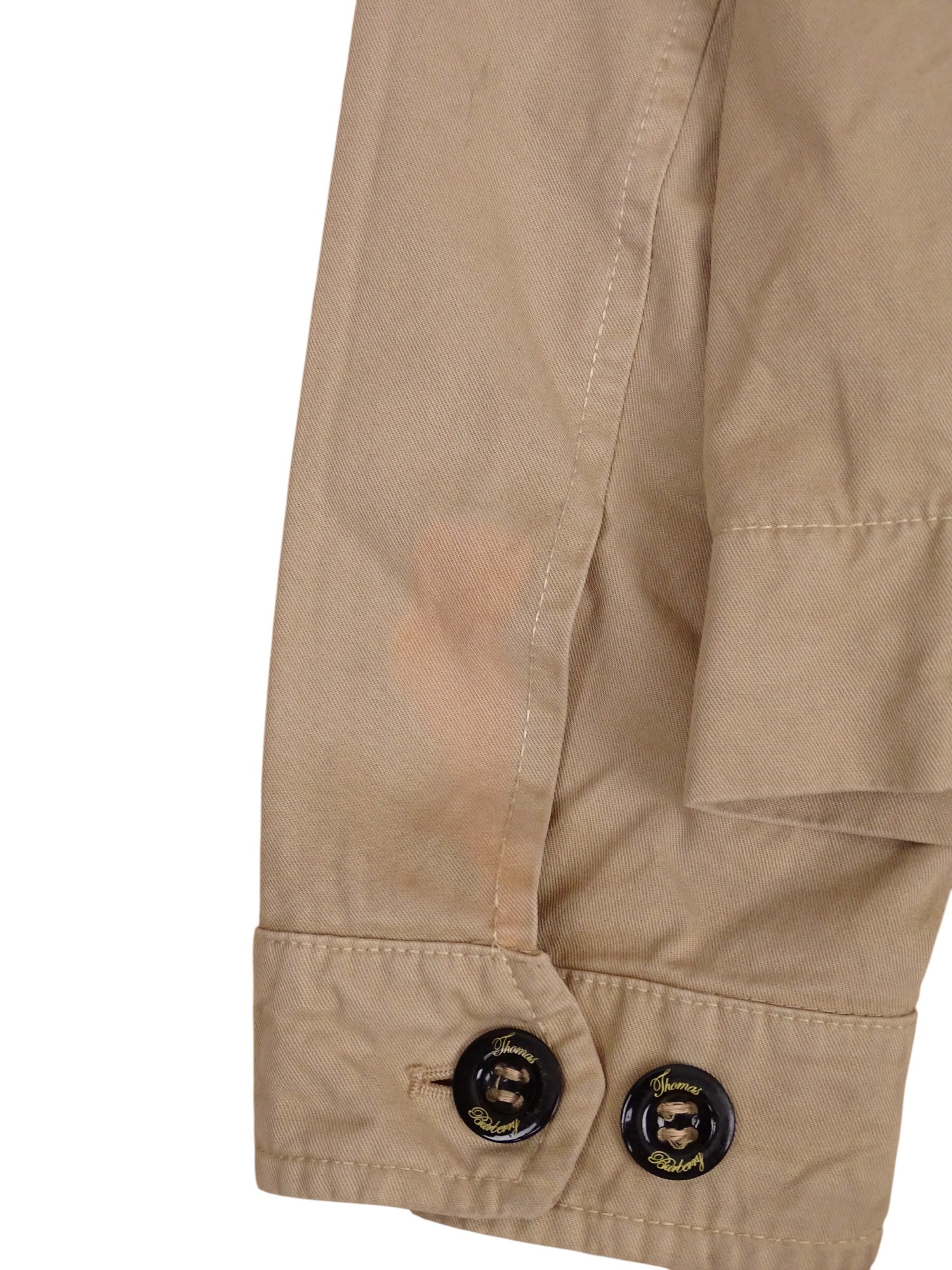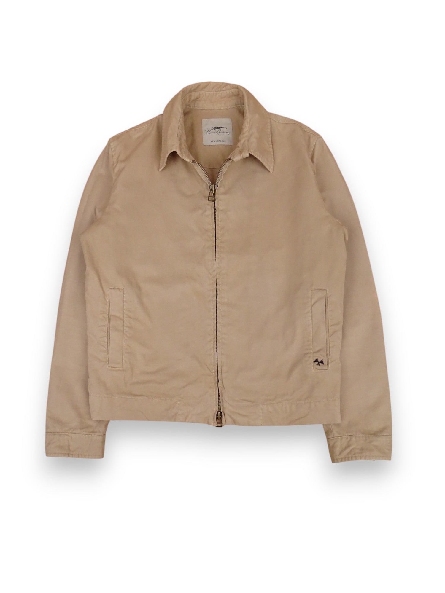 Veste Harrington emblématique de chez Burberry, en taille M Homme. Magnifique pièce au style intemporel. Elle présente cependant des traces de décoloration qui ajoutent un aspect vintage assumé.